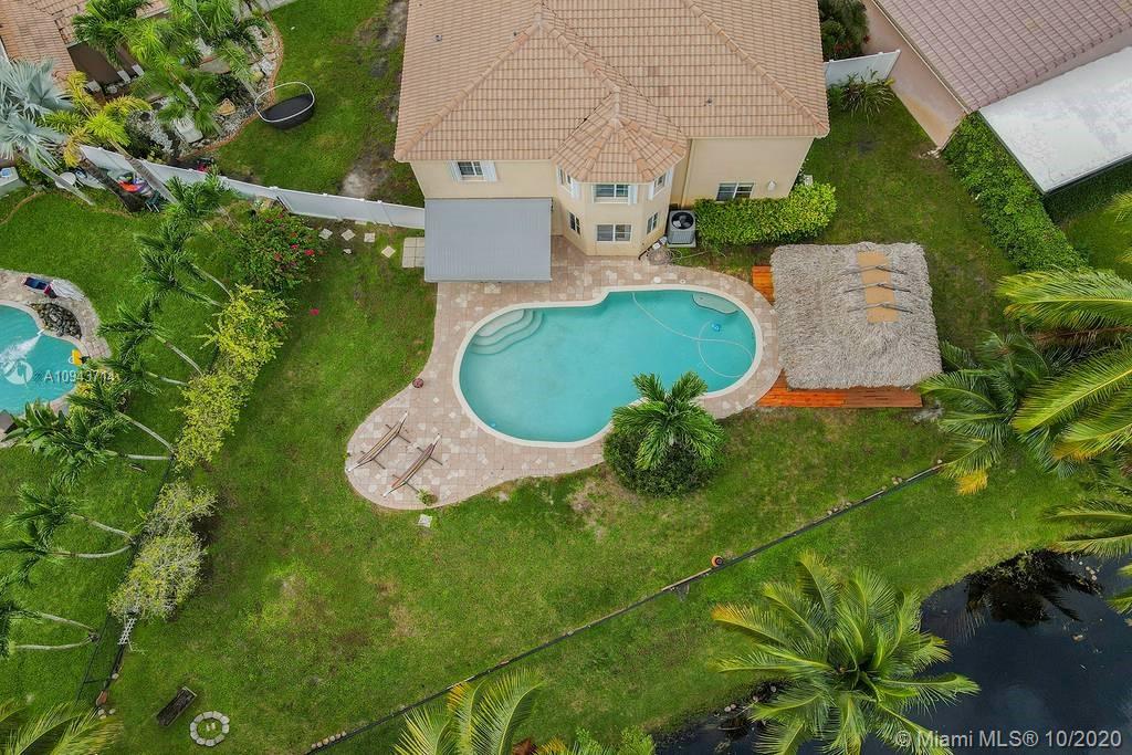 Magnificent 4 bedroom 2.5 bath **POOL HOME ON THE WATER** is situated on a pie lot (10,823 SF) in The Village of Harmony Lakes in Davie off of Hiatus Road! All 4 bedrooms and 2 bathrooms on second floor with laminate floors and first floor has tile with 1/2 bathroom! Eat in kitchen very open with natural light, A/C replaced in 2017, inside laundry room! Amazing backyard with a freeform pool, chickee hut with electric, fenced yard with a tropical oasis and beautiful views of water in your private backyard- perfect for outside living and entertaining! Located in a top school district, easy access to I-595! Guarded highly sought out community! Community offers pool, tennis courts, BBQ & pavilion, and racquet ball! Only available property!