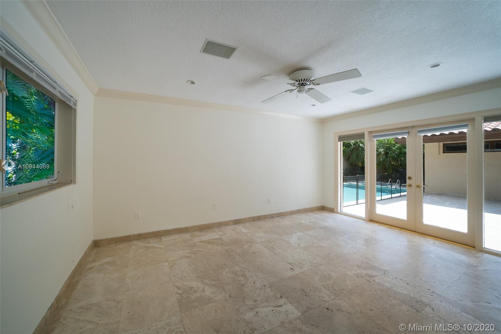 One story Mediterranean elegant home. Expansive reception areas with direct access to the beautiful courtyard, heated swimming pool, Jacuzzi, and gazebo. Residence offers a split plan with 4 bedroom & 4 baths. The master suite opens to the pool area. One of the bedrooms offers independent side access. Large bedrooms, family room with den and fireplace. Beautiful cream color marble floors. The master bedroom structure is 100% concrete. As per owner: "safe room" most of the areas are have network cable (CAT5) with wall outlets to connect computers to house web. Recessed lighting, surround sound with speakers in every room and garden.