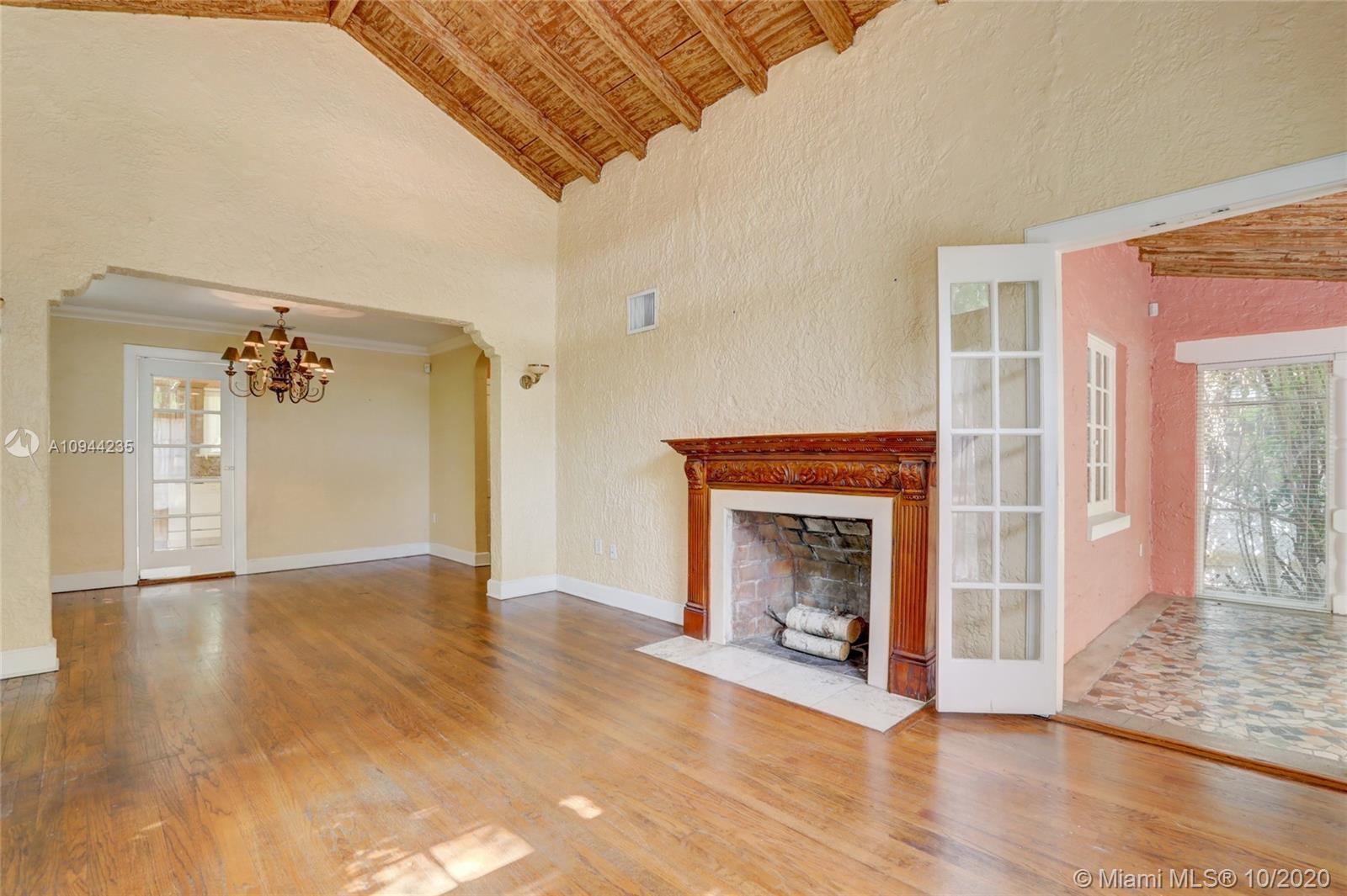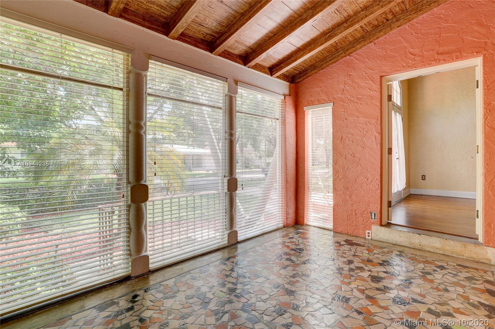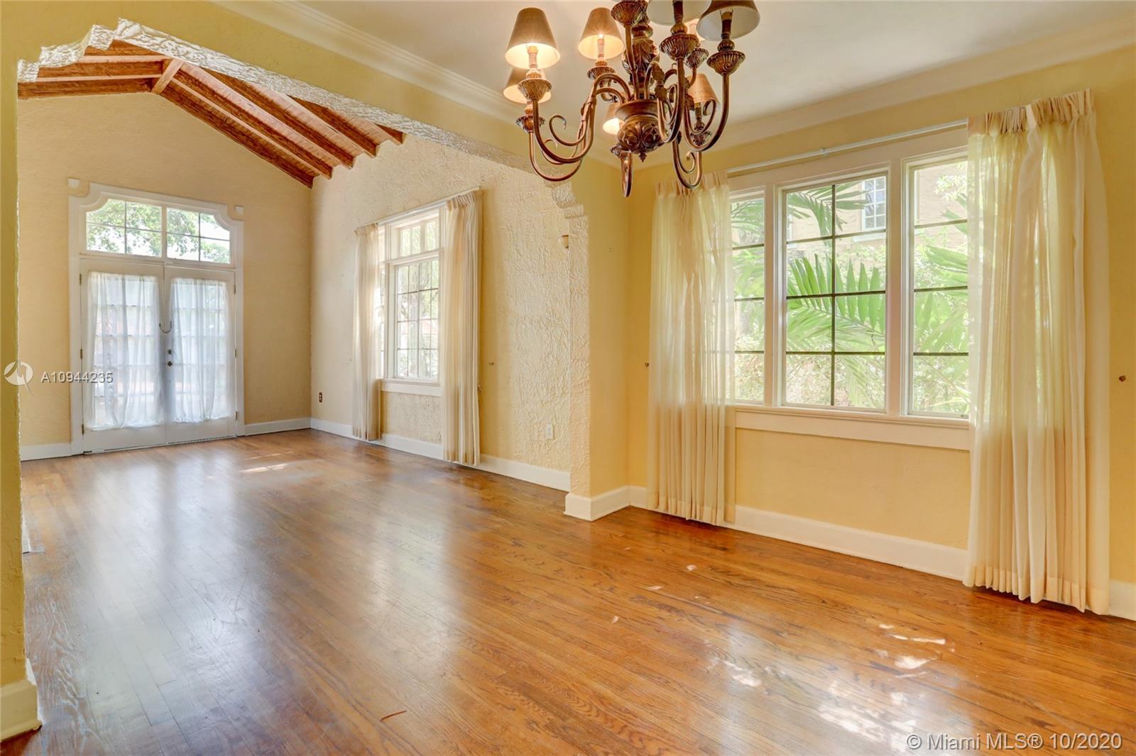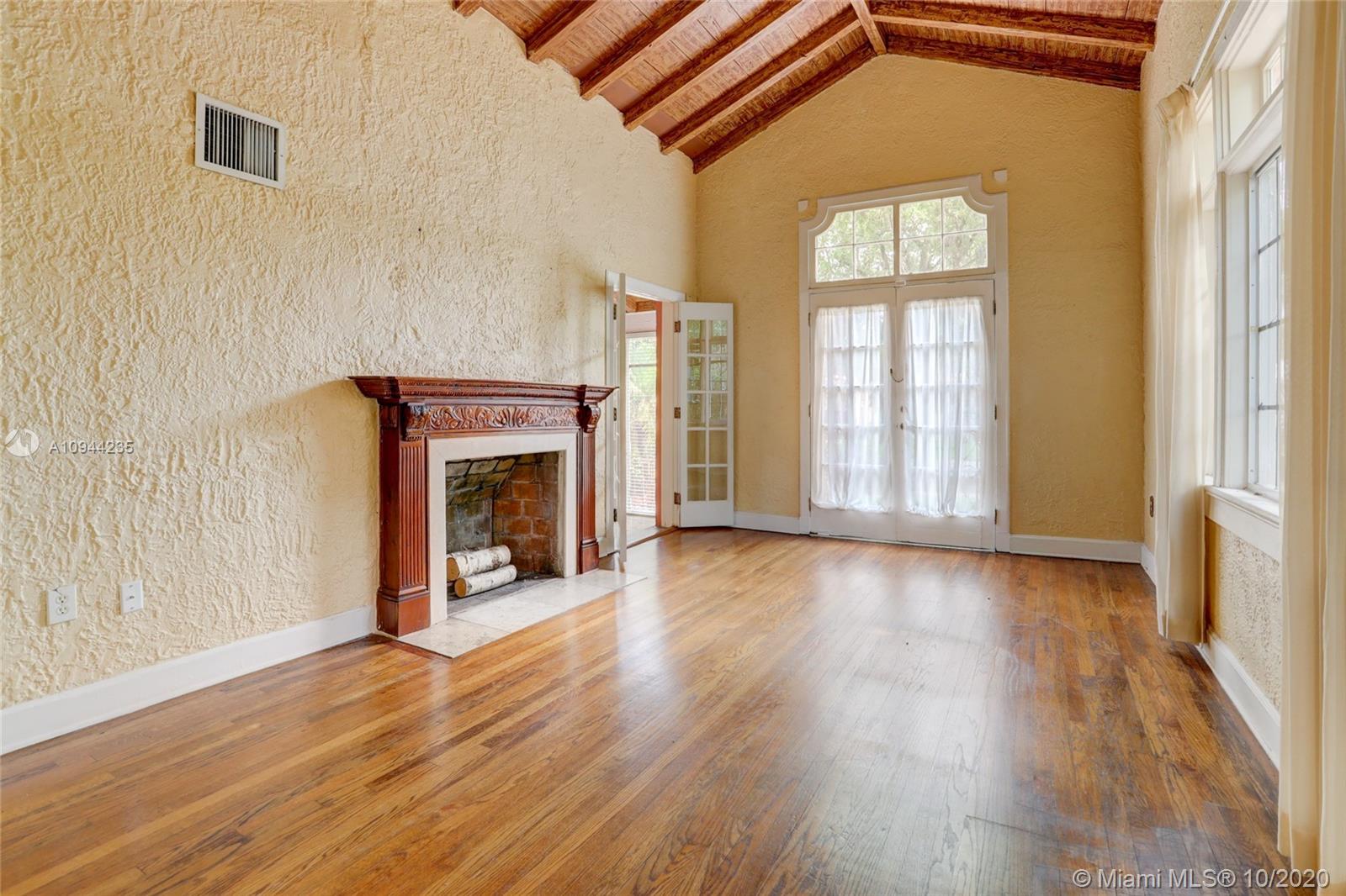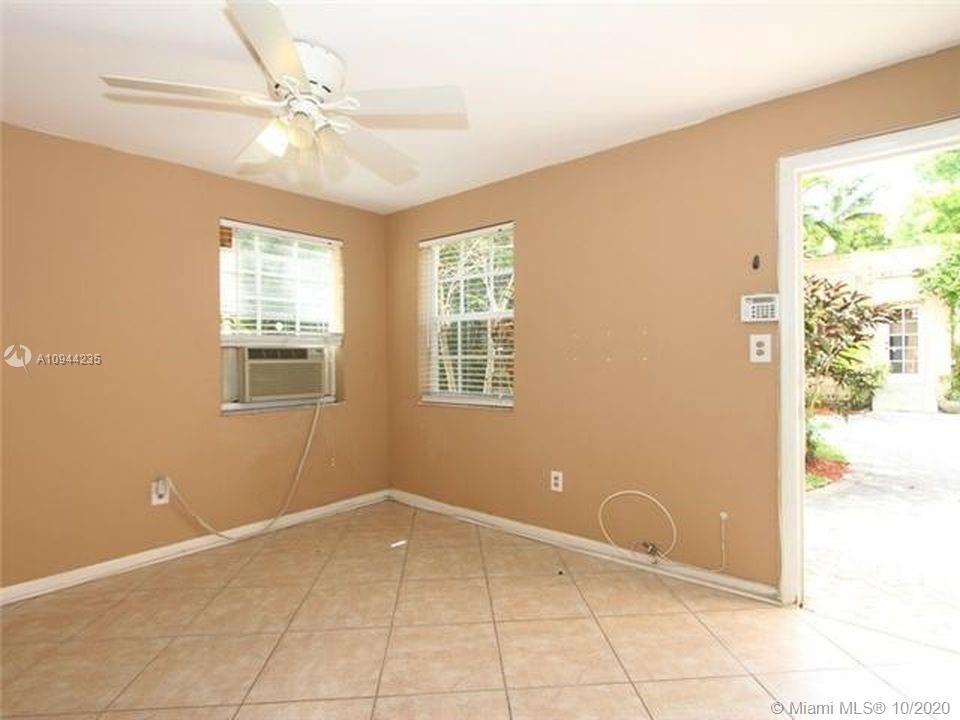 Charming Old Spanish home for sale on a beautiful and quiet street in North Gables! 2 bedrooms/1 bath in the main house, living/dining area with amazing vaulted ceilings, enclosed bright sunlight porch, fireplace, original wood floors throughout. Kitchen has been upgraded with granite countertops and newer appliances. Too many other original details to be mentioned. Detached cottage with 1 bedroom and 1 bath, sitting area and kitchenette with sink and small refrigerator. perfect for in-laws or grown children. Roof is approx. one year old, washer and dryer are new also. Nice yard all around with lots of potential. Property is currently rented at $ 2,800 a month with excellent tenants-great for investors.