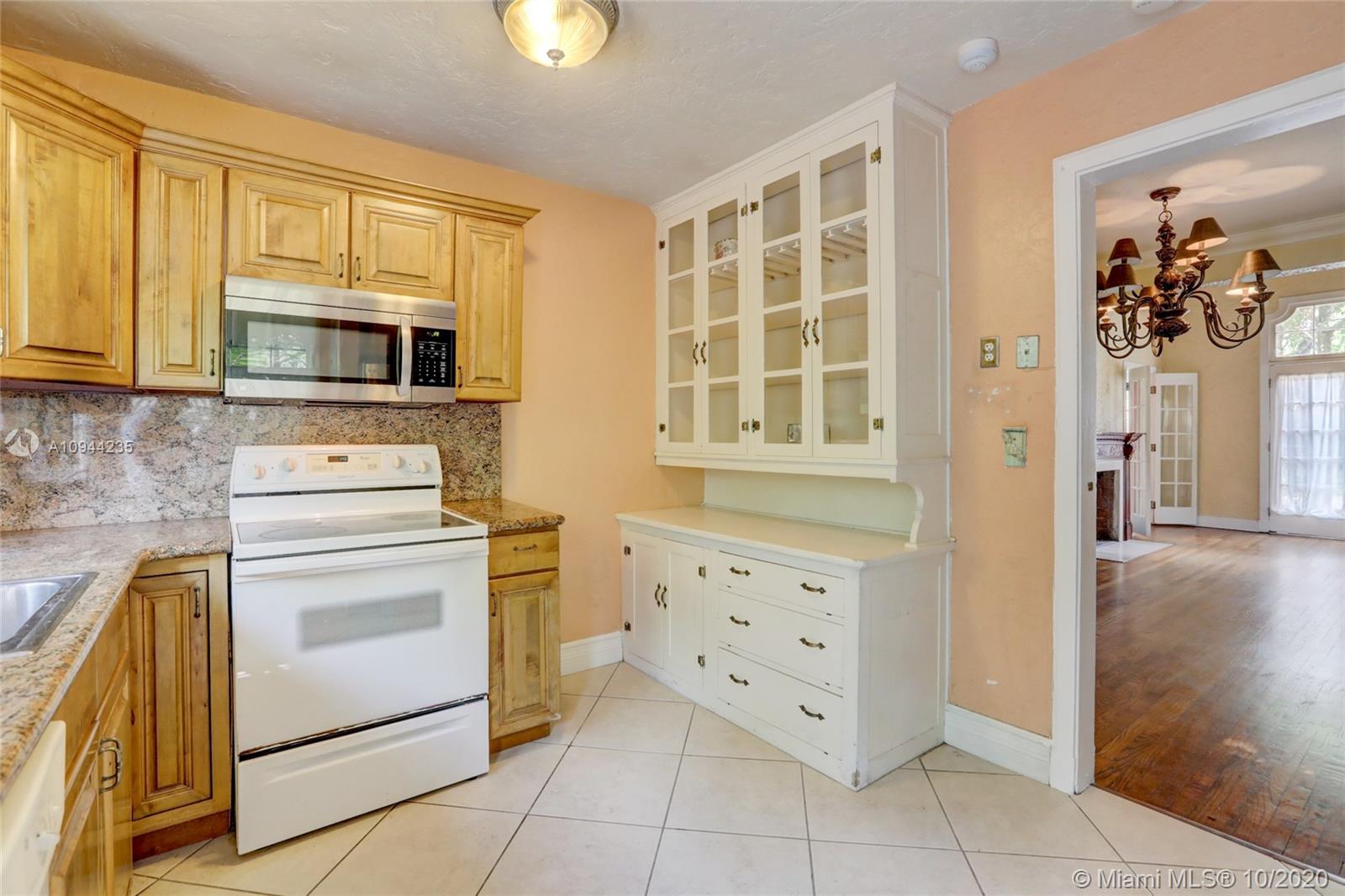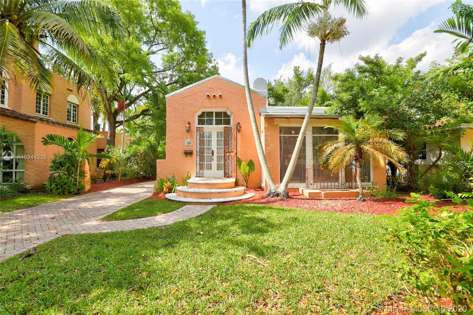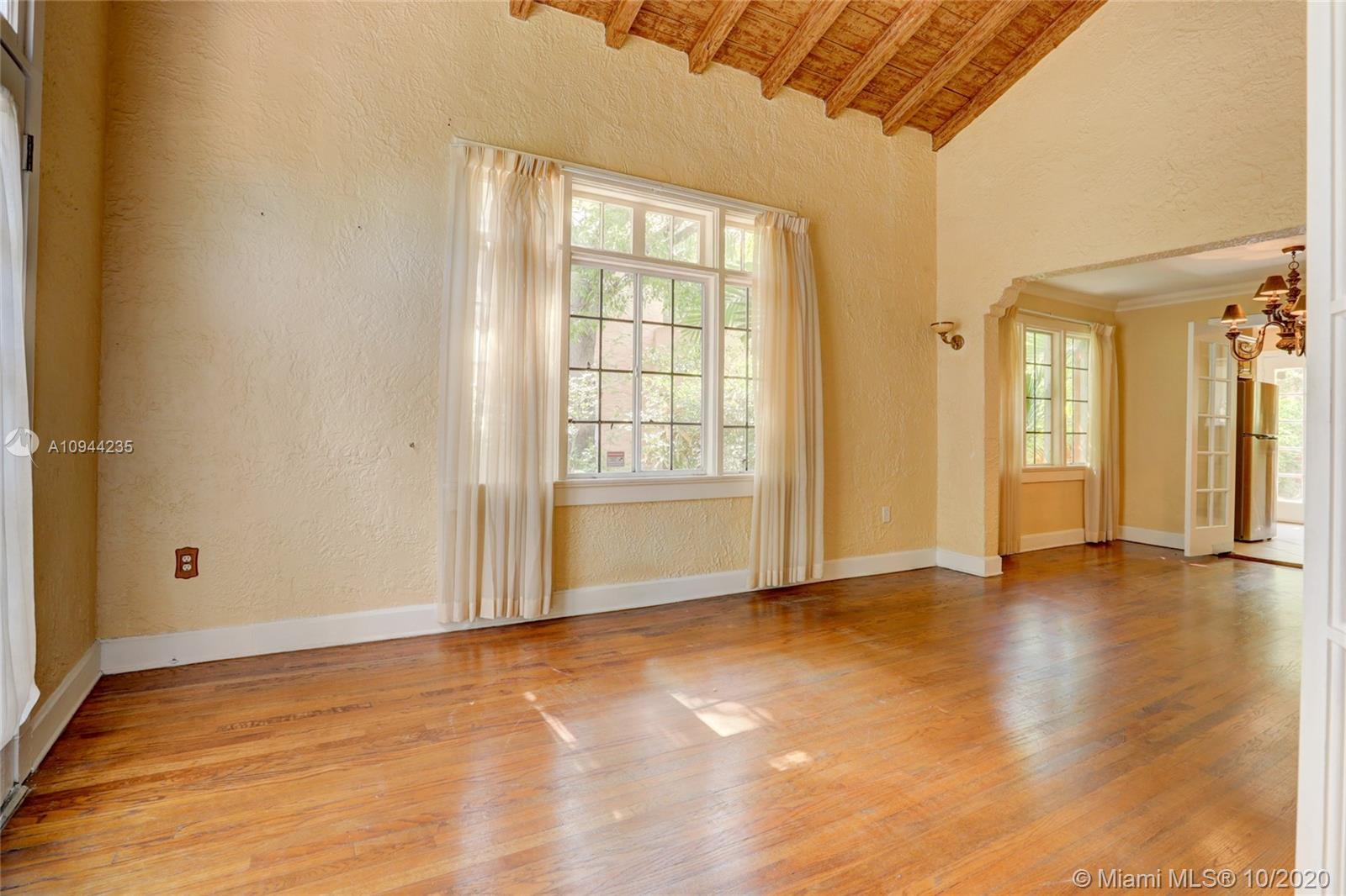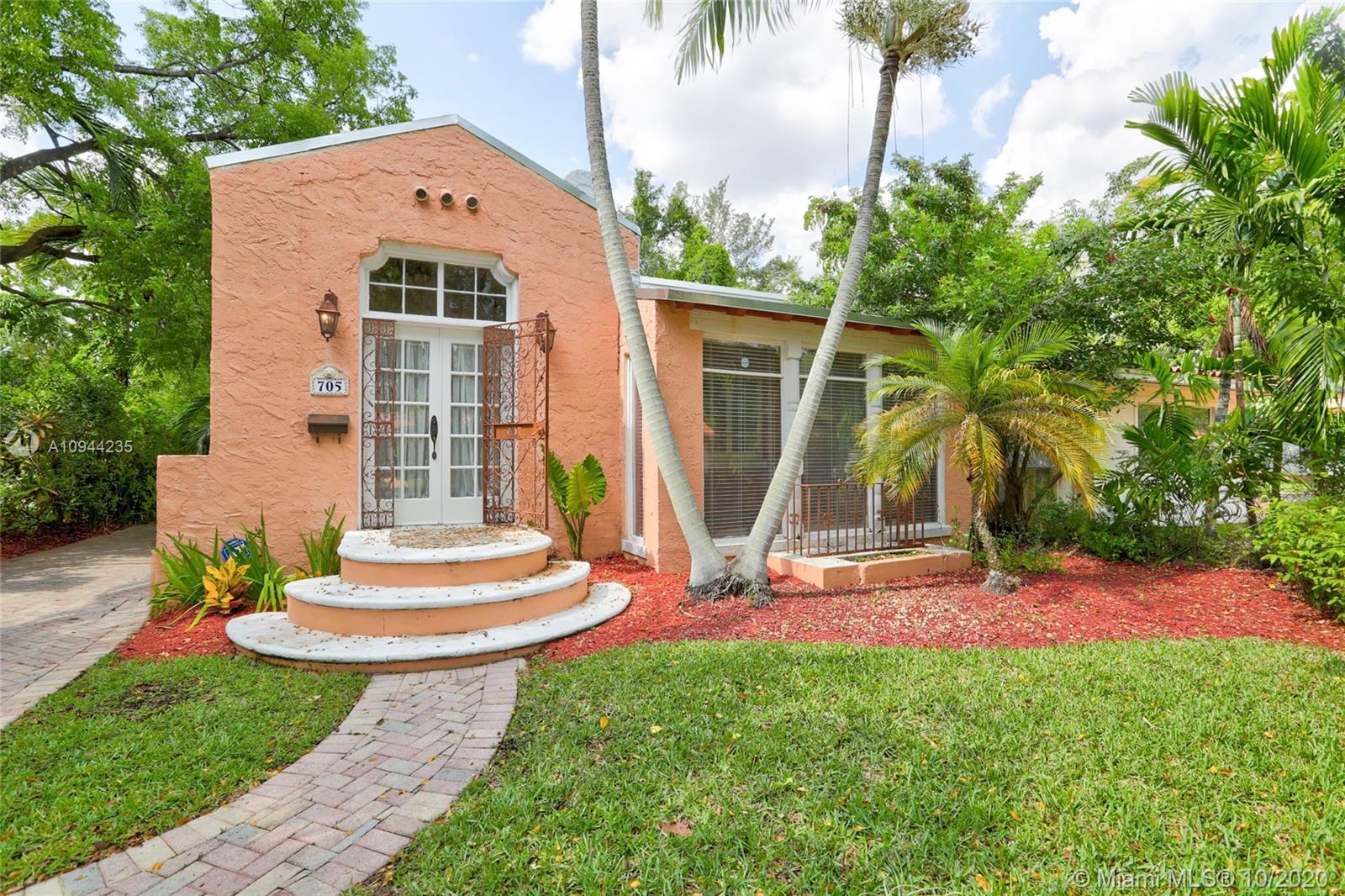 Charming Old Spanish home for sale on a beautiful and quiet street in North Gables! 2 bedrooms/1 bath in the main house, living/dining area with amazing vaulted ceilings, enclosed bright sunlight porch, fireplace, original wood floors throughout. Kitchen has been upgraded with granite countertops and newer appliances. Too many other original details to be mentioned. Detached cottage with 1 bedroom and 1 bath, sitting area and kitchenette with sink and small refrigerator. perfect for in-laws or grown children. Roof is approx. one year old, washer and dryer are new also. Nice yard all around with lots of potential. Property is currently rented at $ 2,800 a month with excellent tenants-great for investors.
