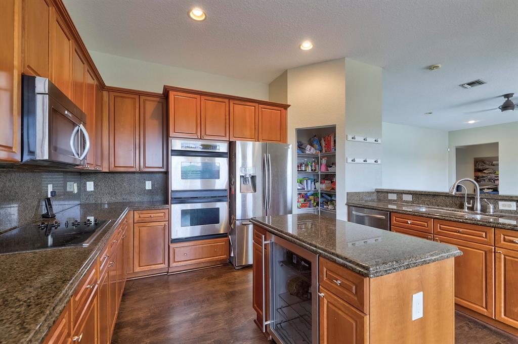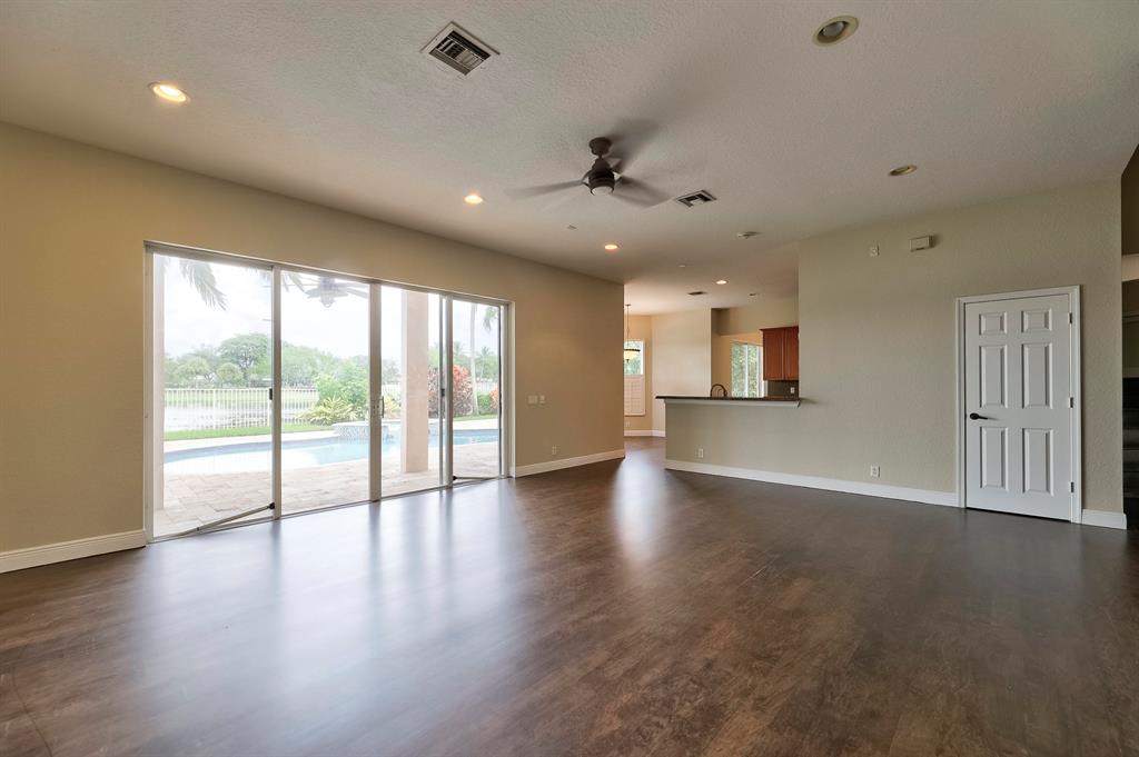 Magnificent and impeccably kept 5BR 4BA home, nestled on a quiet cul-de-sac lot with endless sweeping lake views. Real custom wood adorns the recently refinished and re stained floors. The home boasts high ceilings and oversized windows that allow the natural sunlight to flood the interior. The gourmet chef's kitchen has top of the line stainless appliances, stainless double sink, custom island complete with wine fridge and wine rack plus a granite topped breakfast bar. The spacious master suite has beautiful lake views, a large trey ceiling, 2 walk in closets and a large bath with dual sinks. Enjoy your completely private backyard with a free form pool and spa and custom travertine pavers with endless water views. Plantation shutters adorn many of the windows. There are accordion shutters