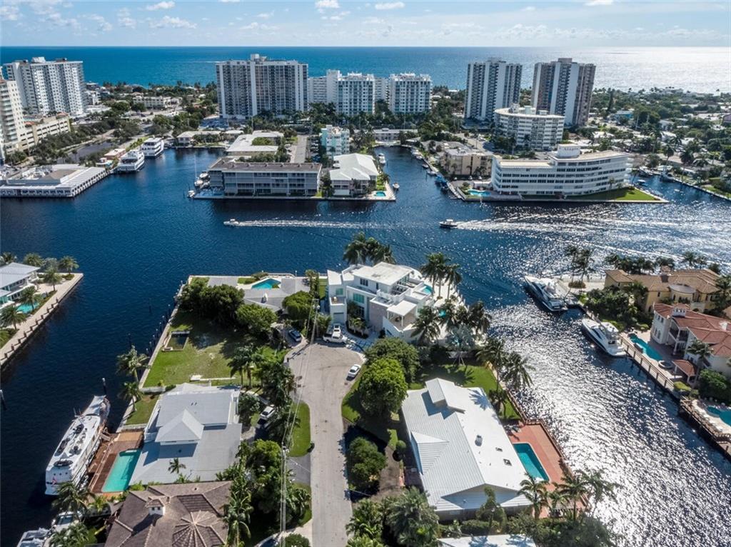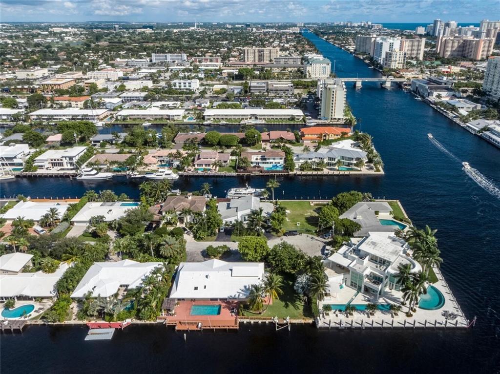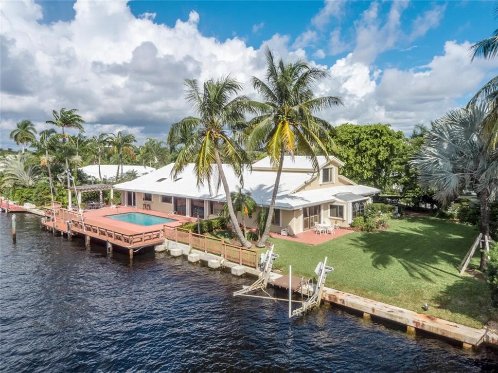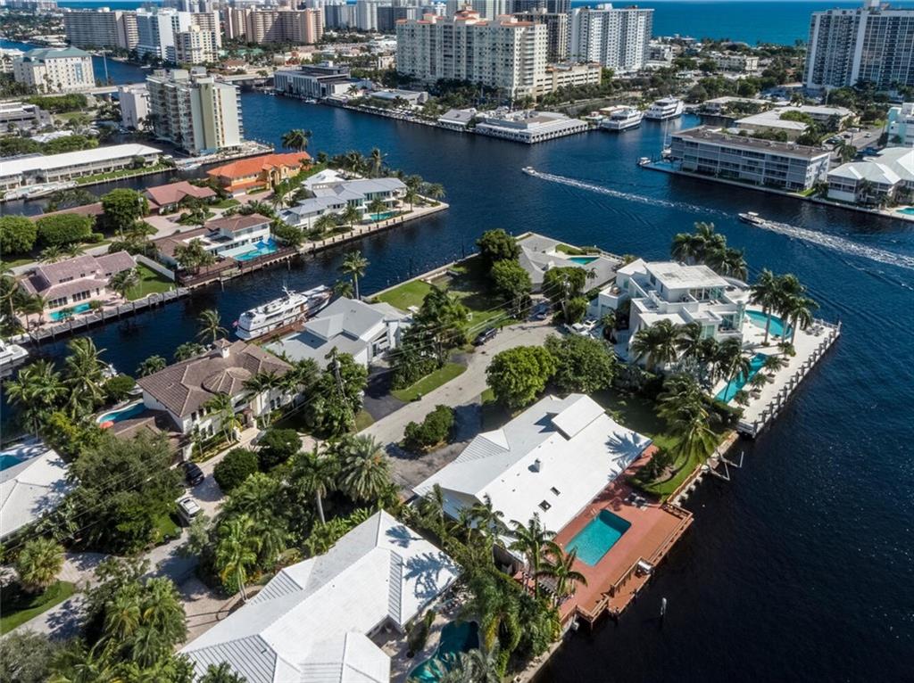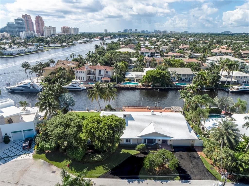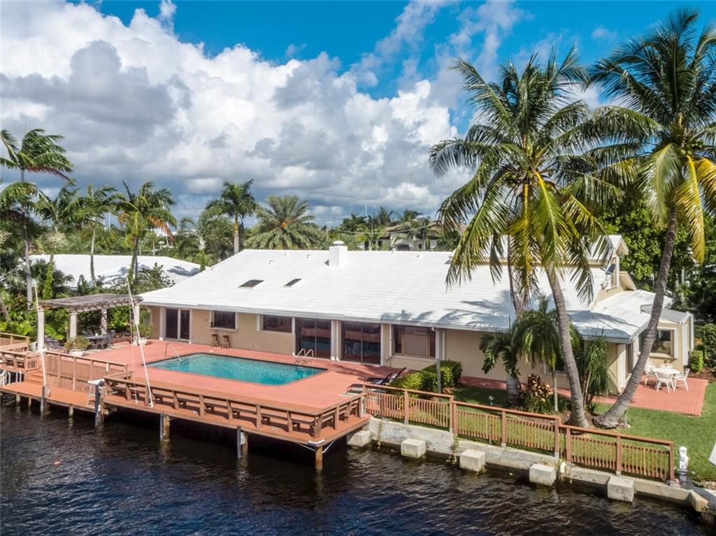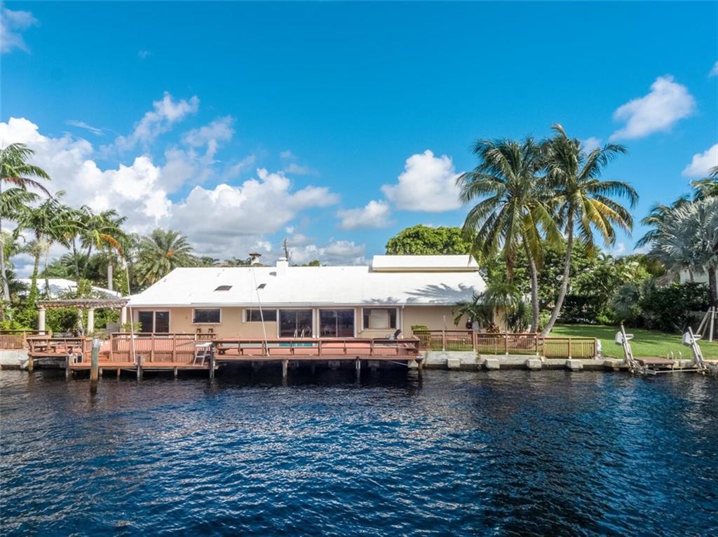 Rare opportunity to own 153 ft on the water in prestigious Coral Ridge, 1 lot off the south point-no fixed bridges and ocean access! Can accommodate up to a 132-ft yacht. Intracoastal views w/southern exposure-no wake zone, wide canal (110 ft). Sprawling residence on 15,098 sq ft lot w/pergola, park-like setting, cul-de-sac. Rebuilt in '84 drawing attention to water views-4/4 w/upstairs office/loft. Palatial master bedroom suite w/walk-in closet, greenhouse windows in bathroom. Open floorplan w/volume ceilings/skylights. Triple split bedroom plan w/multiple living & dining areas. Wood burning fireplace, eat in kitchen, wet bar. Lot has not been offered for sale in over 40 yrs. Award-winning Bayview Elem, Sunrise Middle (magnet), Ft. Laud HS (magnet) schools. Measurements from owners plans.