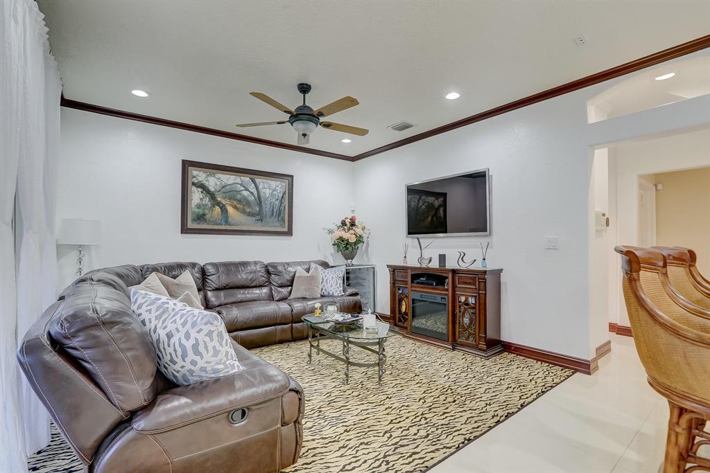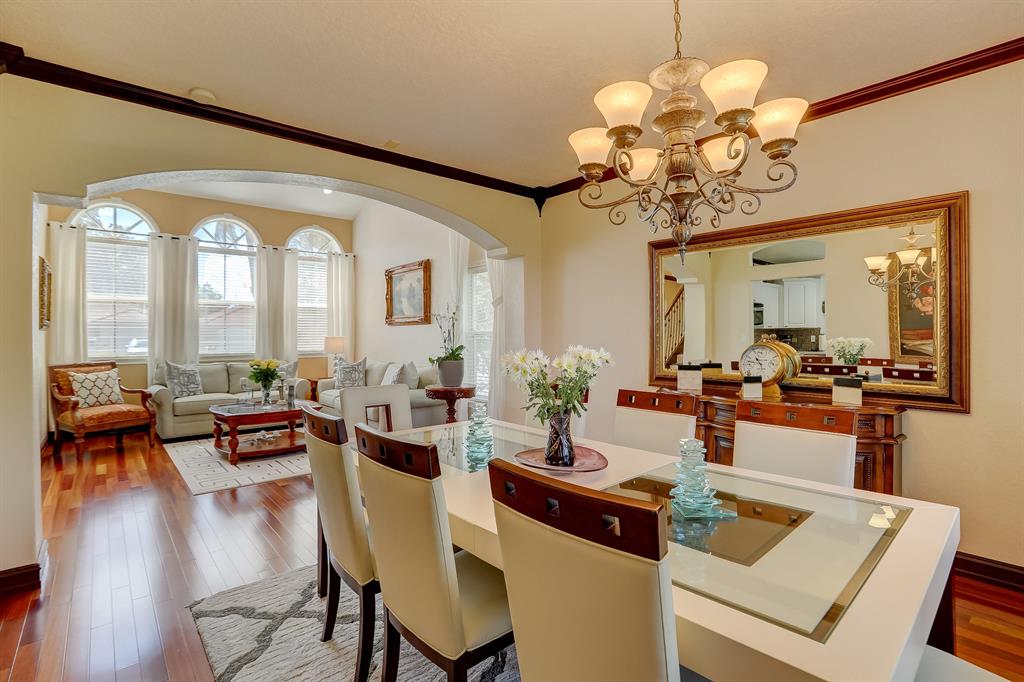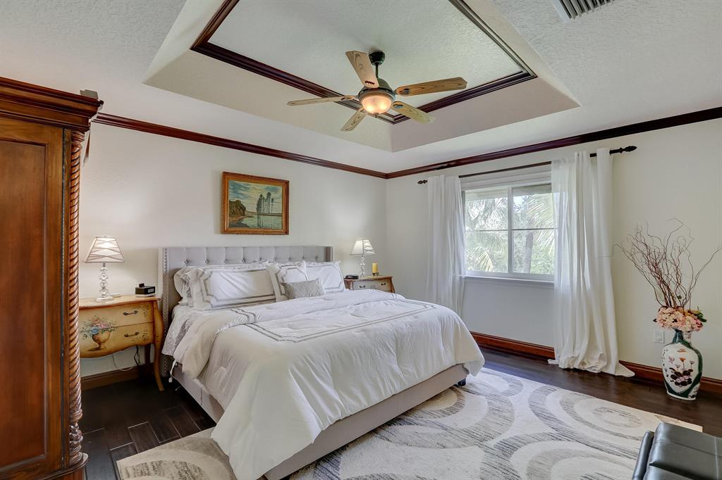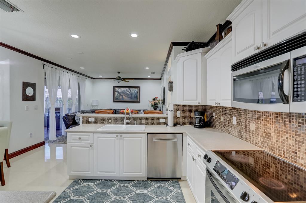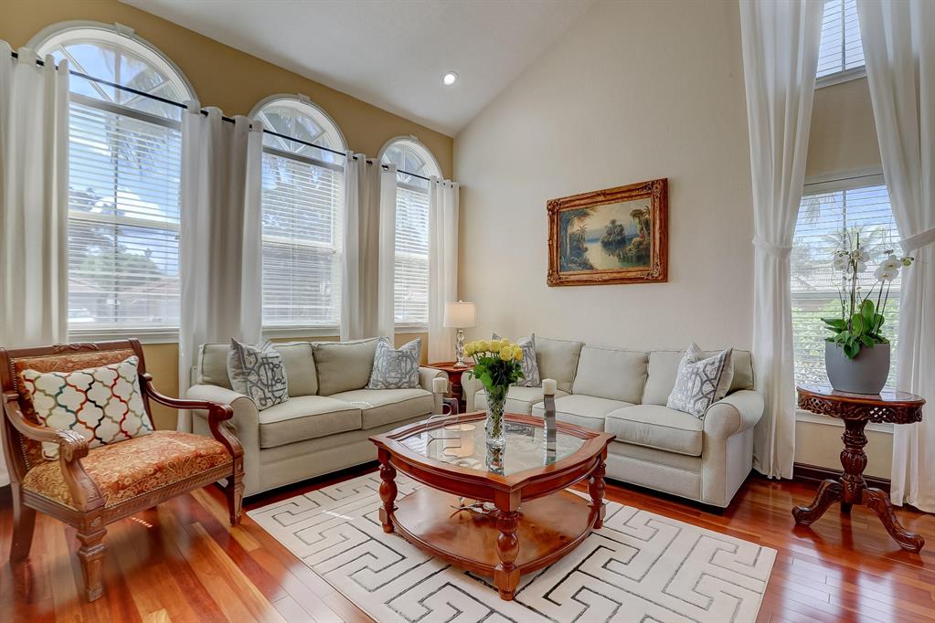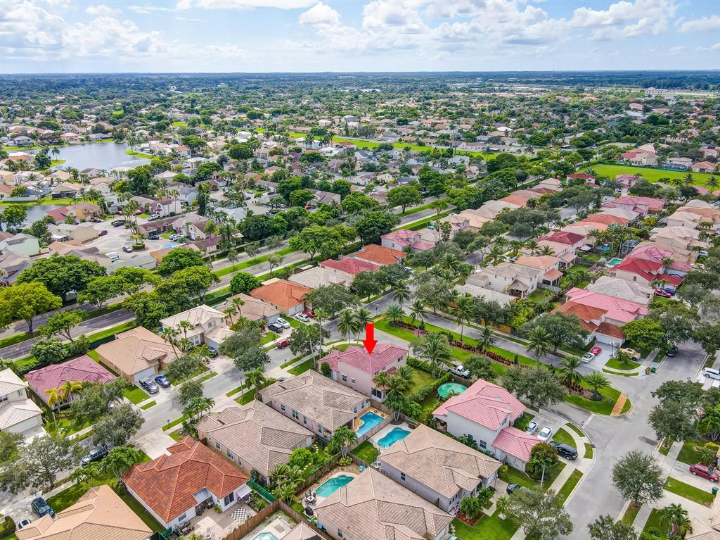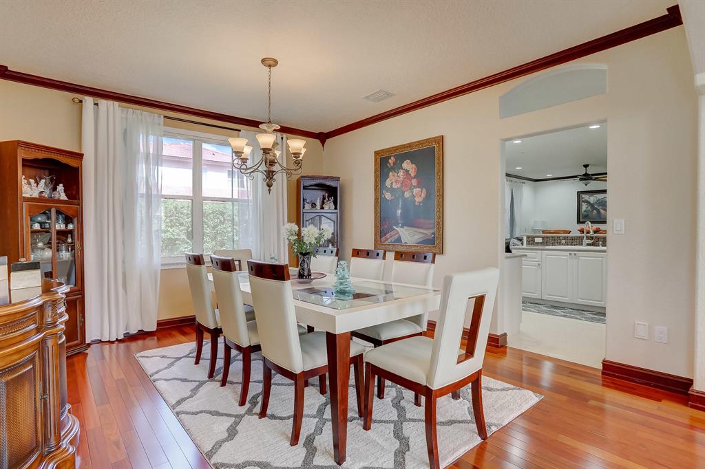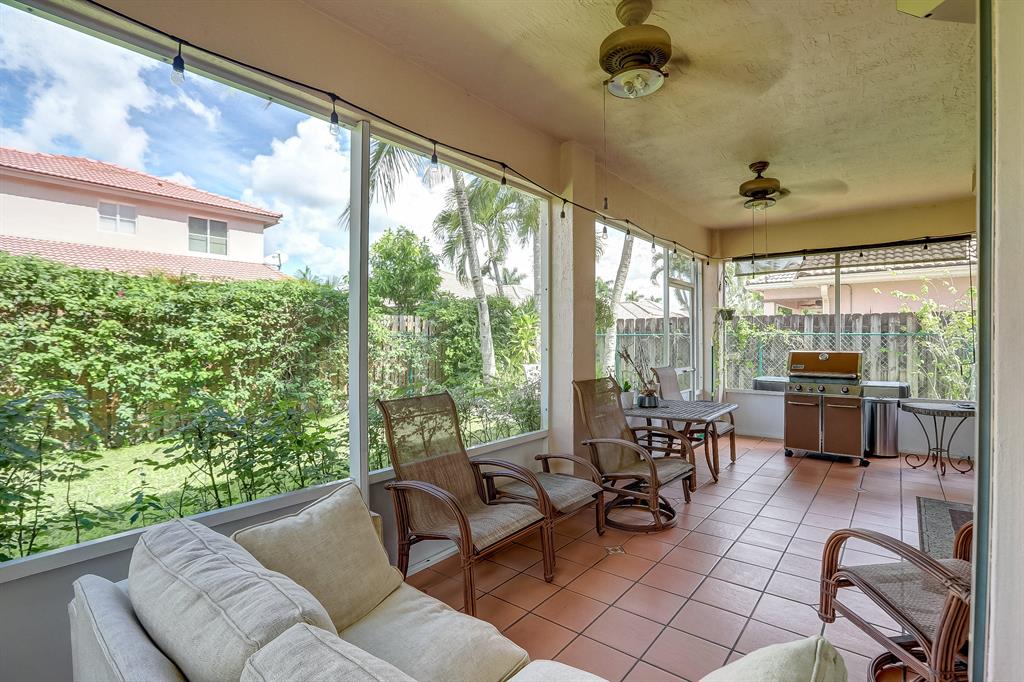 Enjoy exceptionally stylish & luxurious living in this stunning home located in the gated Poinciana Parc community. Here you'll find stunning design details including volume & tray ceilings, custom crown molding throughout, as well as upgrades including electric shutters, a UV air purifier, whole-house intercom system, newer (<1 year) AC & newer (2018) hot water heater. Gorgeous eat-in kitchen features Corian countertops, stainless steel appliances, custom cabinetry & a seated bar. Owner's suite features en suite bath with double-sink & seated vanities, water closet & separate tub & shower. Relax in the screened terrace or outdoor patio, offering a perfect setting for outdoor seating, grilling, dining & entertaining. Fenced greenspace is an ideal spot for playtime with children & pets.