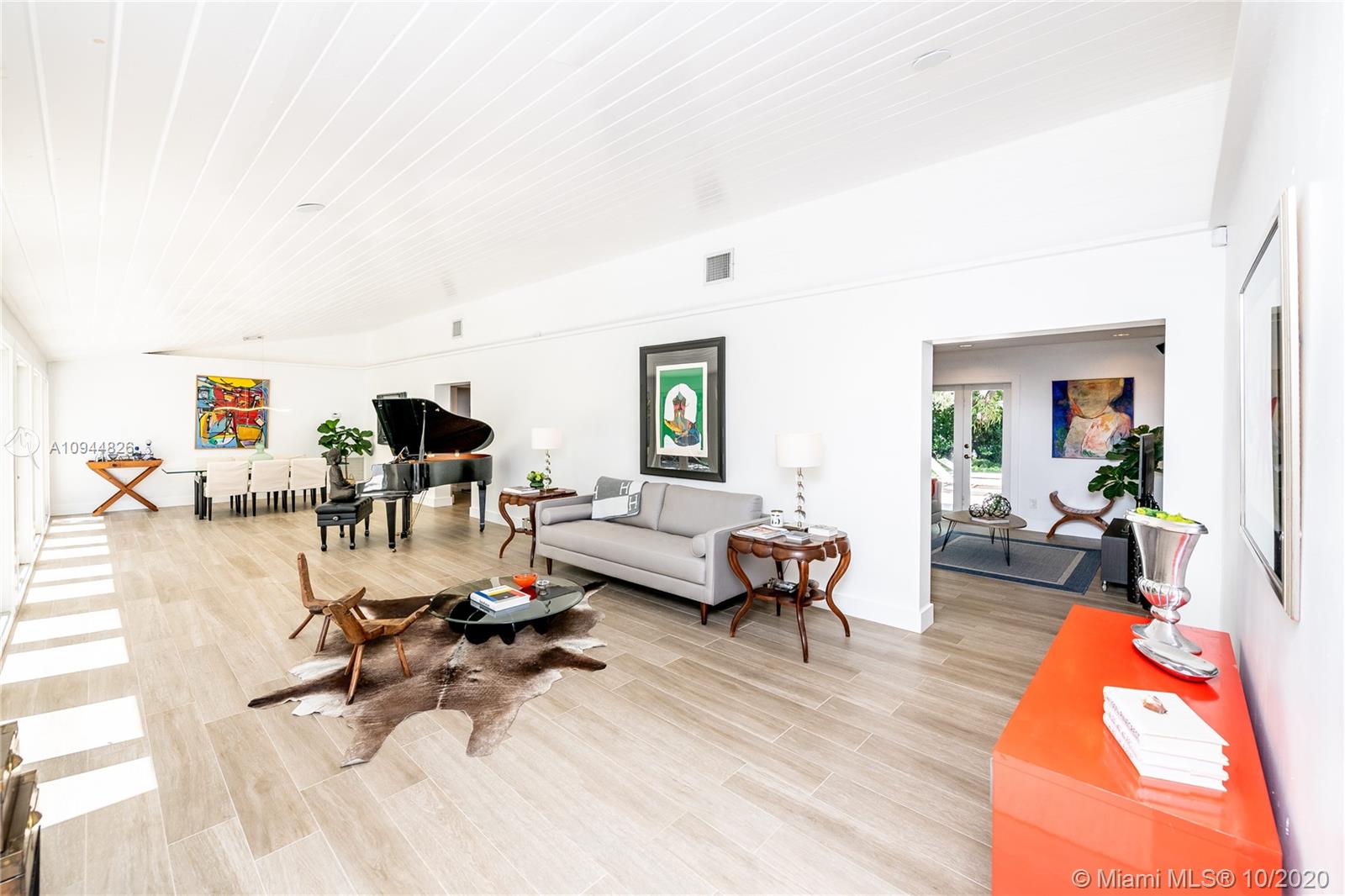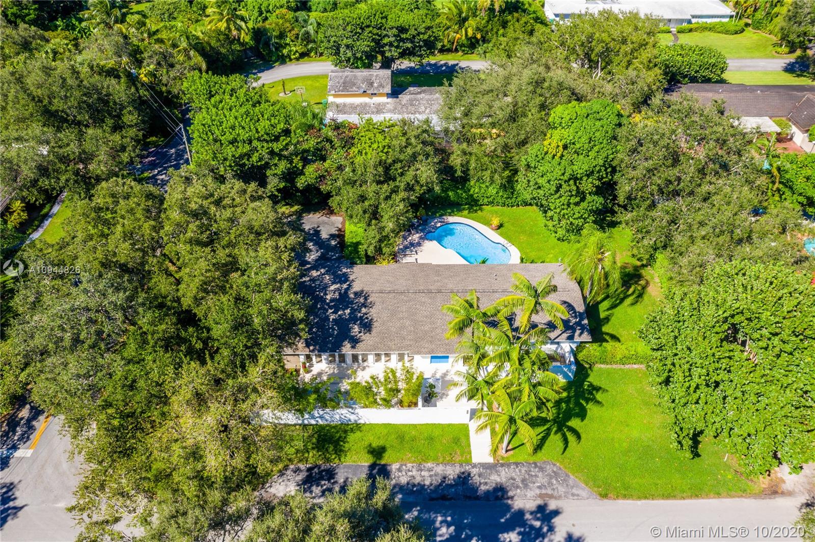 On a corner lot in a prime neighborhood, this residence offers a coveted NE Pinecrest setting. Nearby highlights incl. acclaimed Pinecrest Elementary (2 blks), Coral Oaks Tennis & Wellness Ctr (5 blks), Pinecrest Gardens & Dante Fascell Park, plus the beloved landmark Wayside Produce Market & Juice Bar. Superior privacy behind a high wall around a large front Zen patio + tall dense landscaping around the sides & back is a much-appreciated bonus. Another standout feature is the sunny living & dining great room with a tongue-and-groove ceiling + a wide bank of French doors overlooking the Zen patio. The flow-thru family room & kitchen open to the pool & fenced yard. The layout places 4BD/2BA on the East side + 1BD/1BA on the West side. Brand New Roof. 5BD / 3BA / 2,359 SF Adj / 16,466 SF Lot
