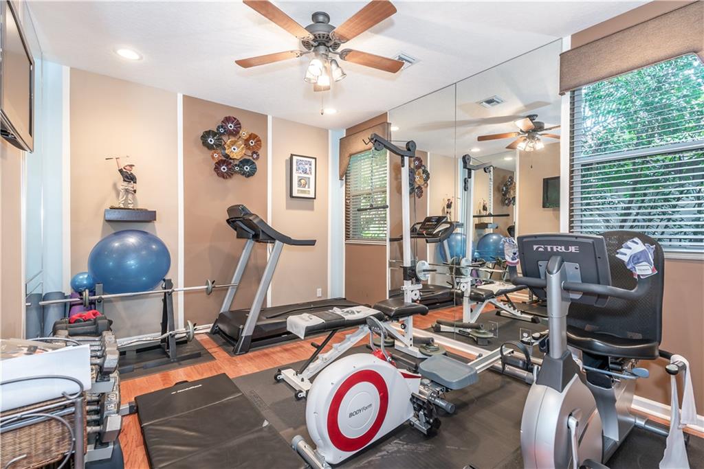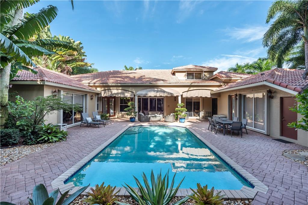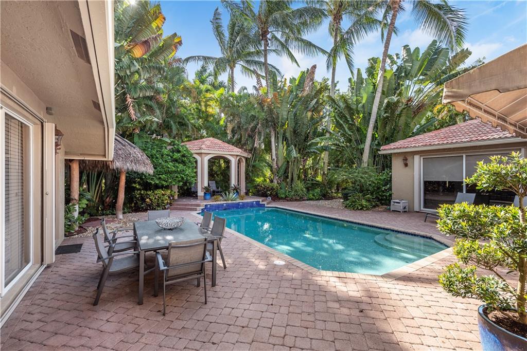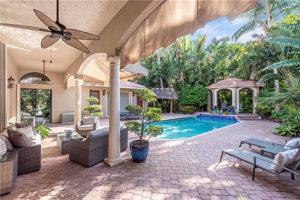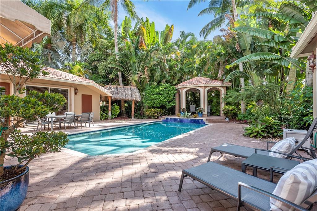 5/4 plus office exudes modern & classy around every corner that's ready to entertain family & friends with a wow factor. Enter decorative wrought iron gates to endless pool deck space with a tiki hut, raised gazebo, & lush landscaping paints the ultimate paradise. Cabana house off the pool adds to the impressive setting with a office & bathroom separate from house. Enter main home with Master bedroom & large sitting area on first floor. Living & Dinning room are grand and give off a relaxing setting of nature with floor to ceiling glass. Kitchen with island & loads of cabinets/counter top space overlook family room for that open setting. Family room is full of light and the perfect entertaining spot for family gatherings. 2 additional rooms downstairs & two upstairs. This home has it all.