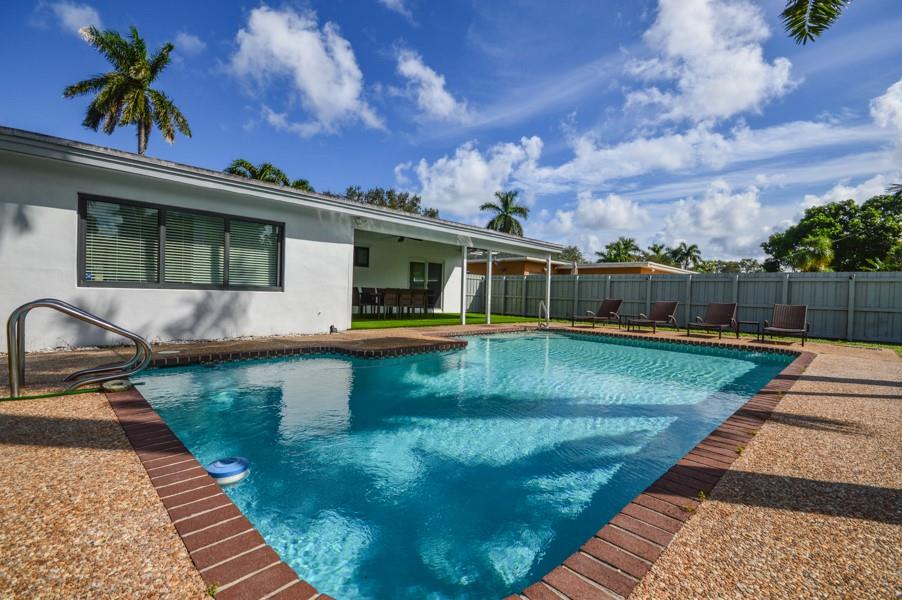 Contemporary modern feel awaits you at this wonderful 4 bedroom home.Perfectly suited for both relaxation and entertaining with its clean lines and light and airy spaces. Lots of windows and doors - all hurricane impact make for a seamless indoor/outdoor living. You have an inviting patio and pool area in the backyard which also features an extra large shed. Bedrooms are all great size with the 4th bedroom possibly serving as an in law quarter as it has it's own private entrance. Bathrooms have also been remodeled. Home is hurricane prepared with additional straps added to the roof. This immaculate home is just lovely and move in ready,located within minutes to all that south Florida has to offer.