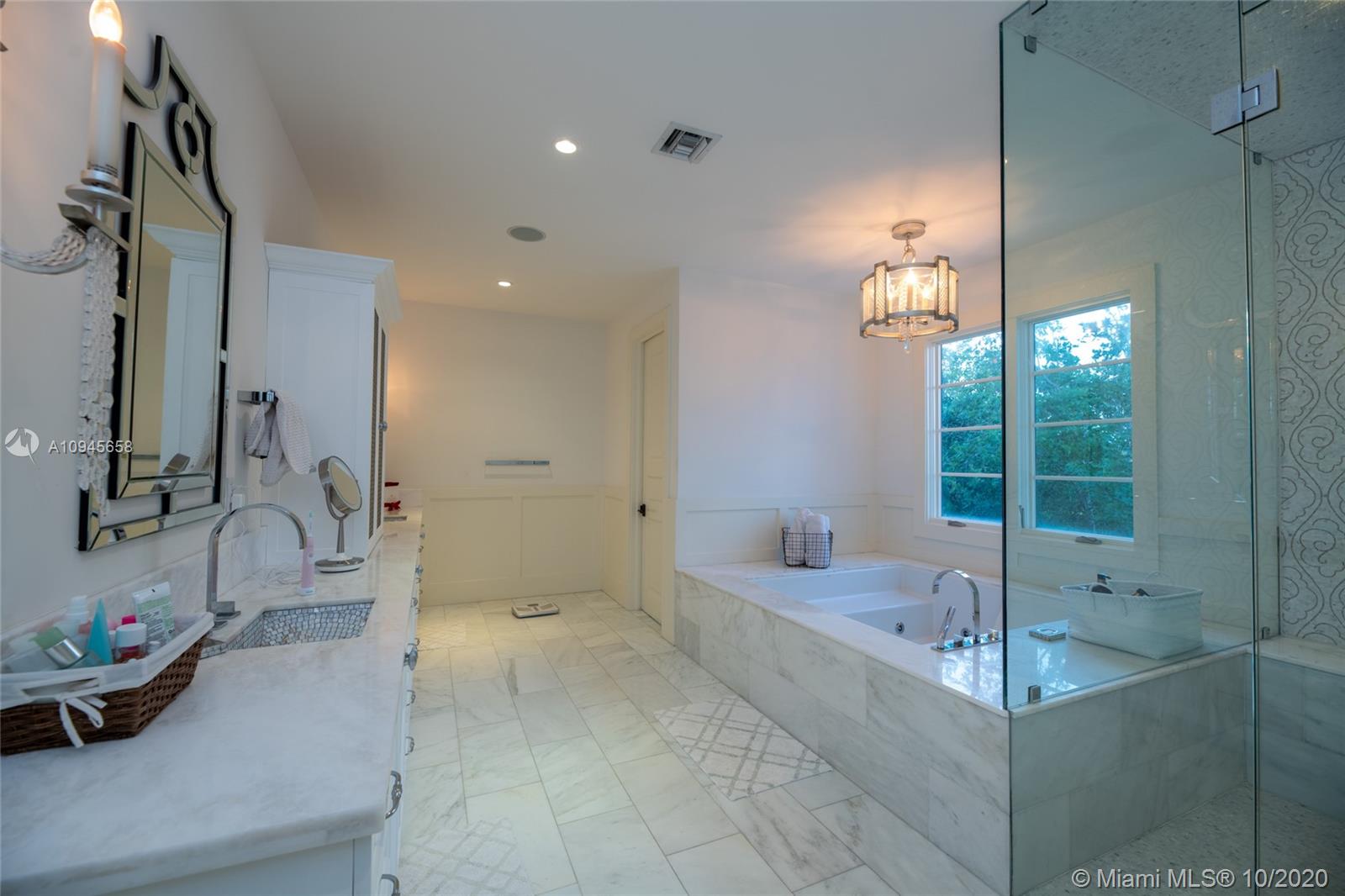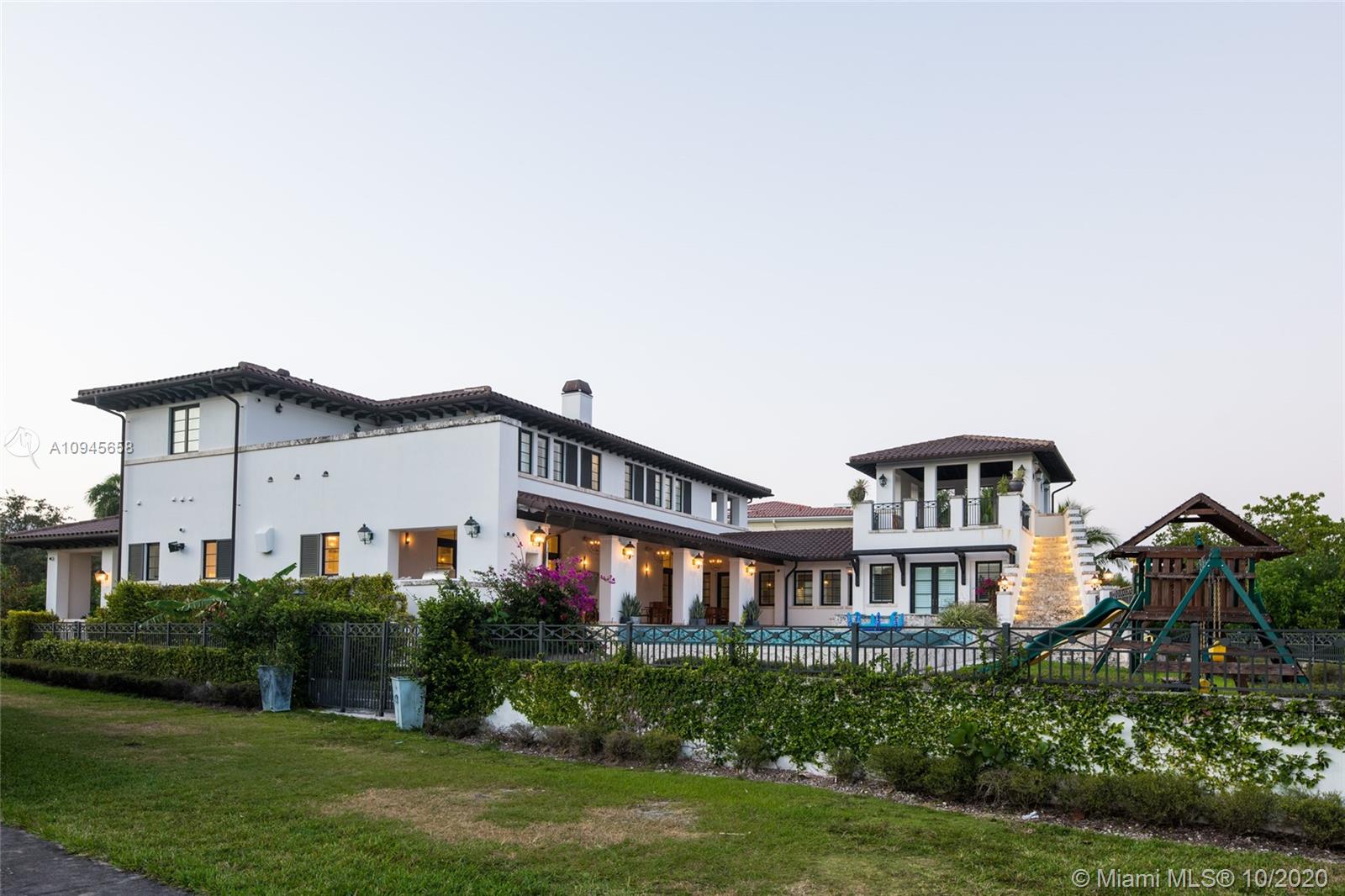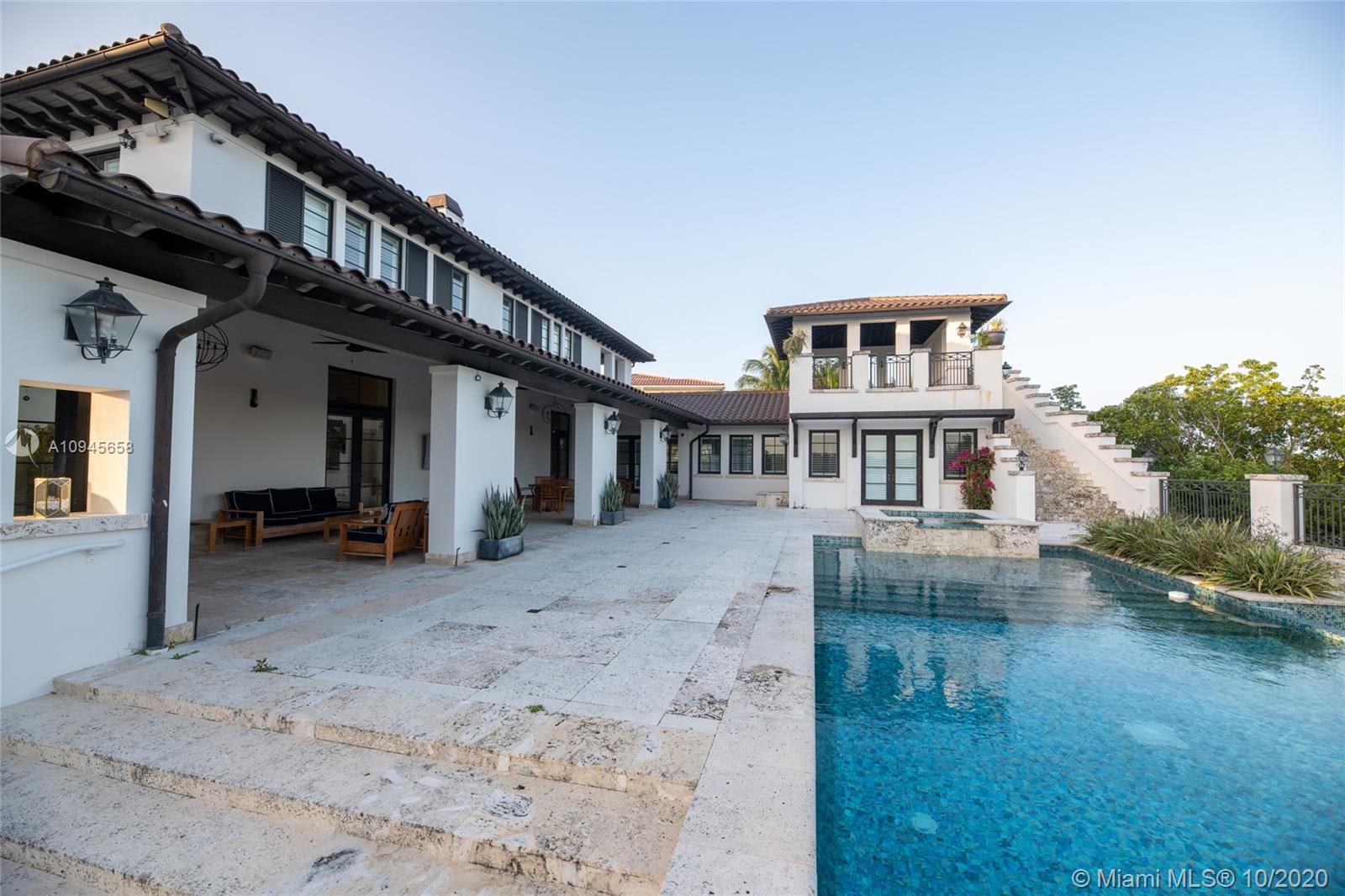 Custom built waterfront Tuscan villa with a modern interior flare, nestled behind the beautiful Mangroves of Matheson Hammock Park. This gorgeous home is located in the exclusive gated community of Hammock Oaks, Coral Gables and boasts a large 20,392 square foot lot and a stunning 8,765 total square foot home with 8 bedrooms and 7.5 bathrooms. First Floor features a gourmet chef kitchen with top of the line Wolf, Miele and Subzero appliances, gas stove and carrera marble countertops. An entertainer's dream, backyard features oversized covered Loggia with outdoor kitchen and large infinity pool. Direct water access with a 55’ boat dock included in price.