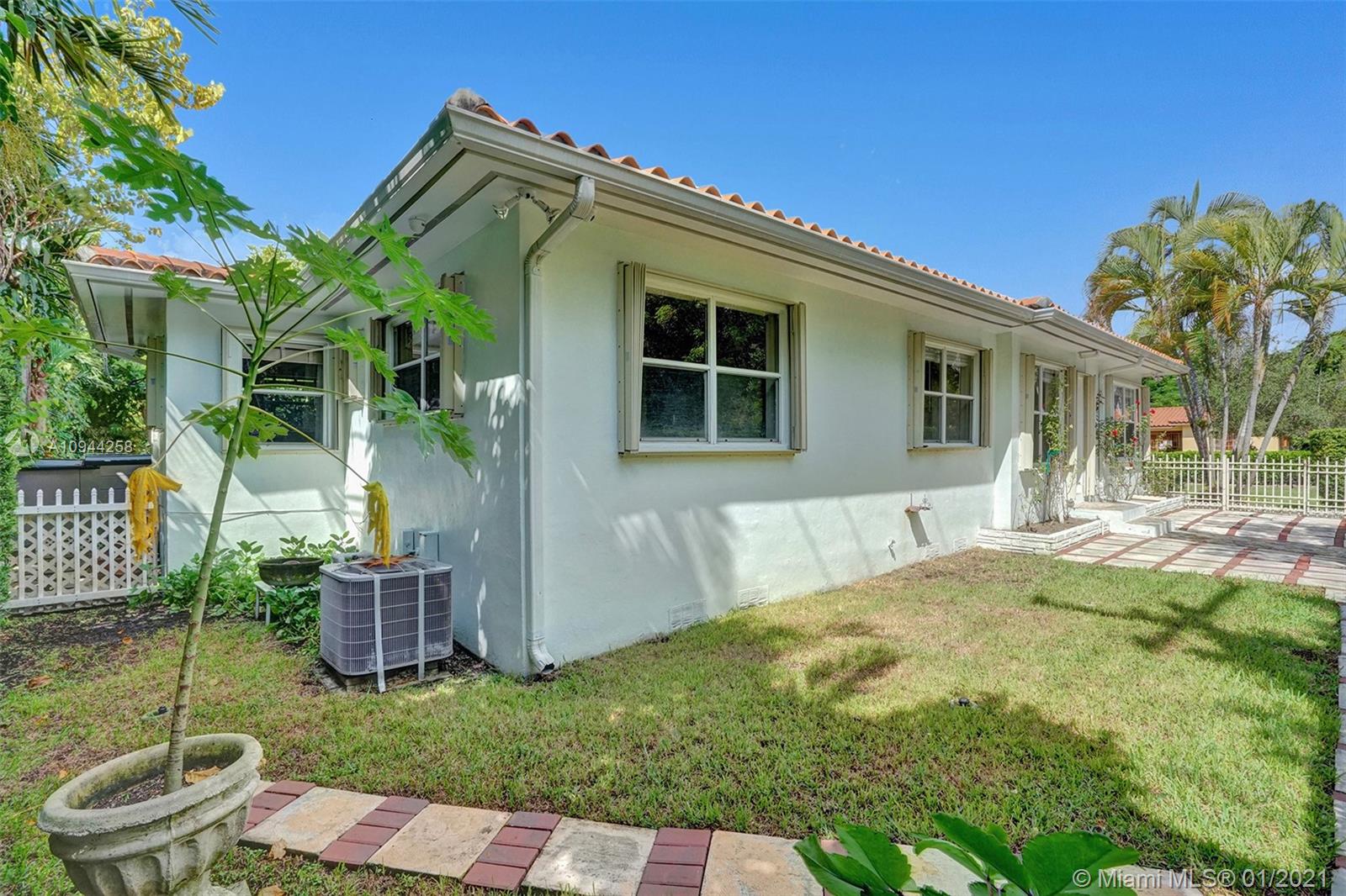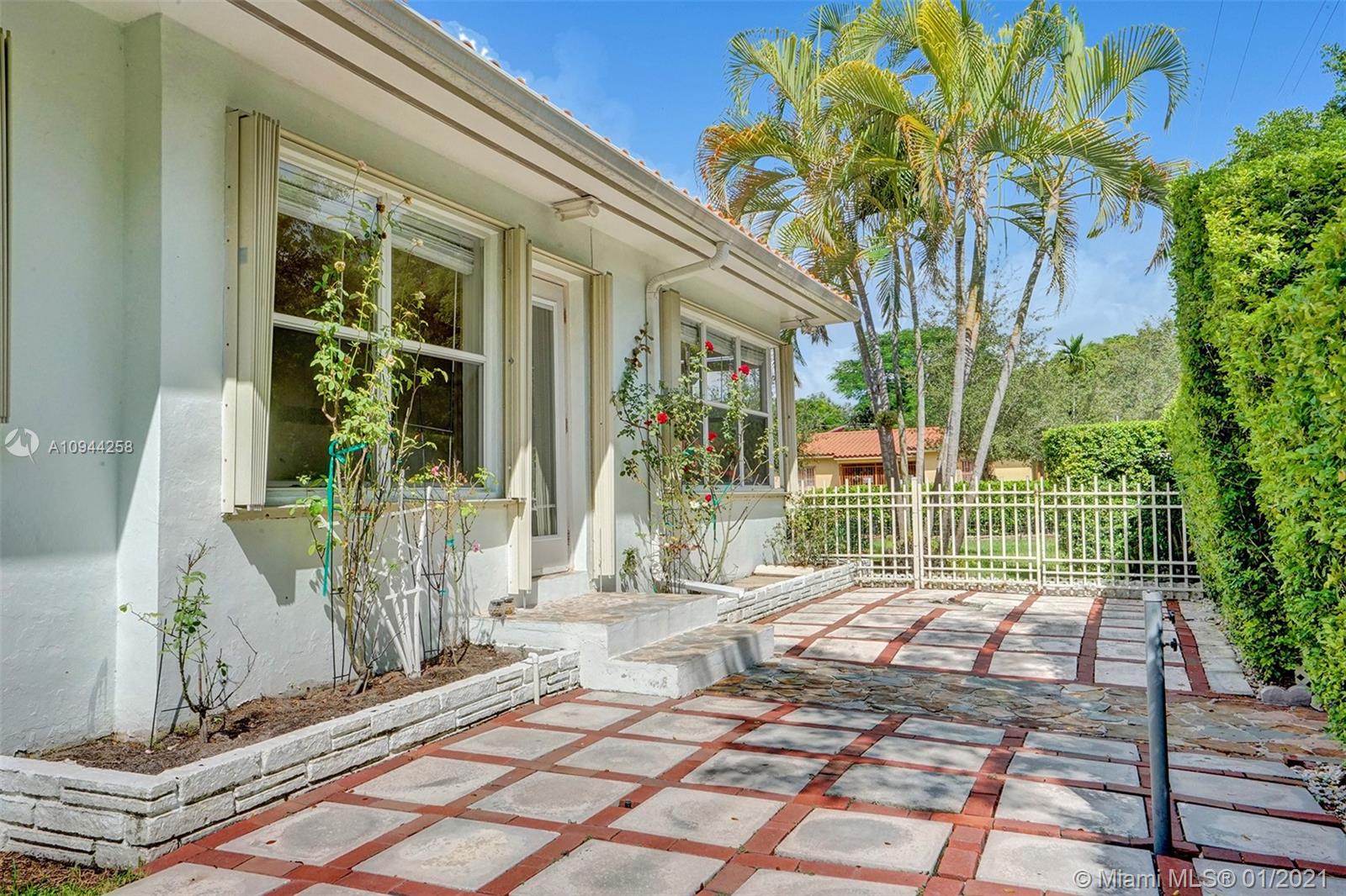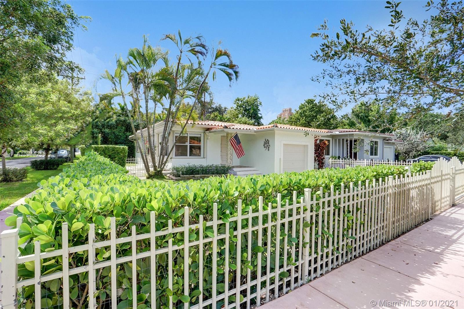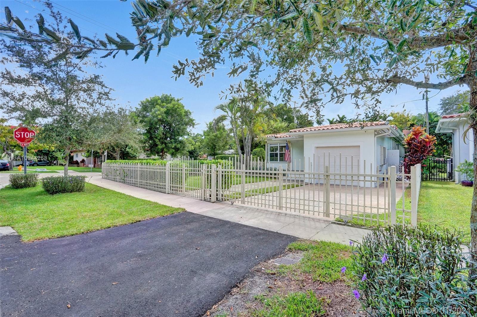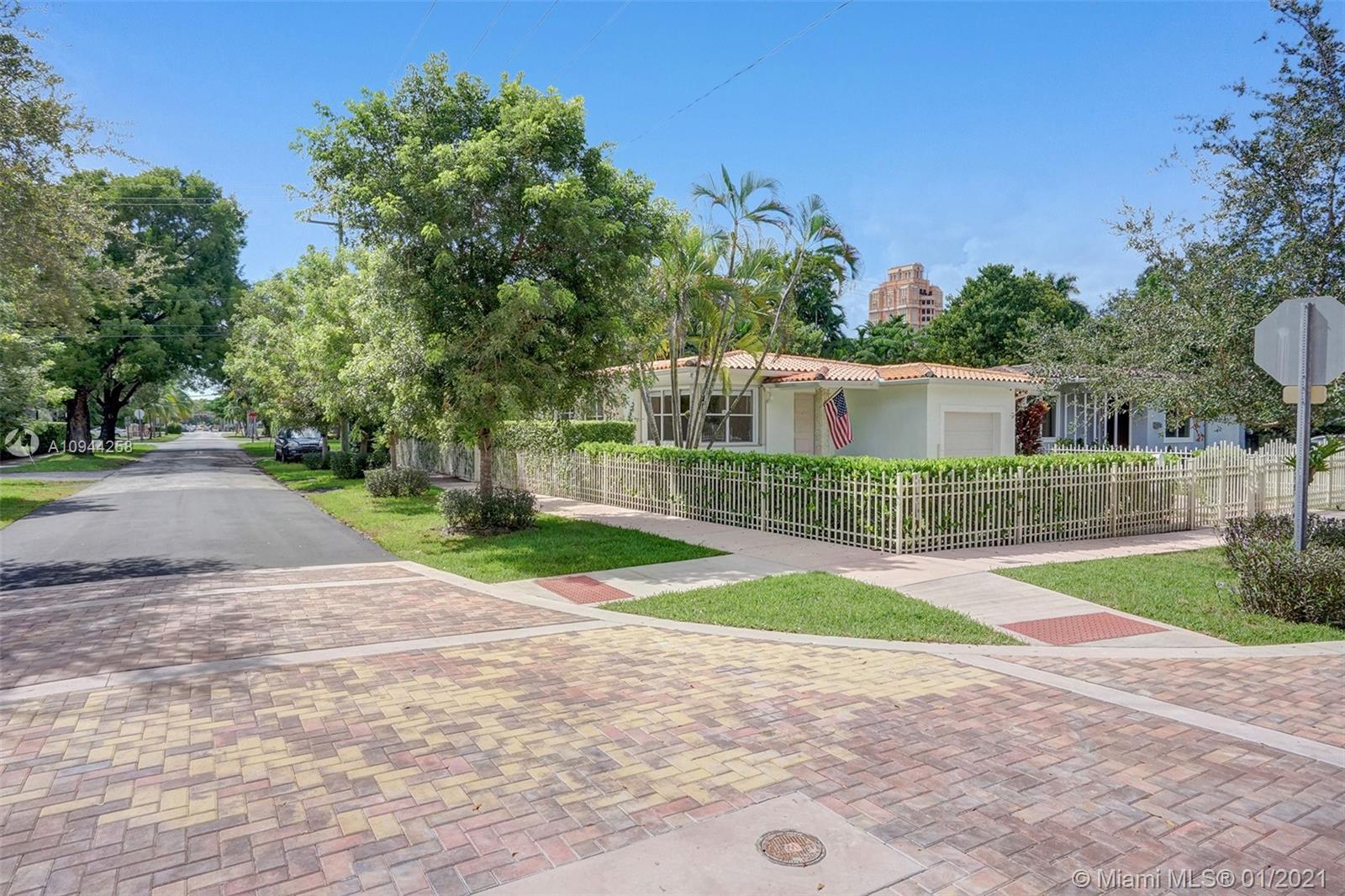 Corner property at Hernando and Giralda. Completely fenced. Wood floors throughout and ceramic tile floors in kitchen and bathrooms. Three bedrooms, two bathrooms plus one car garage. Hurricane accordion shutters. Remodeled kitchen and bathrooms. Rolling gate in driveway. Storage shed. Walk to restaurants on Giralda, Miracle Mile, houses of worship, schools, city hall, theaters, golf courses, tennis courts, etc.