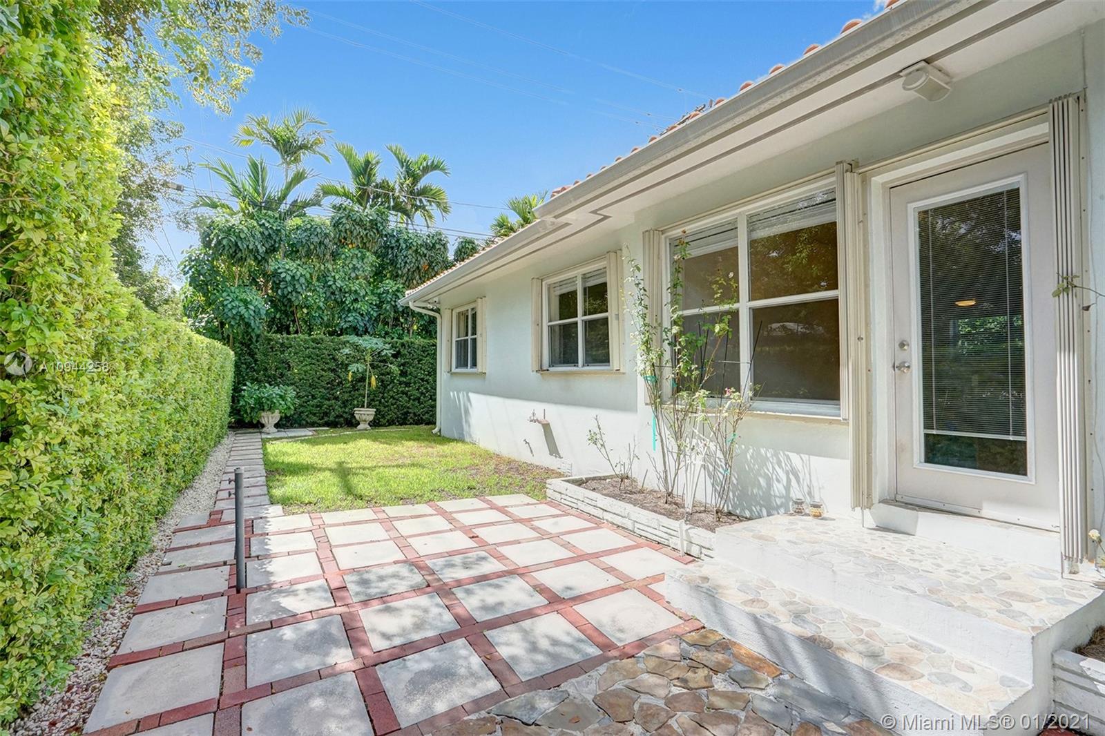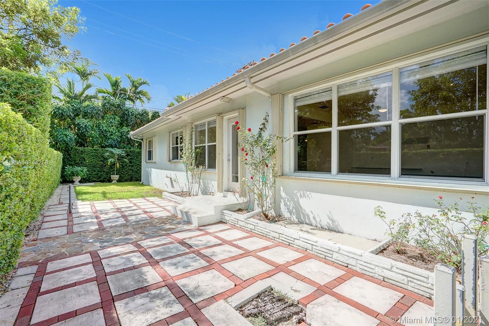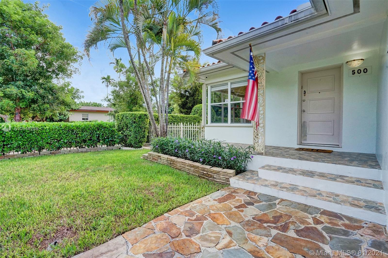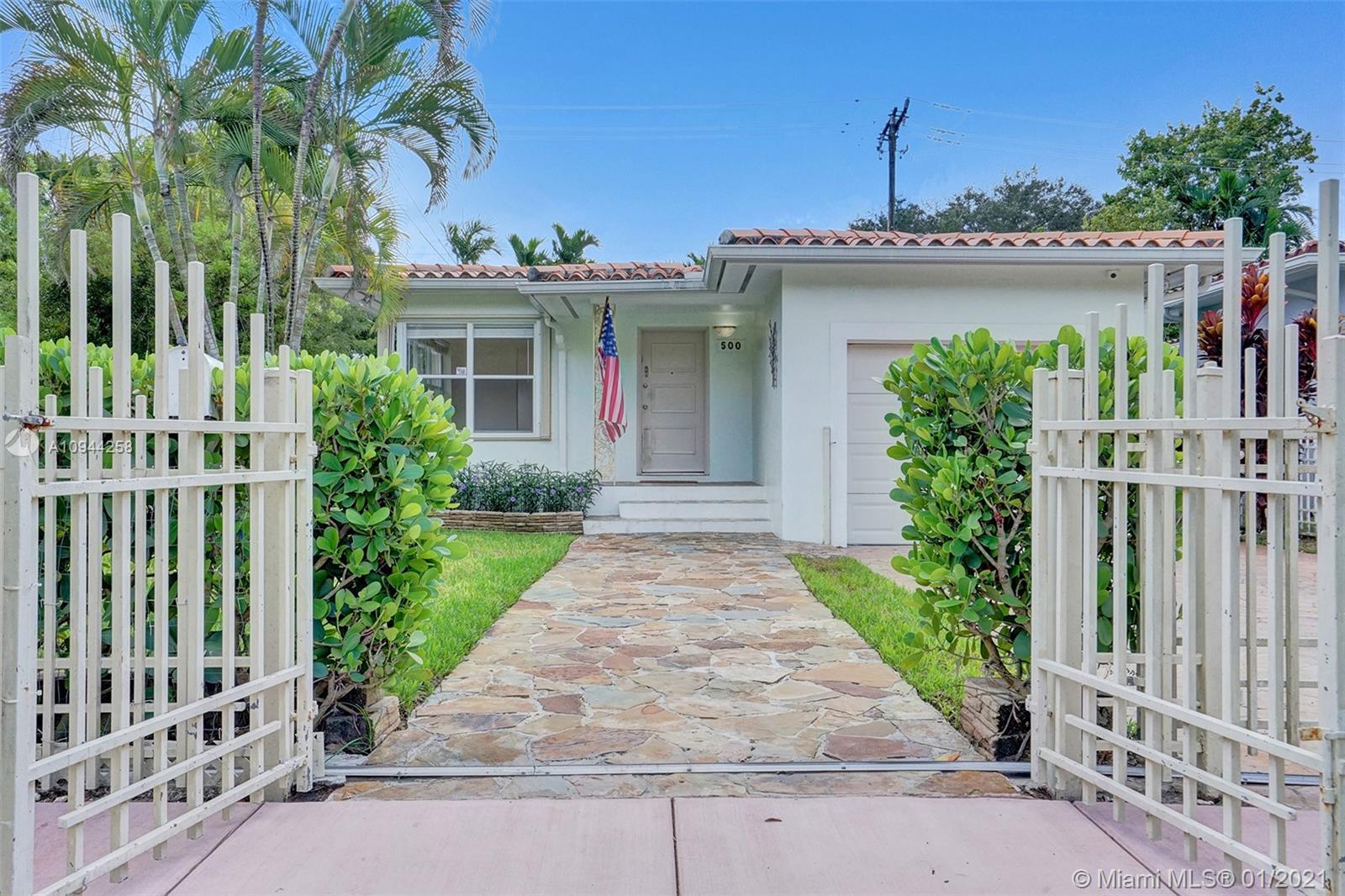 Corner property at Hernando and Giralda. Completely fenced. Wood floors throughout and ceramic tile floors in kitchen and bathrooms. Three bedrooms, two bathrooms plus one car garage. Hurricane accordion shutters. Remodeled kitchen and bathrooms. Rolling gate in driveway. Storage shed. Walk to restaurants on Giralda, Miracle Mile, houses of worship, schools, city hall, theaters, golf courses, tennis courts, etc.