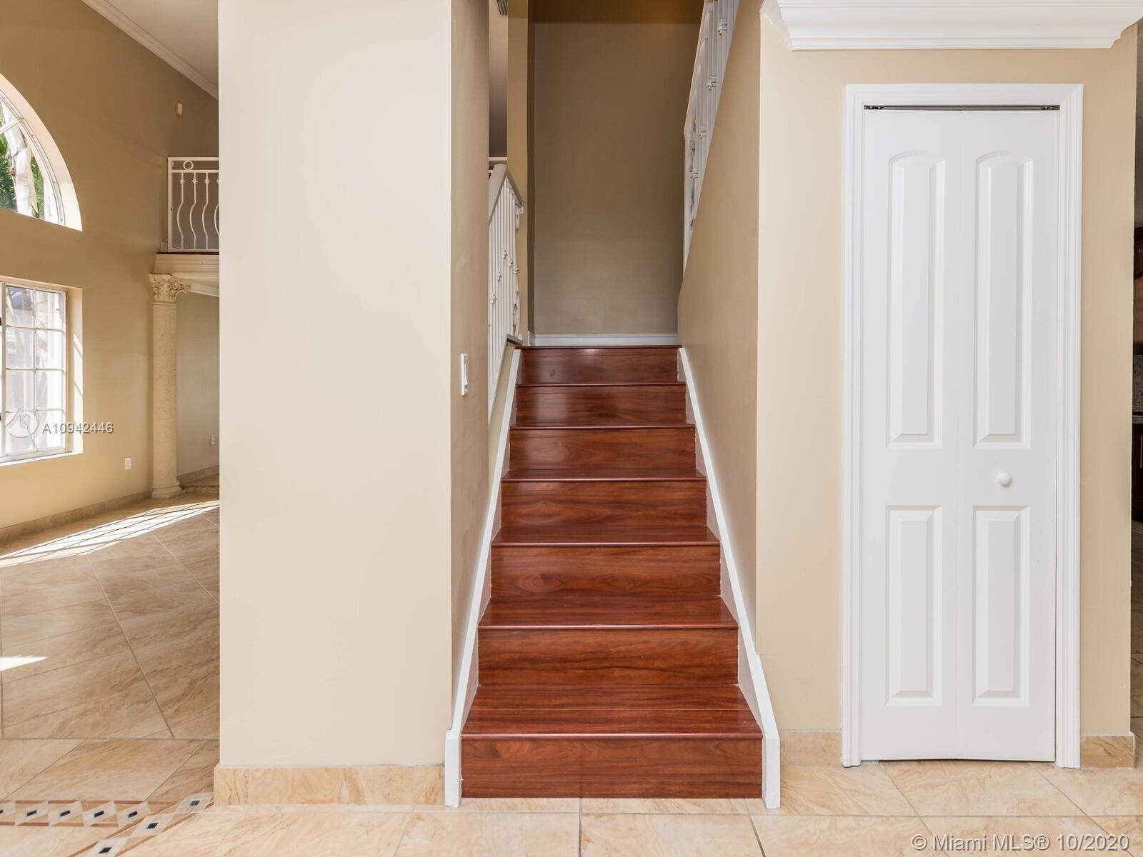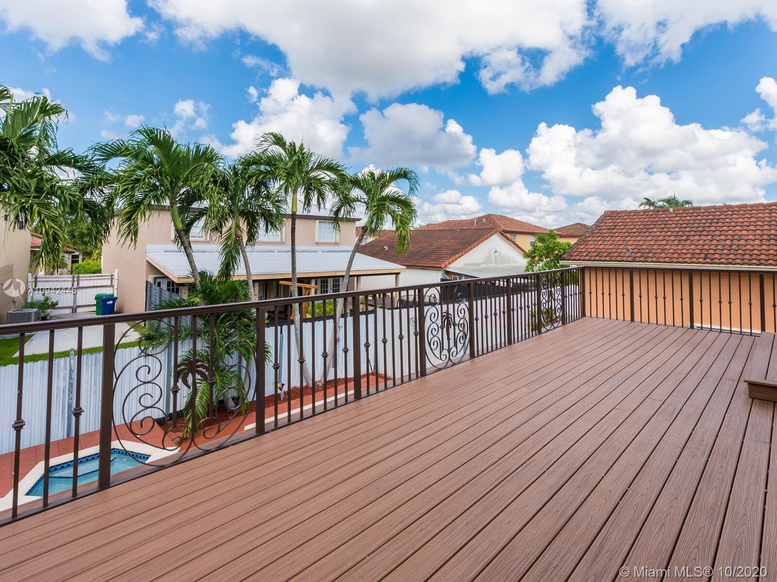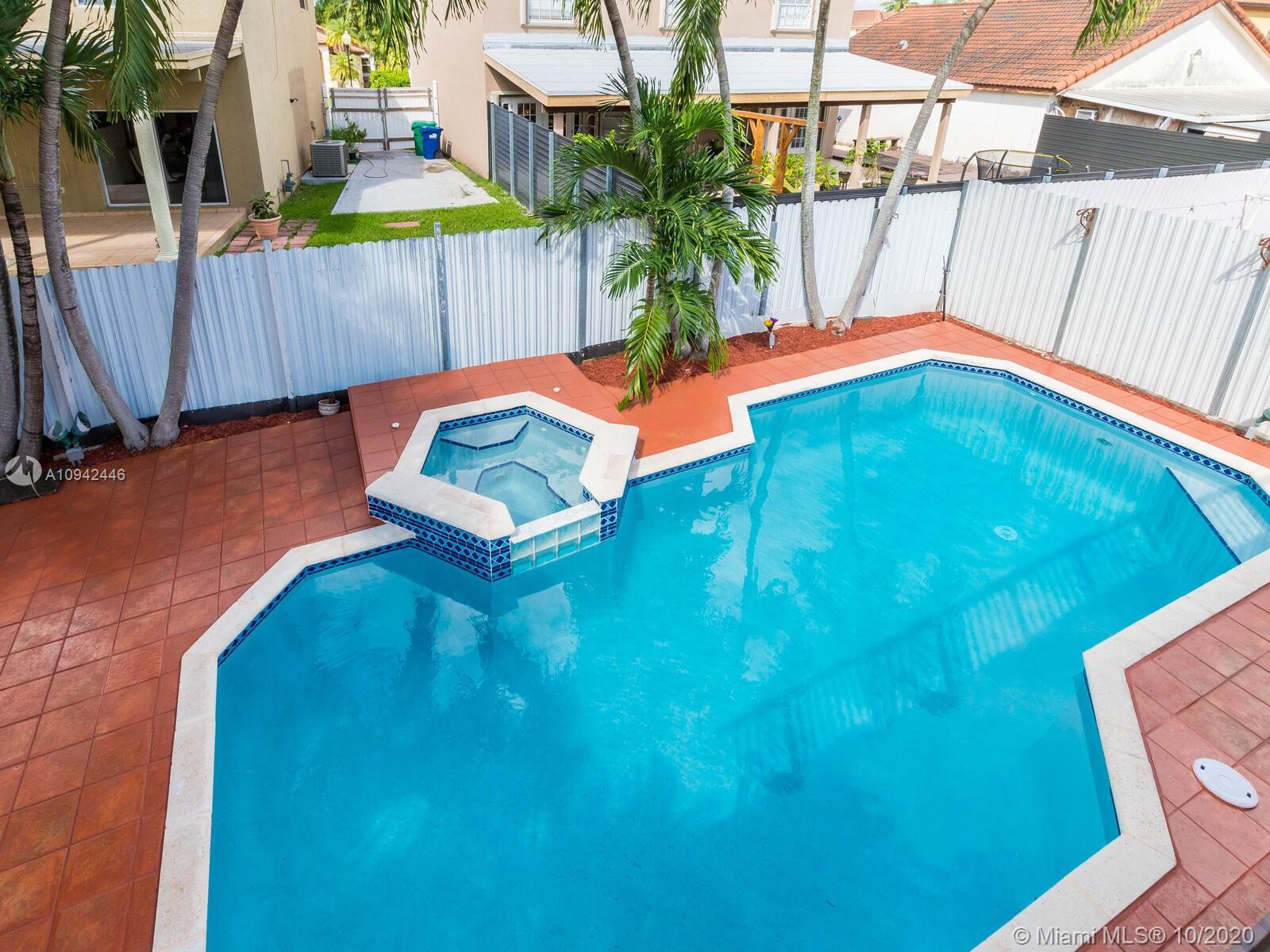 Absolutely stunning luxury estate located in a desirable neighborhood offering privacy and tranquility. Perfect for a family who is looking for a spacious and lovely 3 bed 2 & 1/2 bath house completely renovated and freshly painted. This nice two-story home has tile on the first floor and newly installed wood on the second floor with an open area and a loft. Large, bright, and beautiful Eat-in kitchen newly installed with dark wood cabinet and granite countertops equipped with top of the line black stainless steel appliances, large master bedroom with a private large balcony to enjoy the south Florida weather with a stunning pool view newly resurface with a spa. House completely fenced with high iron gates with nice design. windows are protected with accordion shutters.ready to move in.