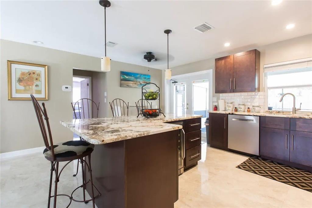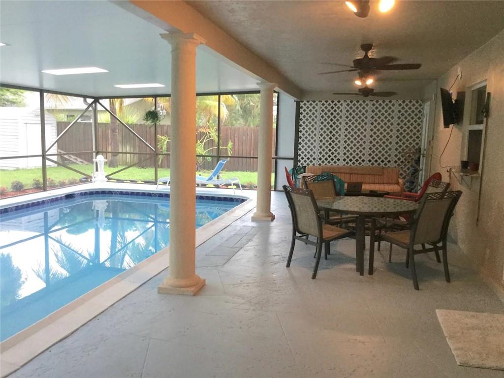 A 3 bedroom 2 bath House East of US1. On a large, nearly 10,000 sqft lot. Close to dog park & golf course. Near beaches and shopping. Open and airy home, great for entertaining. The Lanai and the Pool is covered and screened and measures 29x38. That's over 1,100 sqft of under cover, bug free outdoor entertainment area. And then add on top of that the outdoor bar. Two car garage w/circular drive. Impact windows and doors. Upgraded kitchen and floors. Large fenced in lot with rear cul-de-sac access to allow storage of boat, watercraft, or RV on your property. Municipal boat ramp and marinas just blocks away. Flat tile roof. Plenty of parking. Lot size is about 80 feet wide by 125 deep. This home is a must see.