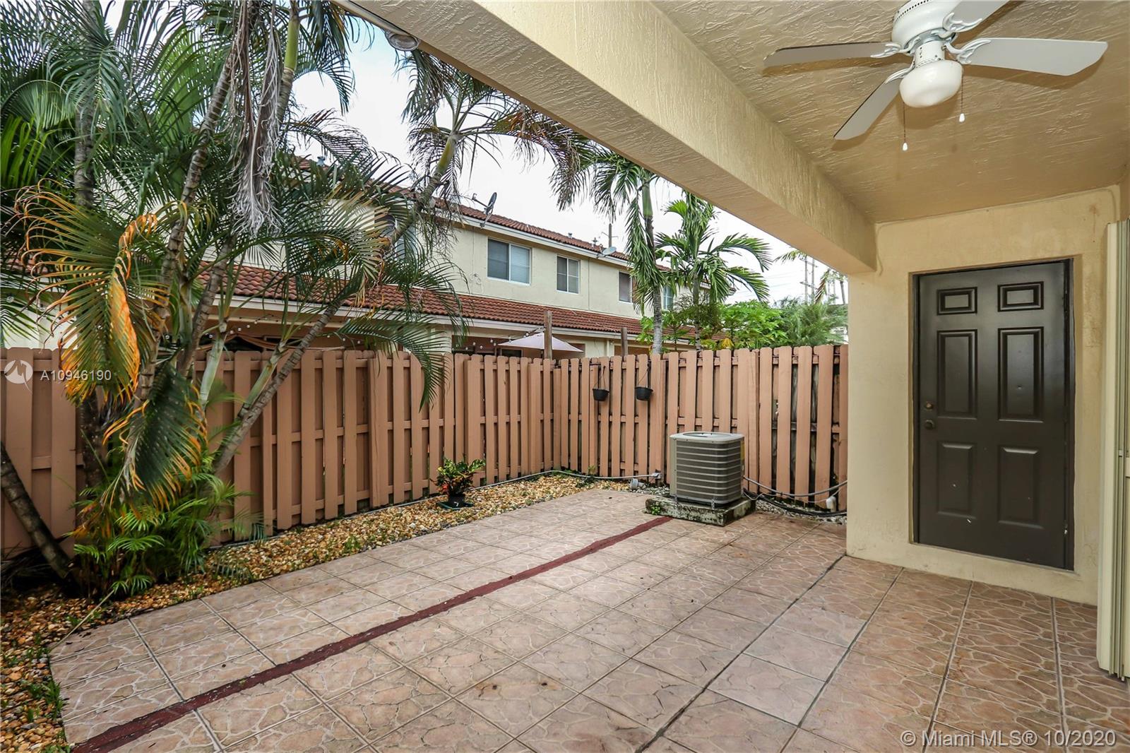 Nice & spacious 2 bed 2.5 bath townhome in Dimensions at Doral. This home features all bedrooms in the 2nd floor with wood laminate throughout and ceramic tile floors in the 1st floor, a huge master bedroom with walk-in closet and one car garage with laundry station. Exterior features include accordion shutters throughout and a private fenced-backyard that is good for relaxing, entertaining and BBQ . This property is conveniently located close to great shopping, plenty of dining options, and the Florida Turnpike.