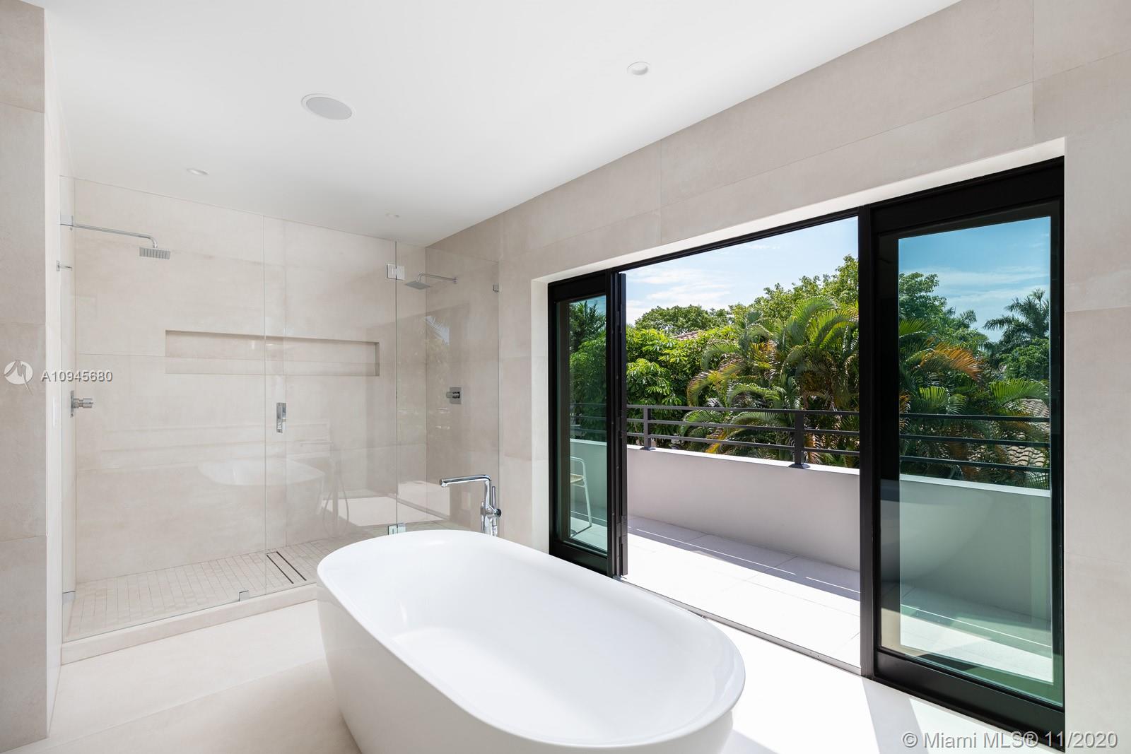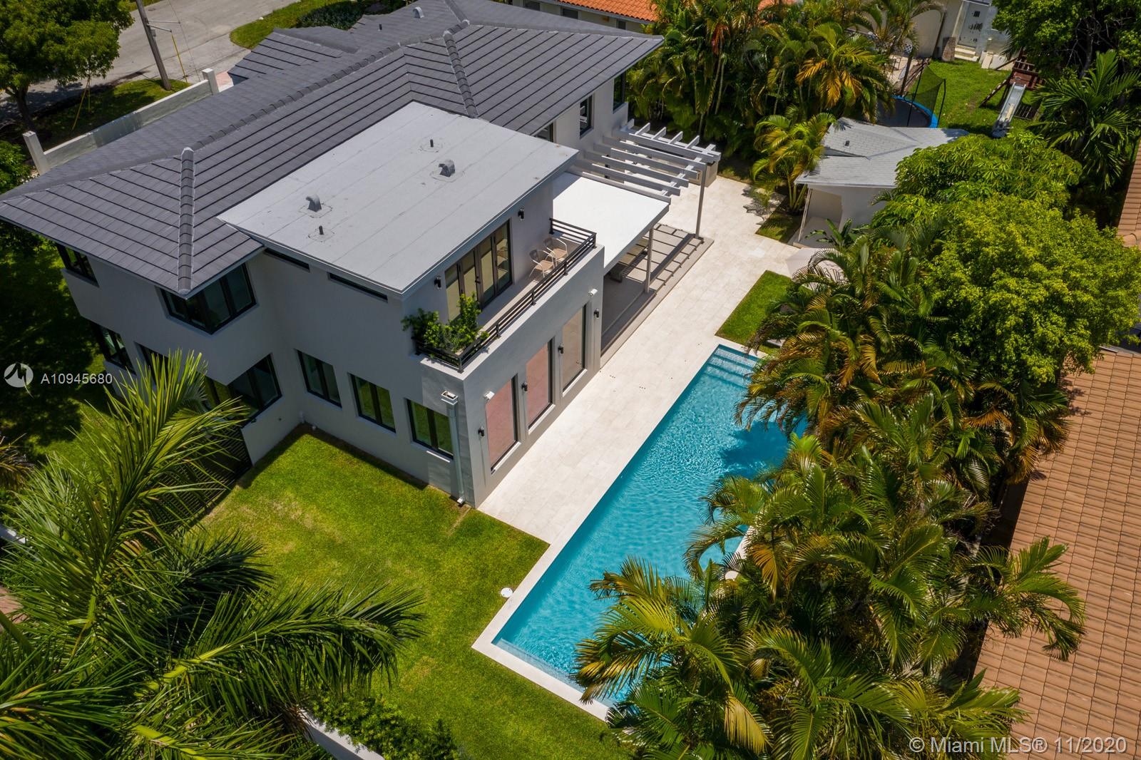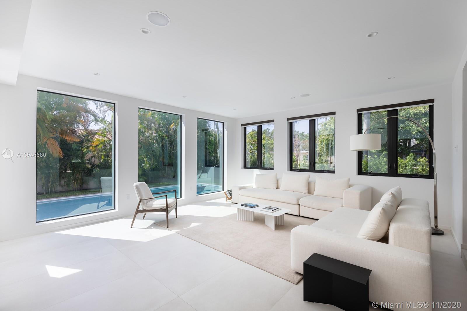 This fully renovated mid-century modern Miami Beach home's design is timeless. Completed in 2020, the neutral monochrome interiors designed by Chani Ettelson, inspire an ultra-calm setting. The 6 bedroom 5.5 bath home sits on a manicured 11,116 SF corner lot & offers 4,624 of living space. Italian finishes throughout include porcelain floors, custom interior doors, and kitchen by Cesar. The kitchen is featured with Dacor and Miele appliances. More luxury details include extra-wide white oak floors on the upper floor, Sonos 6-zone built-in speaker system. The 2nd-floor master suite boasts a huge master bathroom, which opens up to a private deck off the bedroom and a large walk-in closet. Guesthouse on the property houses 1 bedroom + 1 bath. Heated saltwater pool and outdoor kitchen.