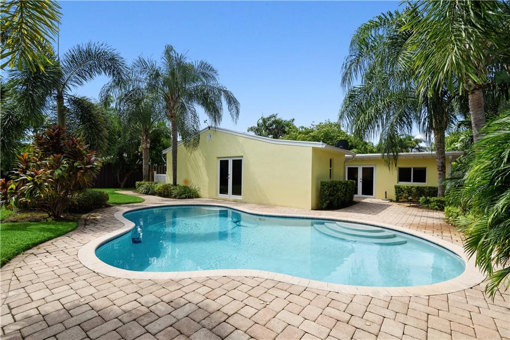 Charming 3 bedroom 2 bath home in the much sought after neighborhood of Poinsettia Heights. With its Key West inspired facade, covered front porch, 1,544 Sq. Ft of bright under air living space, flexible layout & updated baths you are sure to see yourself in this property. The kitchen is appointed with stainless steel appliances & opens to dining and main living area for interaction with family and friends. Master bedroom has in-suite bath with dual vanity and opens to a beautiful outdoor oasis with pool and paver pathways. Third bedroom can be easily repurposed to an office or flexible living space. Outdoor living area includes paver walkways from home to and around pool. High impact windows & doors throughout. Paver driveway with room for 4 vehicles.