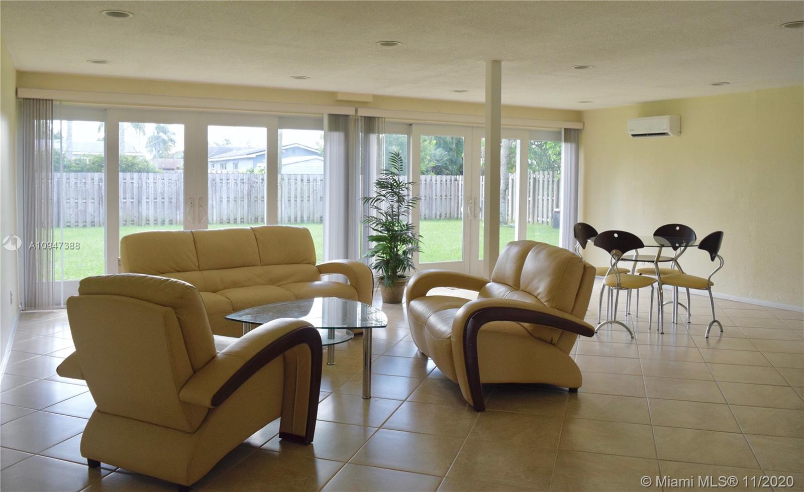Impeccable One-Floor Single Family with 3-bedrooms, 2 baths, plus den that can be used as 4th bedroom or office. Tile throughout the house. Spacious Florida room +/- 500 sf. with French Doors PGT Impact Rated double pane insulated, and a split AC unit installed in 2020. Bathrooms remodeled in 2015. New 5-ton A/C unit installed 2018. Master bathroom glass block window. New roof in January 2011. New driveway in 2017. Fenced back yard w/ avocado & mango trees. Ample space for a big pool. Impact windows in both garage windows. Sprinkler system with timer, fed from well. Minutes to Turnpike and I-95 expressways. Several A+ schools.
