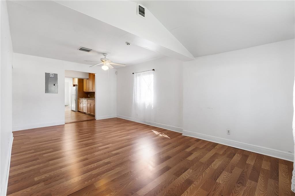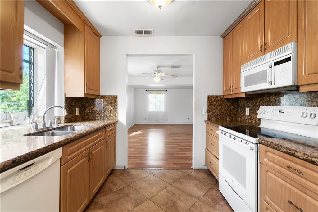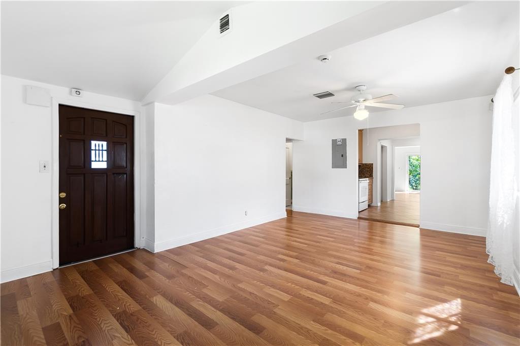 BACK ON THE MARKET!!! Spacious 3/2 & 1493sf living space with a beautiful front porch. Interior has split configuration, as you enter the Liv/Dine room area with an open floor plan, Laminate floor & plenty of natural light. To the Left you have 2 bedrooms with ceiling fans & full bath. Past the dining room you will see a spacious galley kitchen with upgrade GE range, beautiful cabinetry work, granite counters and storage. Your family will gather around great room with a sliding door to the back yard & the bright master bedroom, walk in closet & bath. Inside Laundry Hookups. The outdoor is as lovely & private, you’ll enjoy space for Boat/RV & & more parking. Home is prepared with impact windows and doors. Minutes to beach & downtown Close to shopping, downtown, beaches & highways