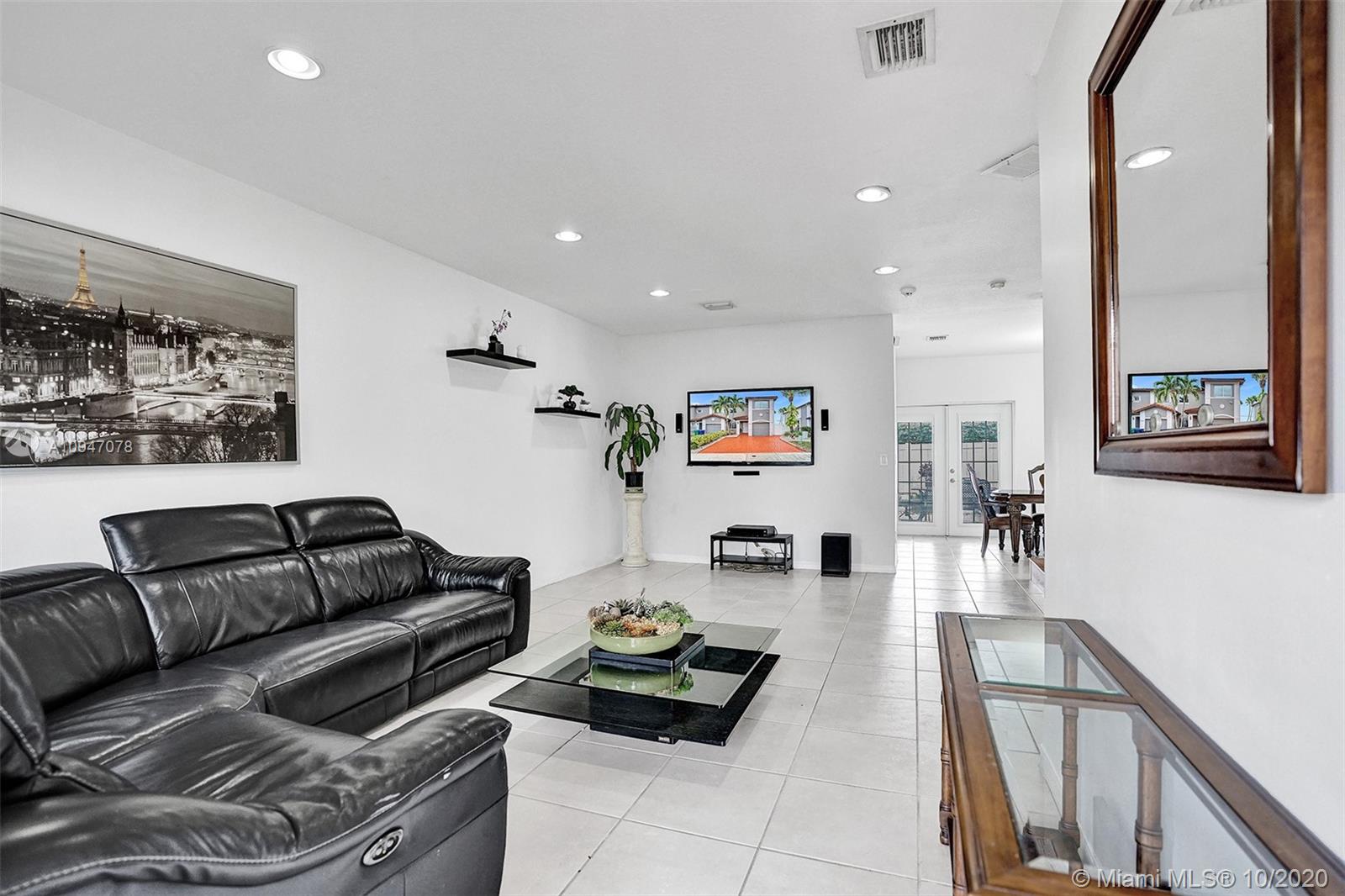 two-story corner unit townhome with three bedrooms, two and a half bathrooms, and a den with a closet that can be used as a home office, fourth bedroom or additional storage. The home features an updated kitchen with stainless steel appliances, recessed lighting along with sizable cabinets for storage. The beautiful French doors off the kitchen lead out to an inviting spacious patio with plenty of room to entertain. Bathrooms have been updated as well with upgraded fixtures such as rain shower heads, mosaic tile and glass shower doors. Master suite features a walk in closet, and a balcony that can accommodate a bistro table set. Recently repainted driveway provides ample parking for two cars. Excellent location, easy access to I-75 and the Turnpike making commuting that much easier.