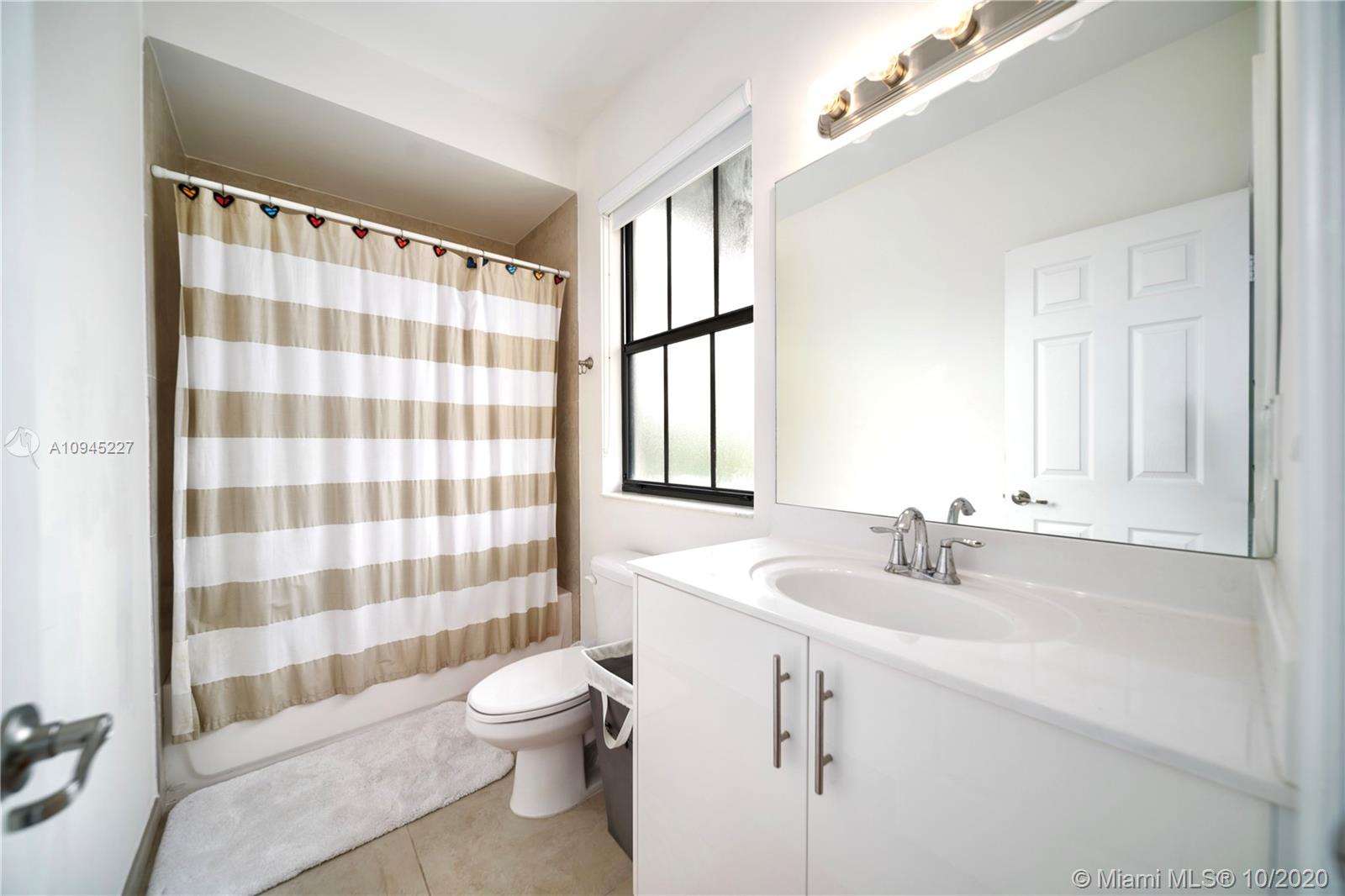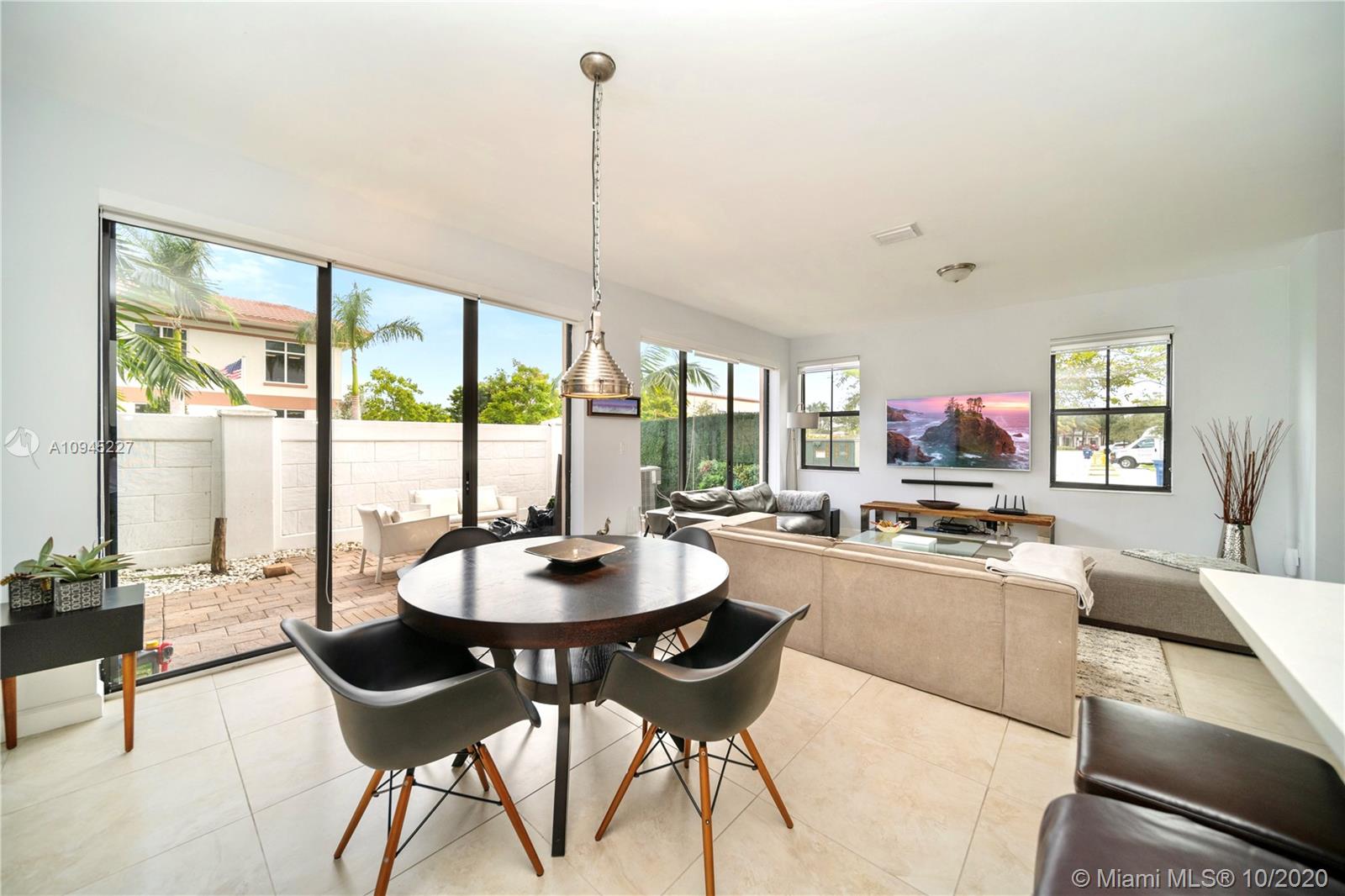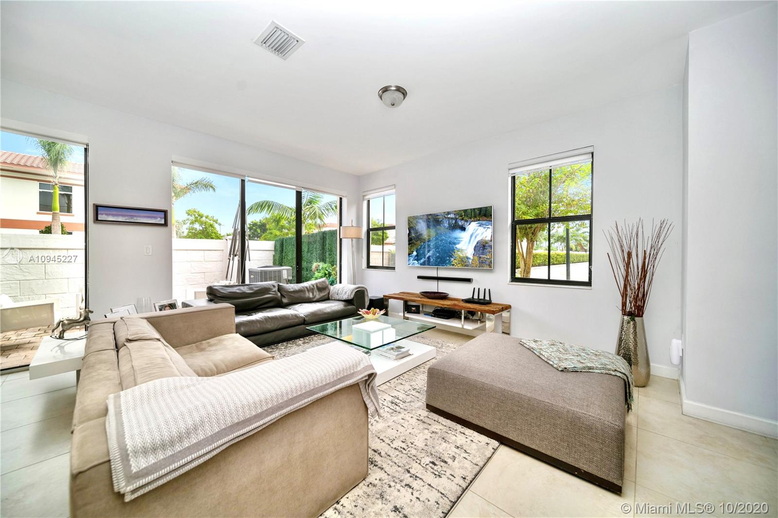 Elegant and spacious corner townhouse ready to move-in with 4 Beds + 1bed/office, 3.5 Baths, 2 car garage. Modern tile floor, and laminated wood on stairs and second level. This house features a spacious open floor plan w/ plenty of natural light, modern finishes, upgraded kitchen w/ Quartz countertop, modern vanities, spacious rooms, Master suite has a built-in walking closet, his and hers vanities, tub and glass shower. Laundry room located on second level, a welcoming patio design, 2 car garage or your personal Gym and office space. Close to community entrance, clubhouse, guest parking and mailbox. Doral Cay is a gated community,24/7 security, modern Clubhouse w/ wonderful amenities. Great location, walking distance to shops, restaurants, A+ Schools, and Turnpike and 826 Expressway