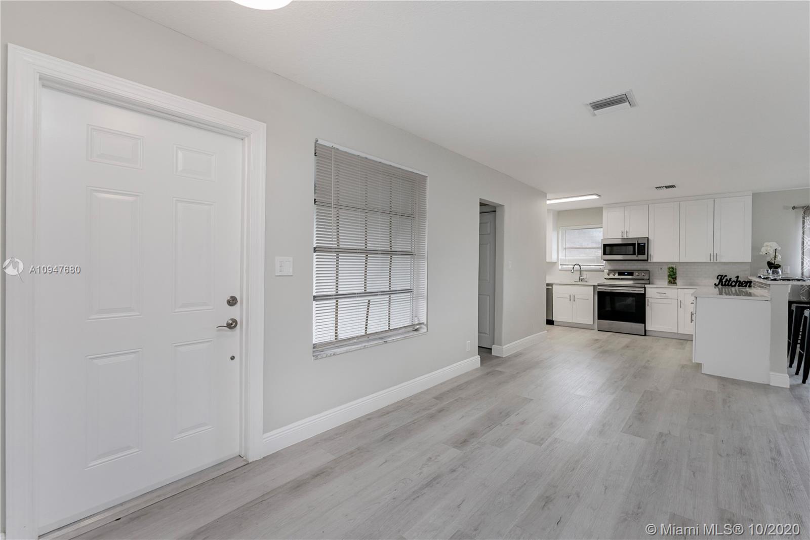 Beautiful fully remodeled corner lot ranch style home with 3 bedrooms and 2 bathrooms. The kitchen features white quartz countertops, subway tiles backsplash, wood cabinetry, and brand new stainless steel appliances. New waterproof vinyl flooring throughout the home, brand new roof, and new AC. The bathrooms have a modern style with a floating sink and were also remodeled from top to bottom. Large fenced backyard with just built deck and plenty of space for a pool. Conveniently located within walking distance to Publix, schools, and less than 10 minutes driving to the beach. No HOA."