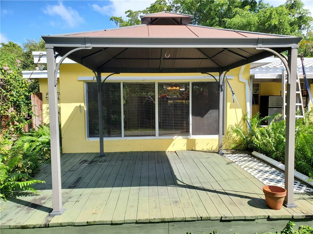 Beautiful CBS 3 bedroom and 2 updated bathrooms home with a one-car garage in tree-lined Lawn Acres plus a large safe room. Open floor plan, the kitchen has custom wood cabinets with 2 lazy susan cabinets, a large built-in pantry, granite counters, stove with double ovens, new dishwasher, high hats, undercabinet lighting. Plenty of closet space with additional storage in the Safe Room. Large laundry/utility with new LG washer and dryer and newer water heater. The roof is barrel tile and 5 years new, upgraded windows with storm panels, upgraded 200-amp electric panel with a transfer switch for the generator that is included. The air conditioner is a newer Trane, new solid wood interior doors, designer ceiling fans, flooring is tile, and terrazzo. Fenced rear yard with deck and gazebo.