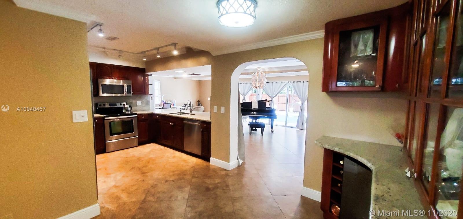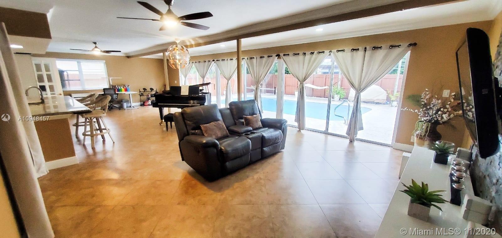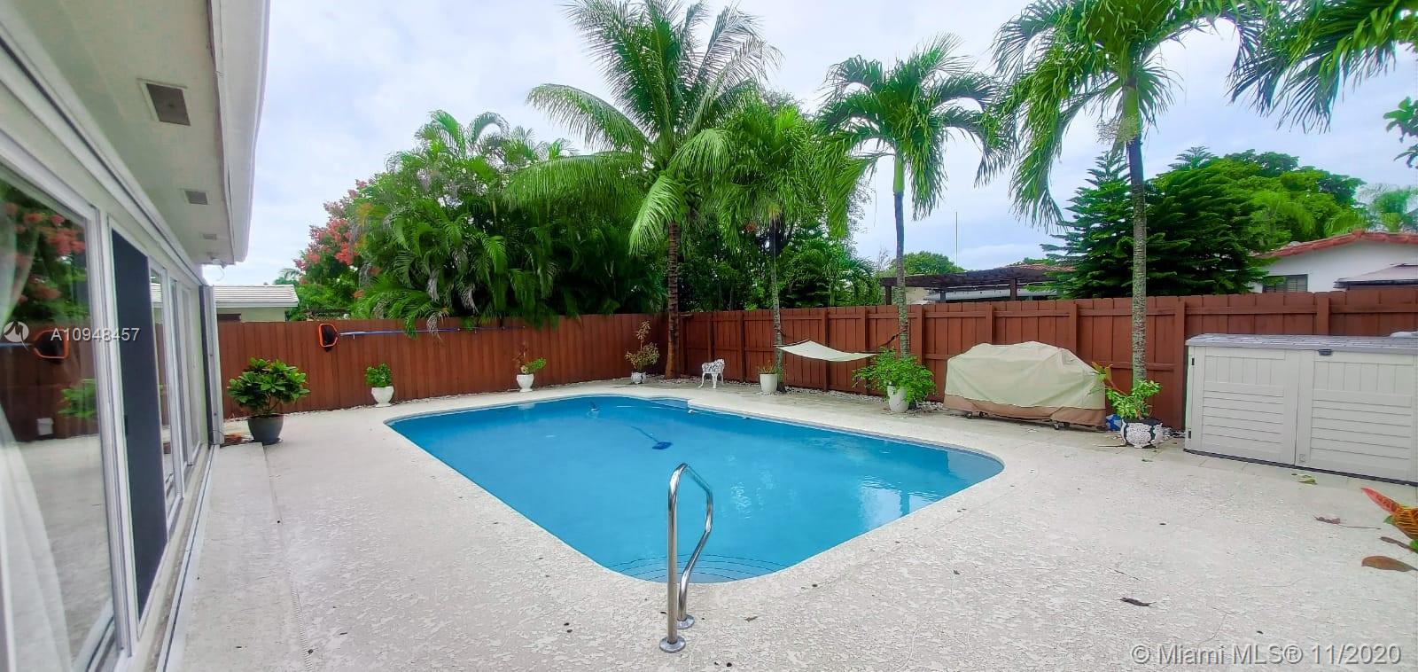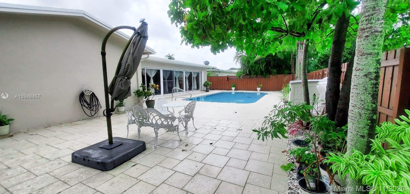 Gorgeous 4/2 home in Hollywood Hills. Well maintained and updated. Solid wood entrance door(2019), solid wood kitchen cabinets(2020), bathrooms(2020), light fixtures, resurfaced pool(2017), deck(2018), customized outdoor shed with electricity and electrical transfer switch for generator(2019). Large kitchen space w/ large seating counter(no microwave). Spacious rooms with custom closet build-outs. Backyard is perfect for entertaining, contains beautiful pool with surrounding deck and room for playground or gardening. Surveillance system, pool pump, A/C were replaced in 2017 and serviced sprinkler system(2020). Garage has built-in custom storage and counter space. Great location, close to Hollywood Memorial hospital, shopping centers, parks, restaurants, and Ft Lauderdale airport.