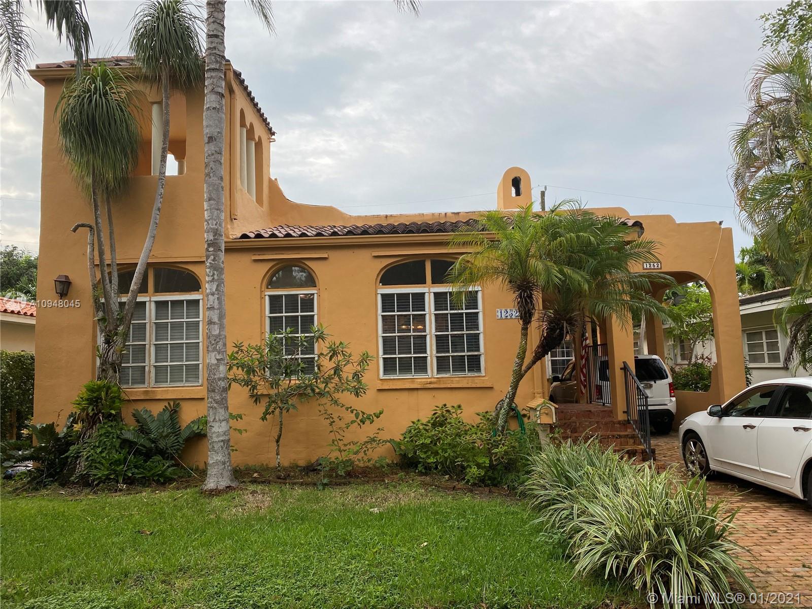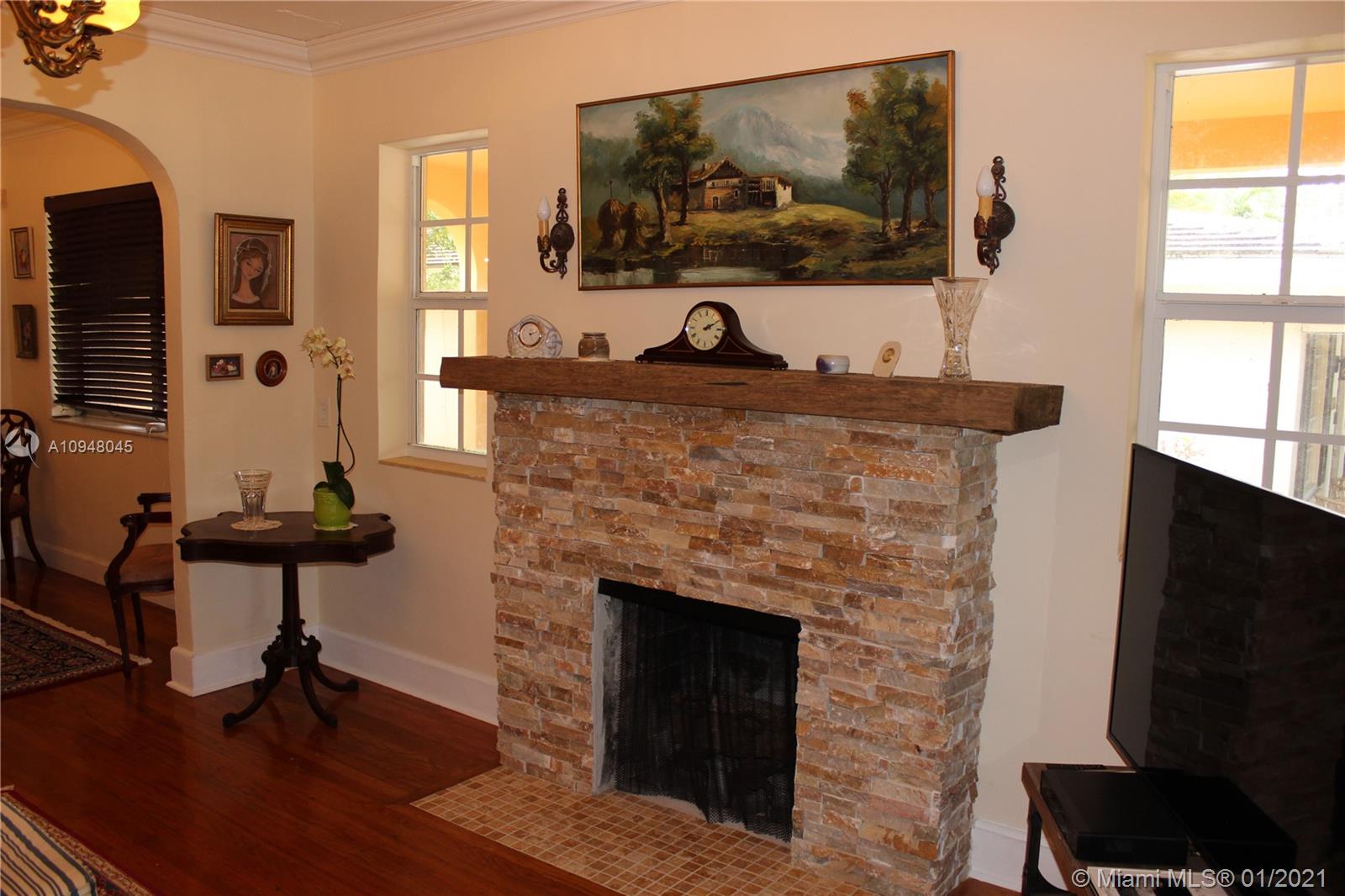 Charming 1925 Old Spanish Style Home in the heart of Coral Gables. Let the Old Chicago Brick driveway and steps welcome you to this 3 Bedroom and 2 full bath main house and a 1 bedroom/1 bath guest house. Beautifully updated Bathroom and kitchen while still preserving the Old Spanish charm! A stunning wood burning fireplace in the living room made of stacked stone with a solid cypress wood mantle. Plumbing has been upgraded and many electrical upgrades! Kitchen has marble floors, granite countertops, and beautiful dark wood cabinetry. Antique brass and Alabaster chandeliers in living and dining areas. Shutters and alarm system for the entire property. Whirlpool bathtub in the main bathroom. 8 years remaining on a 10 year roofing warranty. Location, Location on highly desirable Venetia Ave.