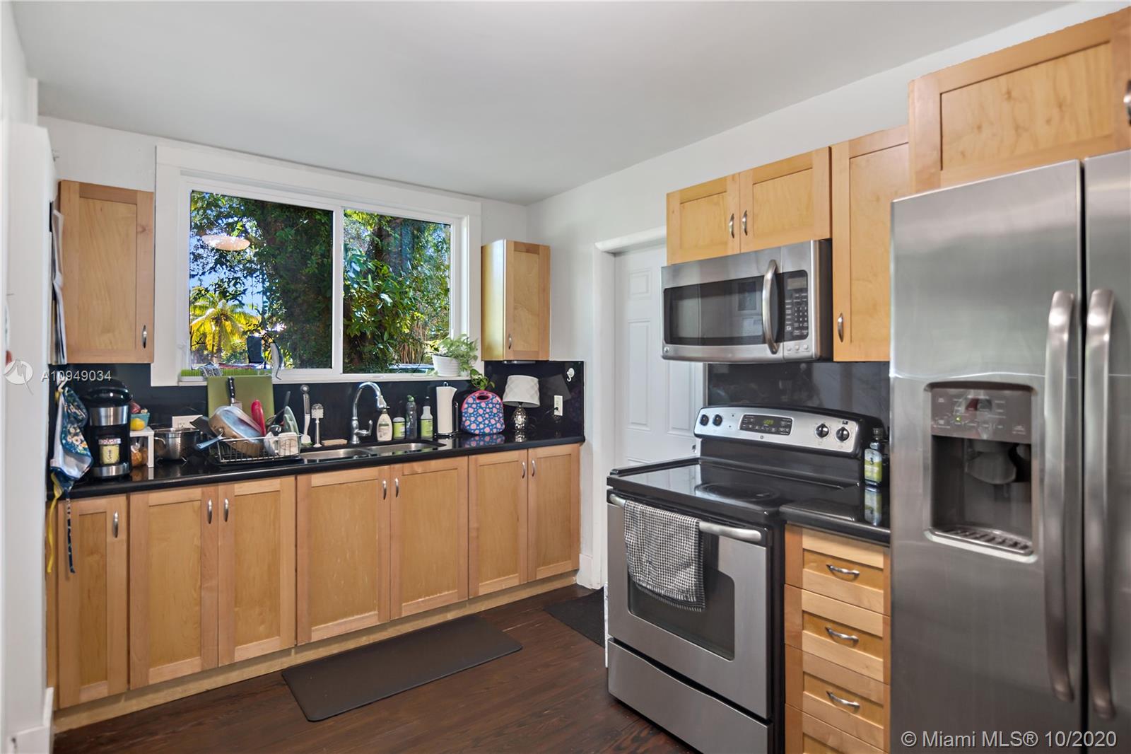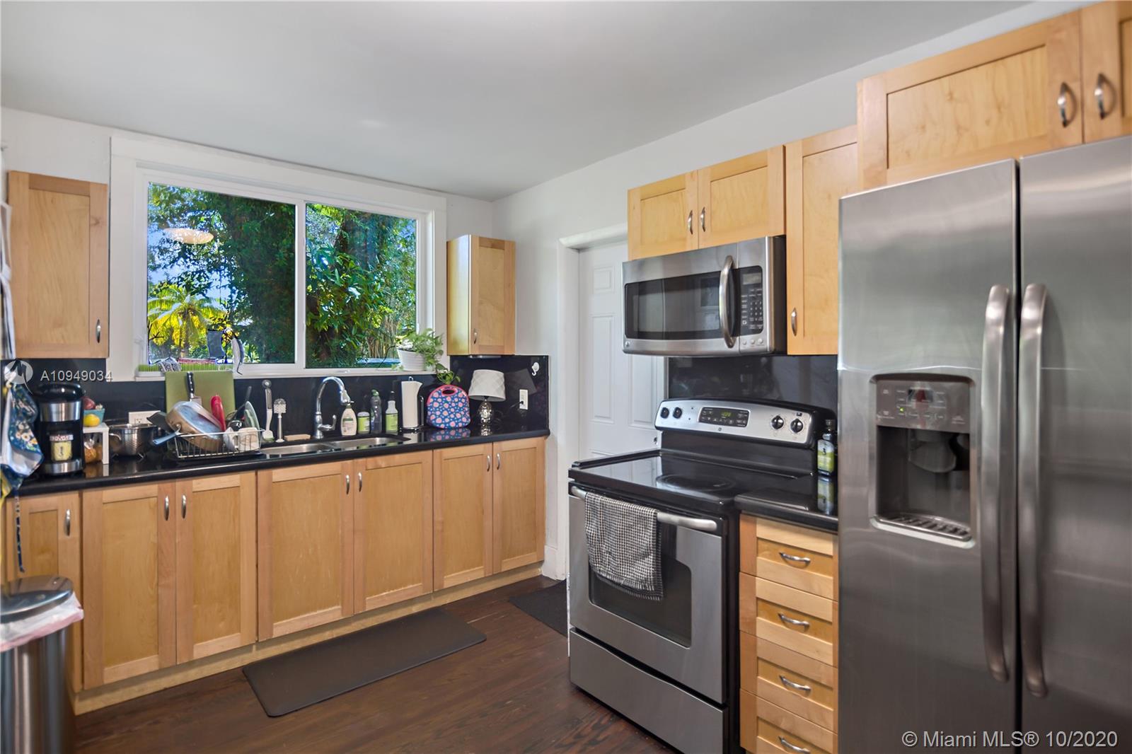 Beautiful Spanish style construction, this home has many quintessence art deco features. This is a unique street within the neighborhood, some homes have sold for over asking price. Lush landscaping welcomes you a to very quite and private cul-de -sac. The home has been remodeled over the years of last ownership. It has impact glass windows and doors, hardwood flooring, open kitchen with its own dining/breakfast area which is surrounded by lots windows allowing natural light and an open view of the backyard. The master bedroom is enormous, with a huge walk in closet, master bathroom features shower/tub combination, glass door and two separate sinks. The washer and dryer are located in the storage/laundry room. Dryer and water heater uses gas, making the expense of the electricity lower.