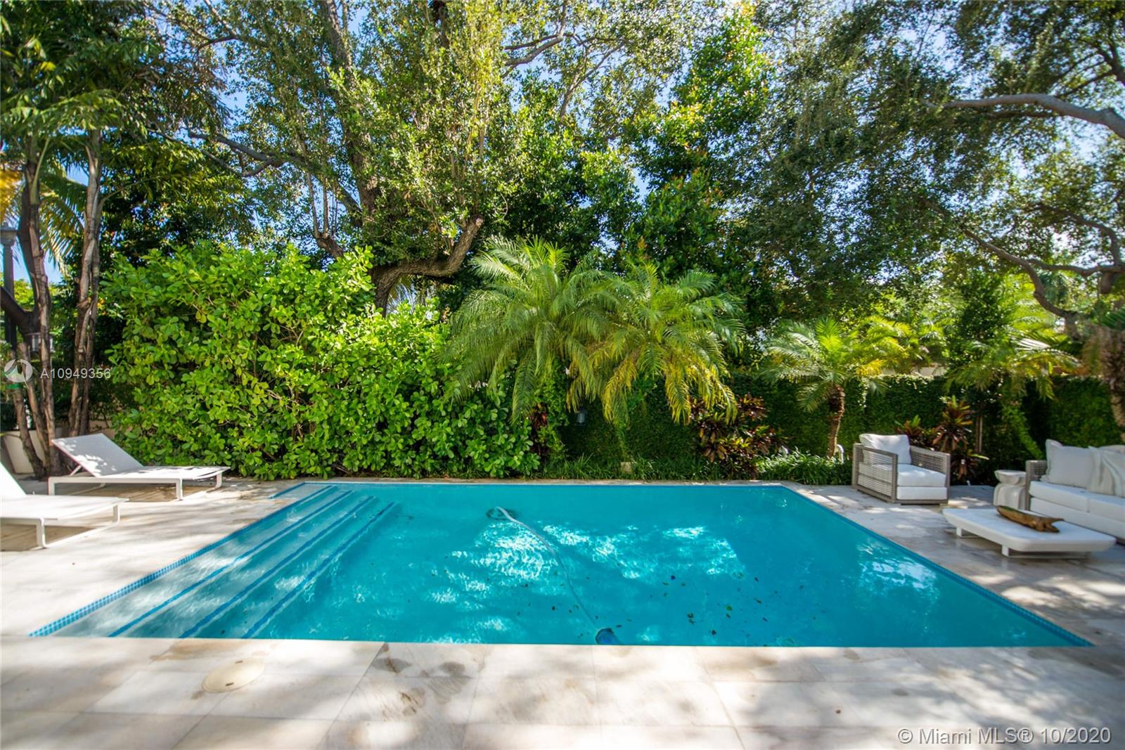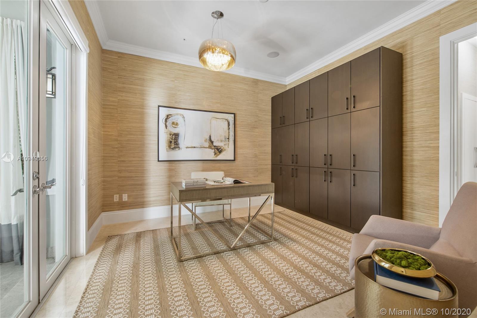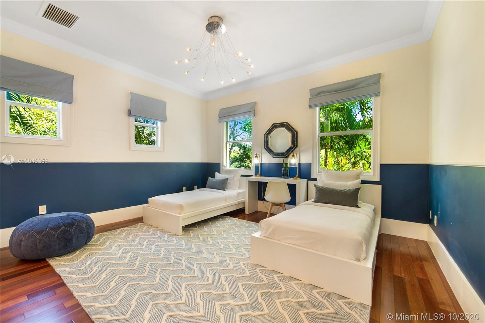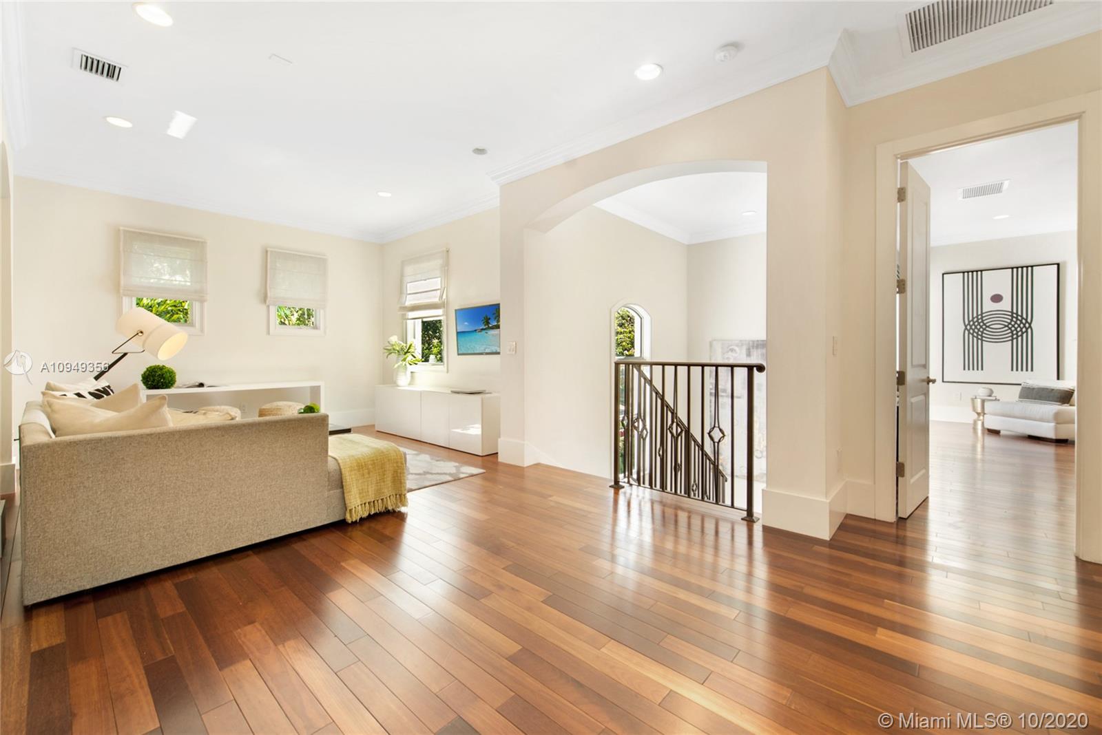 Stunning, magazine quality home in prestigious North Coconut Grove. Walk to bayfront parks & marinas, yet located at one of the highest sea-level elevations in South Florida. Totally walled & gated for ultra-privacy. Light-filled living spaces offer double-height ceilings and a blending of classic architectural details with a modern vibe. Expansive formal living & dining rooms for entertaining. Family room with custom built-ins, opens to the spectacular high-end kitchen w/white-lacquered cabinetry, walk-in pantry, professional gas range & adjacent breakfast area. Incredible master suite features his/hers walk-in closets (hers: 12’ X 19’), luxurious bath w/soaking tub & private terrace overlooking the garden & tranquil pool. Minutes to the Grove village center, MIA, downtown & the Beaches.