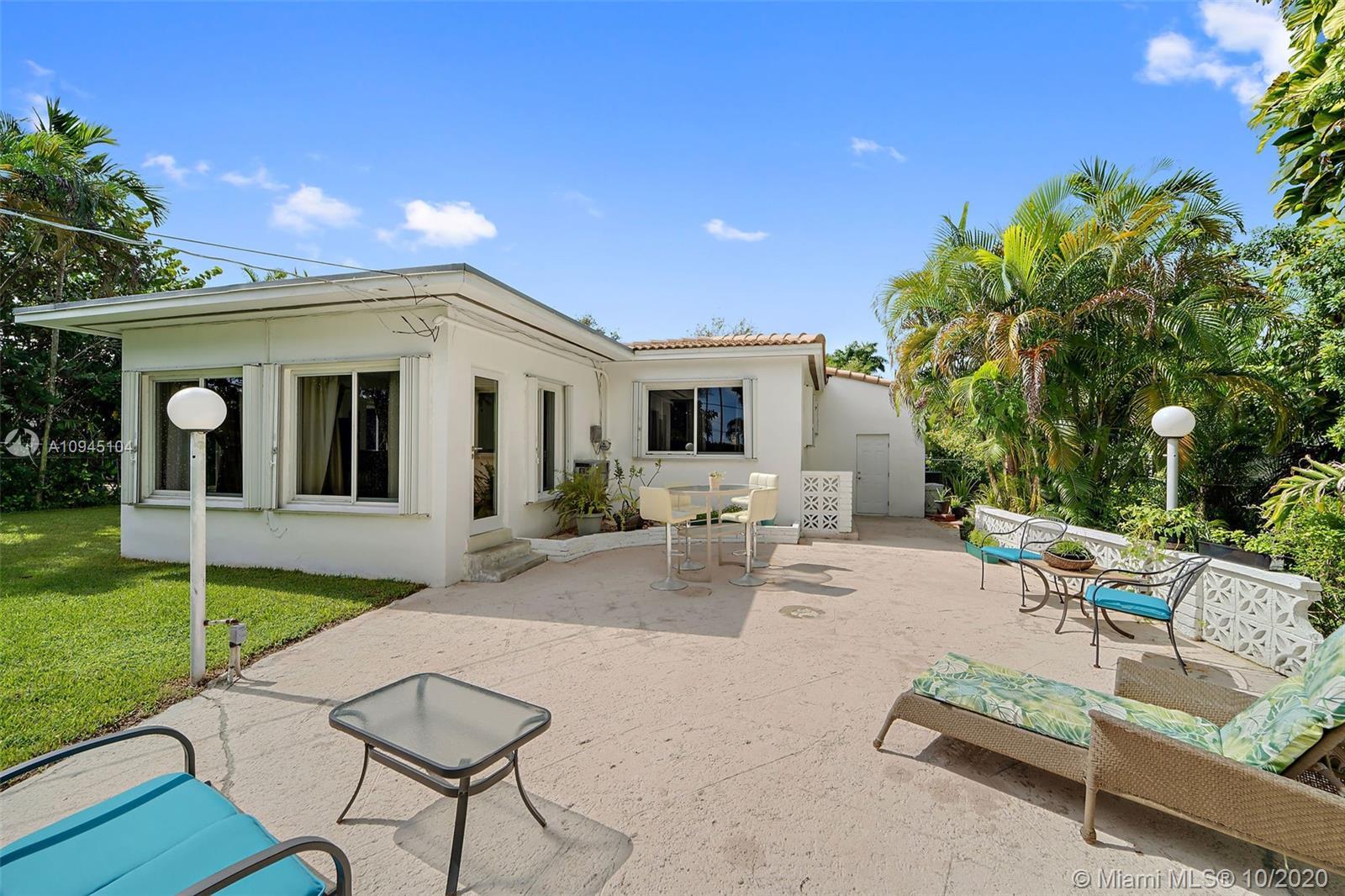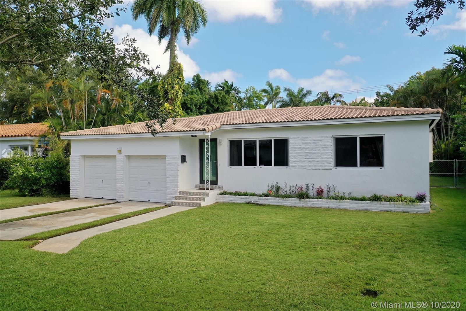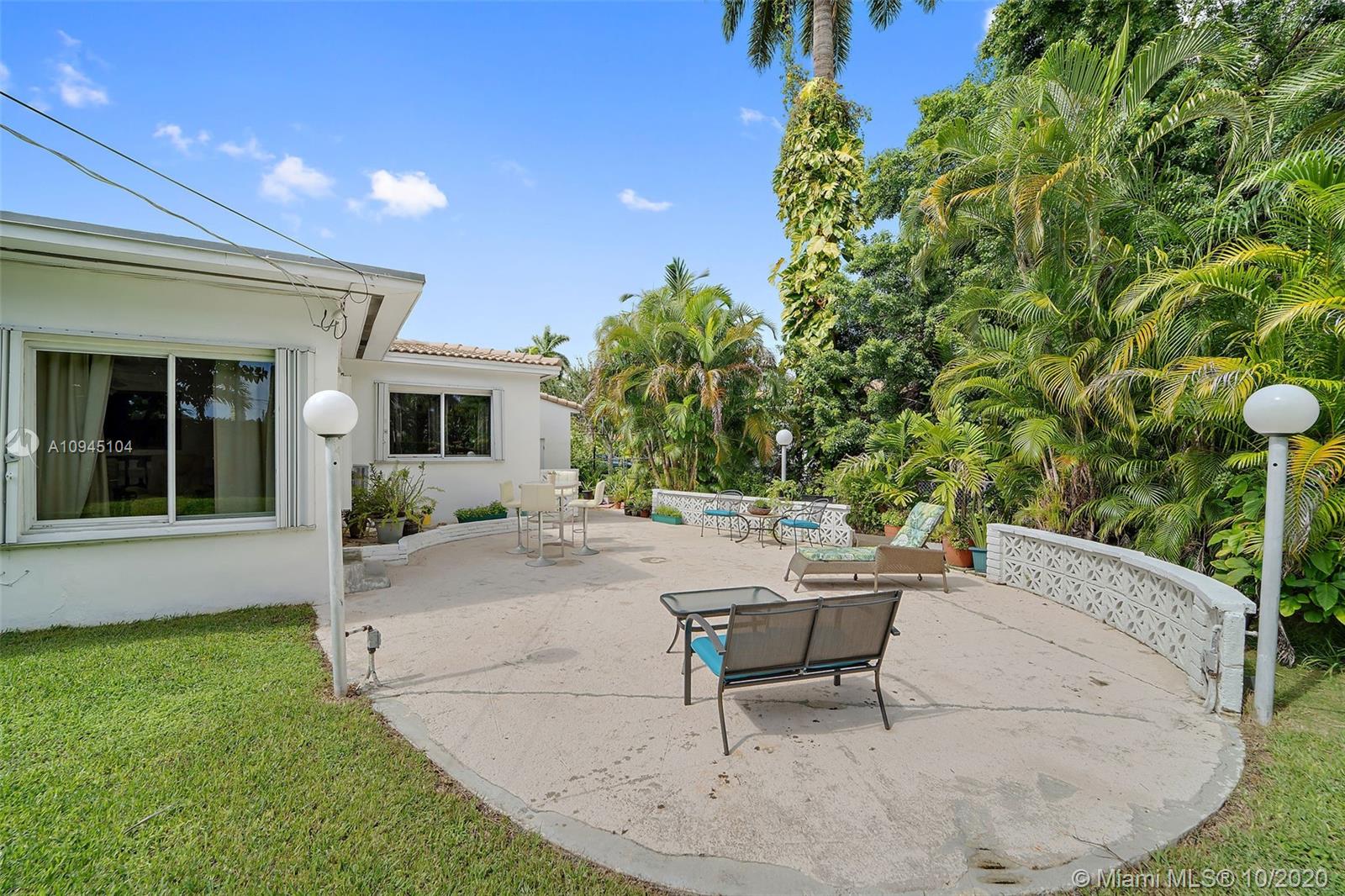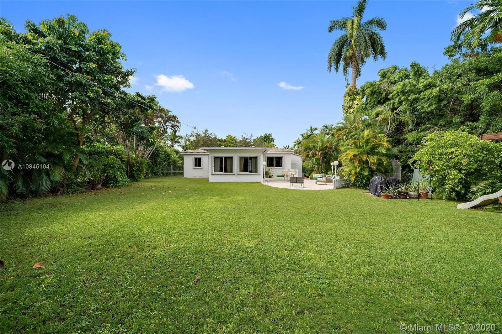 Lovely home located in the Village's best kept secret neighborhood of red hot Miami Shores Village! This home was built in 1950 with period detailing + a HUGE backyard! The backyard equipped w/ oversized oval-shaped patio adjacent to the home's expansive green space. Plenty of room to enjoy the South Florida weather all year round. The enlarged family room adjacent to the kitchen has terrazzo flooring + large format windows. This living space has an abundance of natural light overlooking the backyard & patio deck. The home's floor plan is a desirable 3-BR split + an attached wood beamed 2-car garage that has loft style storage. This home is a must see for those seeking the family oriented Miami Shores lifestyle. Full amenity Village in family-driven community. Great location in Miami!