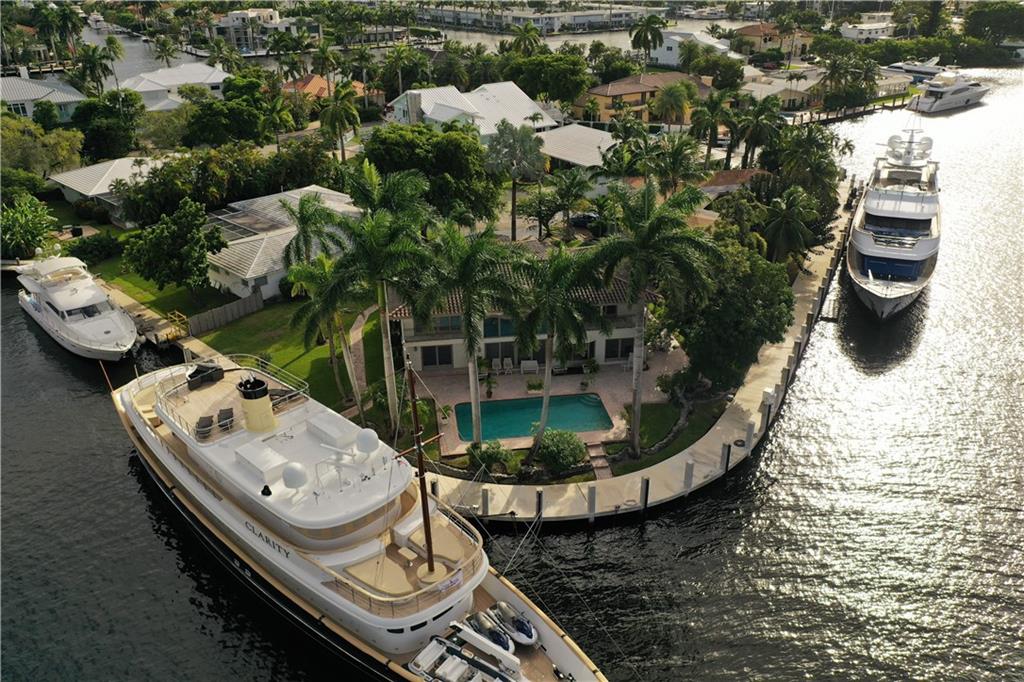 Rarely available sunrise key point lot with over 220 feet of water frontage and the ability to dock multiple mega yachts. Brand new seawall caps and concrete dock. Amazing potential to renovate or build. Direct northeast views of middle river.