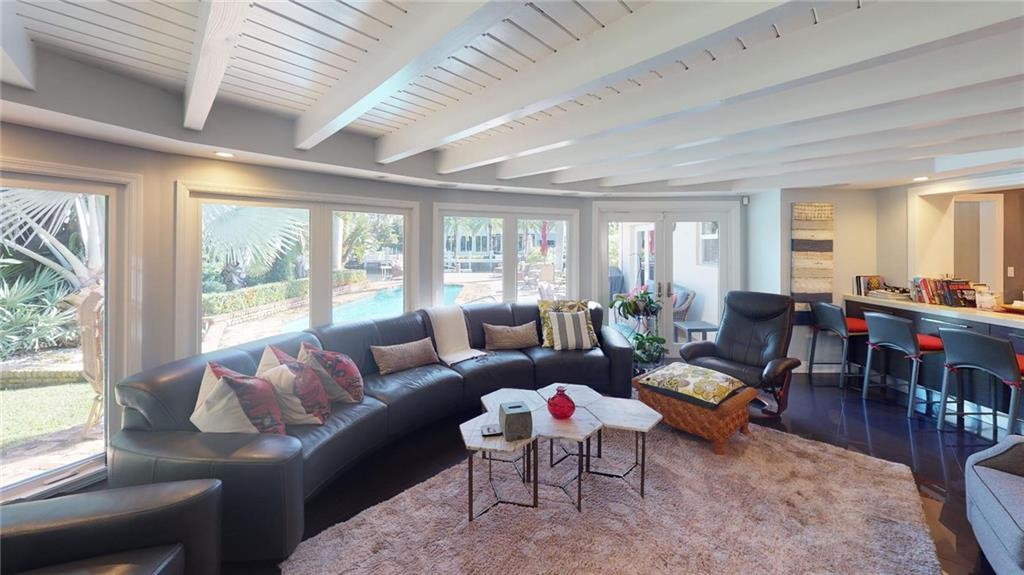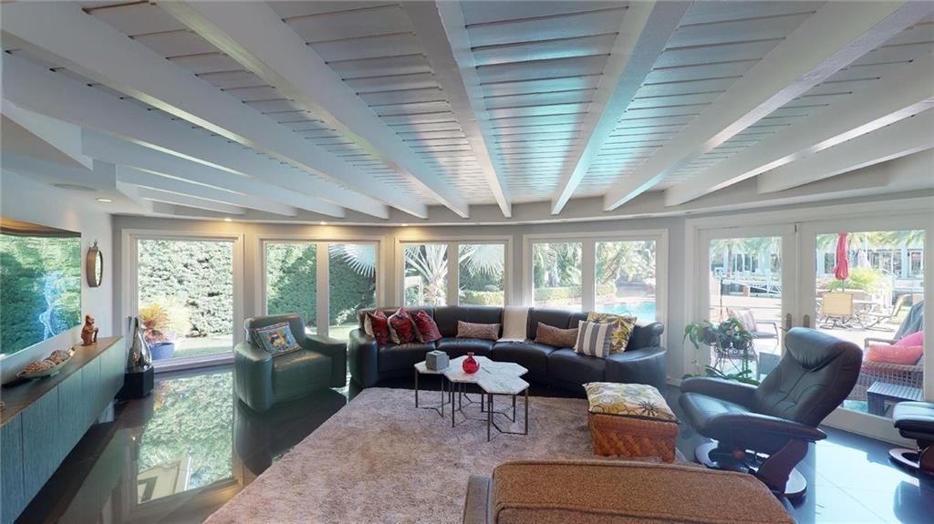 Designer turnkey furnished, one story waterfront home in most prestigious Seven Isles Neighborhood. Location is a boater's dream featuring 100ft on water with close proximity to the Ocean. The home features wonderful outdoor landscaping, a new heated salt water pool and is great for entertaining. Walk to Las Olas, beaches, restaurants and shopping. Exquisitely renovated, this home has porcelain and wood floors throughout, back-lit onyx bar with wine storage, wood burning fireplace, spacious designer kitchen, quartz counter tops, Italian cabinetry and highest quality finishes with custom details. Oversized garage with ability to park 3 vehicles. Home is currently rented and also makes for a great investment opportunity. Tenant occupied until May 1st, 2022. showings only w/advance notice.