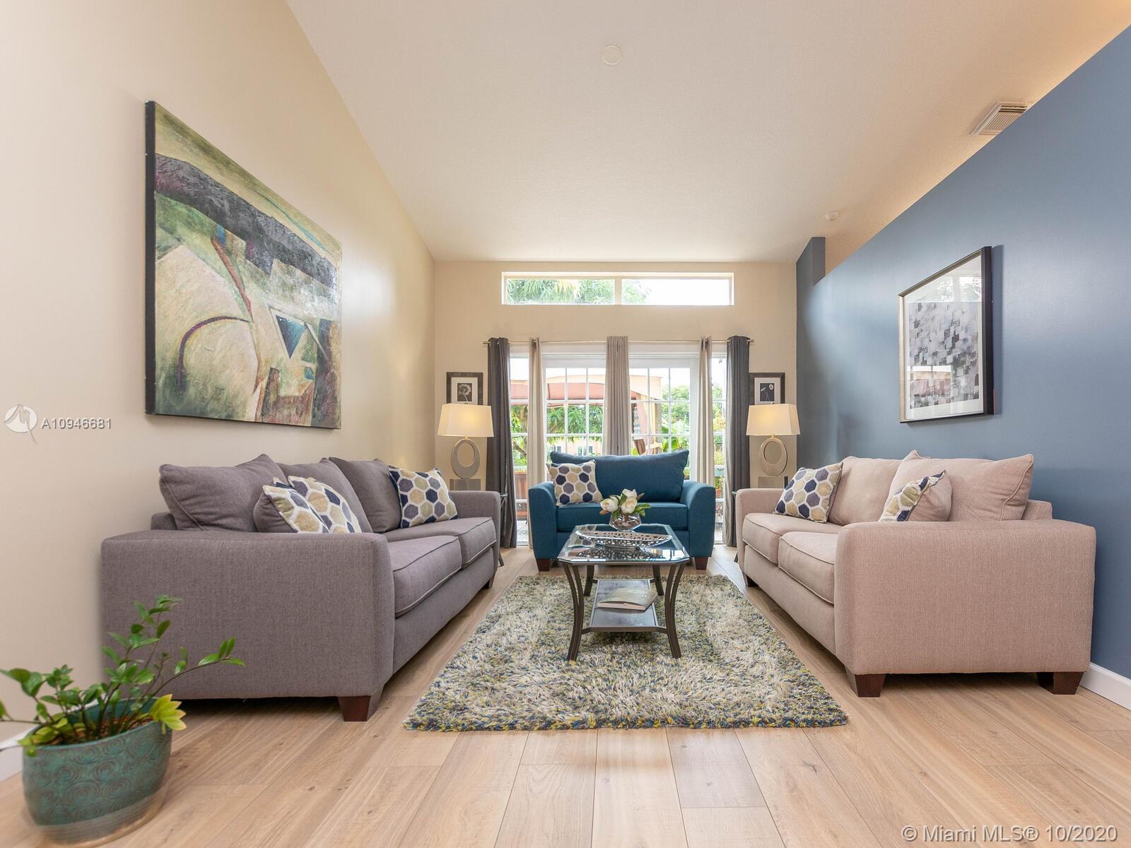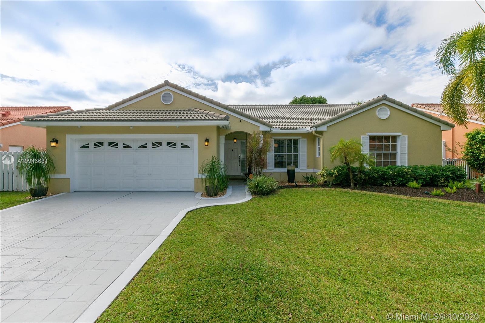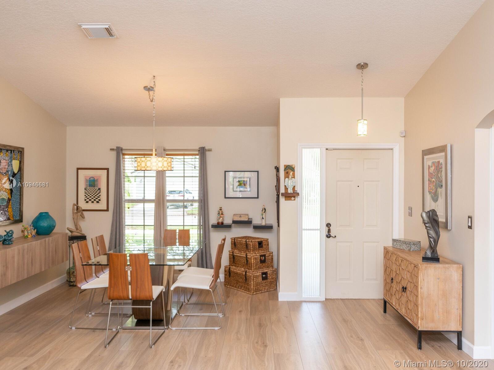 Stunning water front home in the quiet Trilogy neighborhood in Miramar. This modern updated home features 3 bedrooms, 2 fully upgraded bathrooms, updated wooden kitchen cabintets w/granite countertops and stainlesss steel appliances, formal dining room opens to formal living and 2 car garage. The bathrooms have top of the line fixtures and fittings, floors have water resistant laminate throughout the house. The hugh backyard is paved and has fruit/mango trees and healthy tropical plants which gives a tropical feel while enjoying the spectular view of the lake. Home is freshly painted and just waiting for the perfect family. Roof is approximately 8 years old. Sellers are taking their Washer and Dryer. You have to see this property. HOA is only $60 per month.