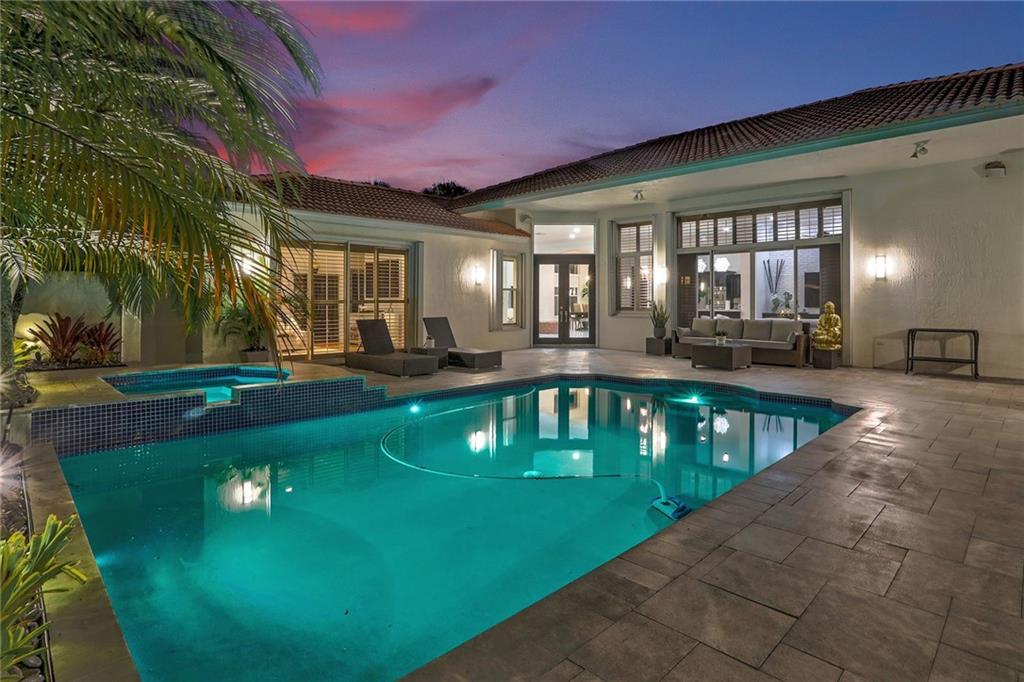 Stunning courtyard home located in the upscale gated community of The Landings. You will defiantly be WOWed! This 5/3/1 pool home has a detached bedroom/bathroom that offers so many flexible living areas that cater to the Florida lifestyle. Over 100k of specular upgrades!! Enjoy beautiful lighting fixtures, neutral oversized porcelain tile and wood flooring, master bathroom has been completely remodeled with free standing tub, kitchen is a chef's dream, plantation shutters, large windows throughout the home bring in so much natural light and offers views of courtyard and pool area with lush tropical landscaping. 3 full baths and 1/2 have been all been remodeled to the max!! In addition the home has all according shudders! This home has it all and does not disappoint!