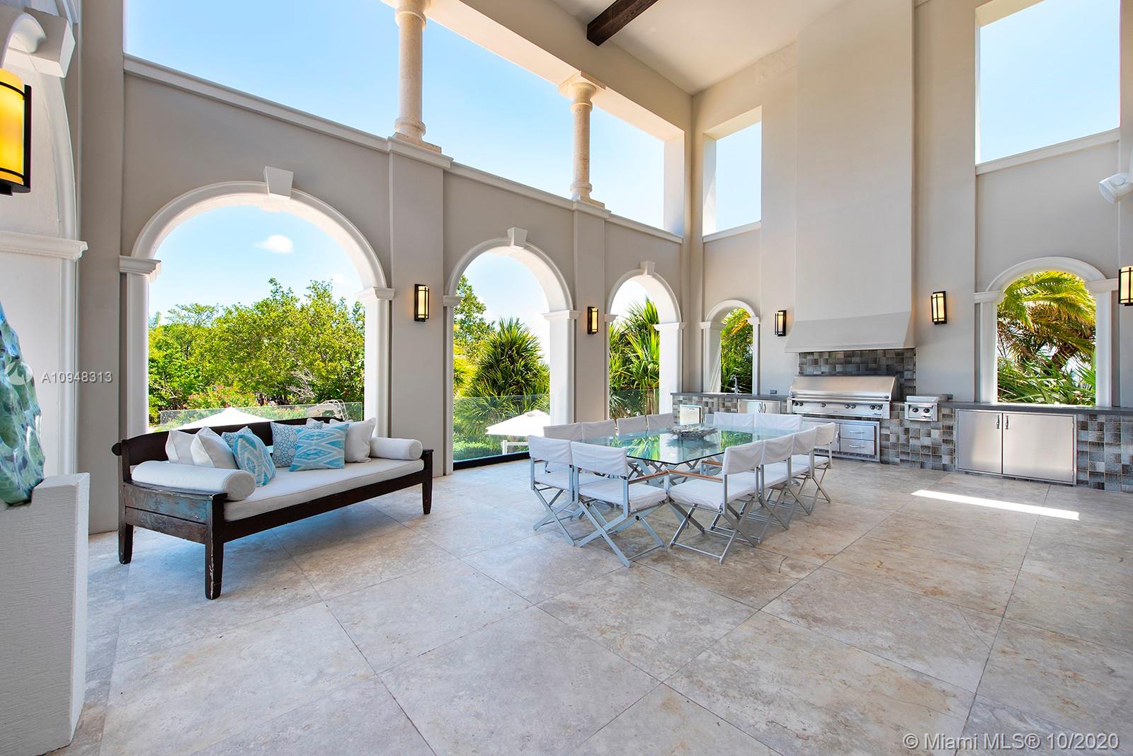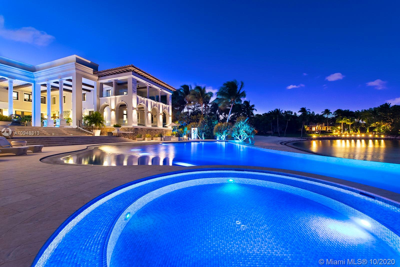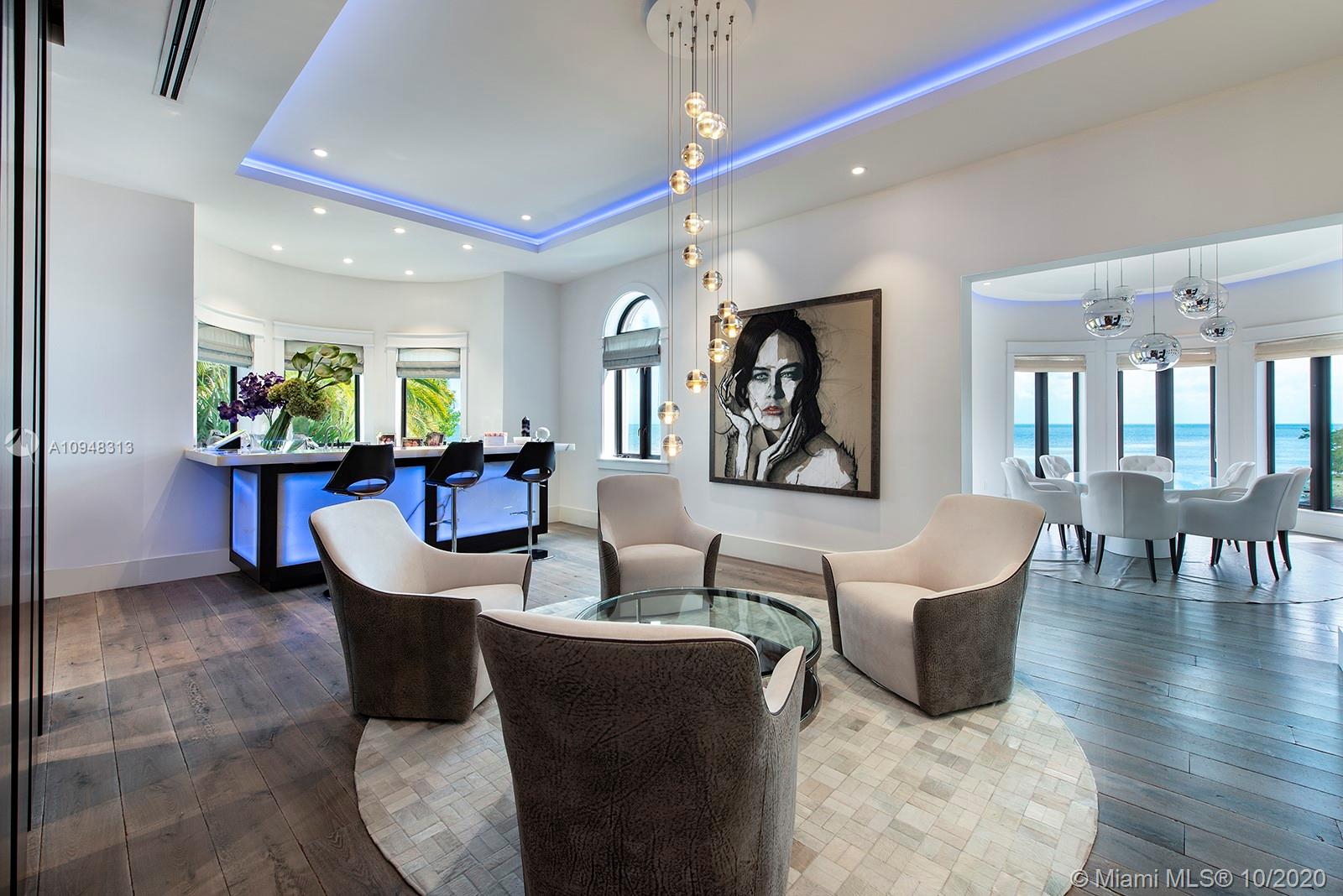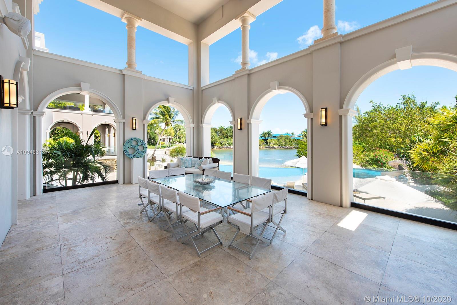Paradise island estate complete with your very own sandy beach in the most exclusive gated community, Tahiti Beach. Find your secluded luxury lifestyle here. Located on a 1.5 acre peninsula with over 530 feet of open bay views. One of only 26 residences on this private island. Mesmerizing unobstructed views from nearly every corner. Nothing short of grand, the resort style backyard features marble throughout and cathedral inspired covered terraces equipped to entertain. 10 bedrooms, 10.5 bathrooms, designed by architect Ramon Pacheco and completely renovated in 2016. Soaring ceilings, elevator, fully loaded theater, heated pool. Your paradise awaits.