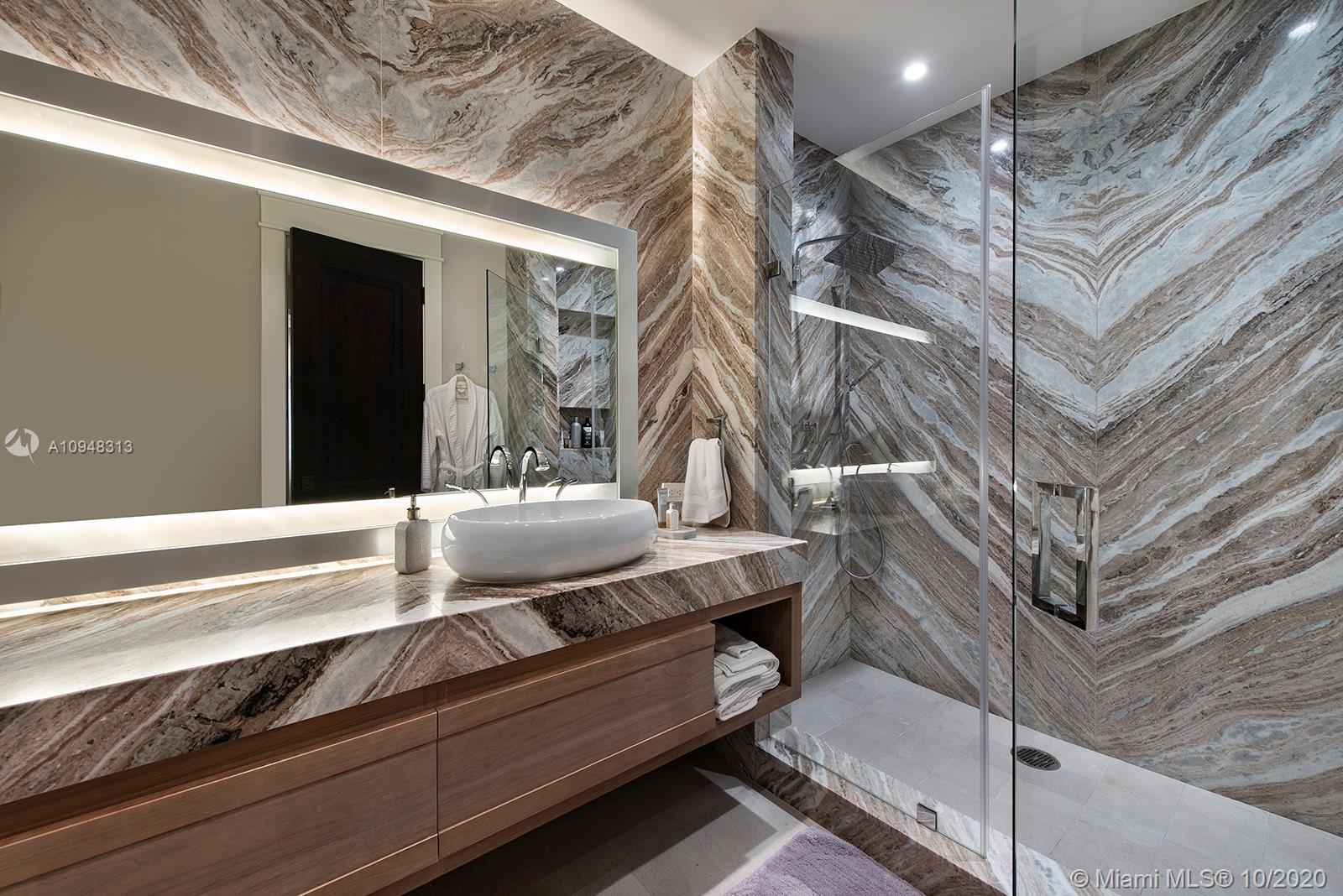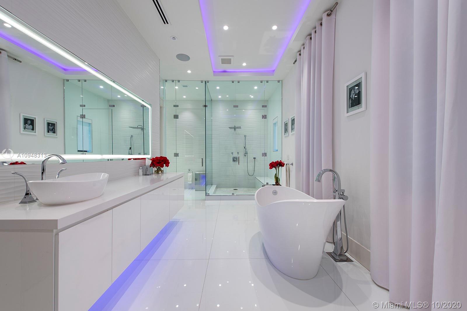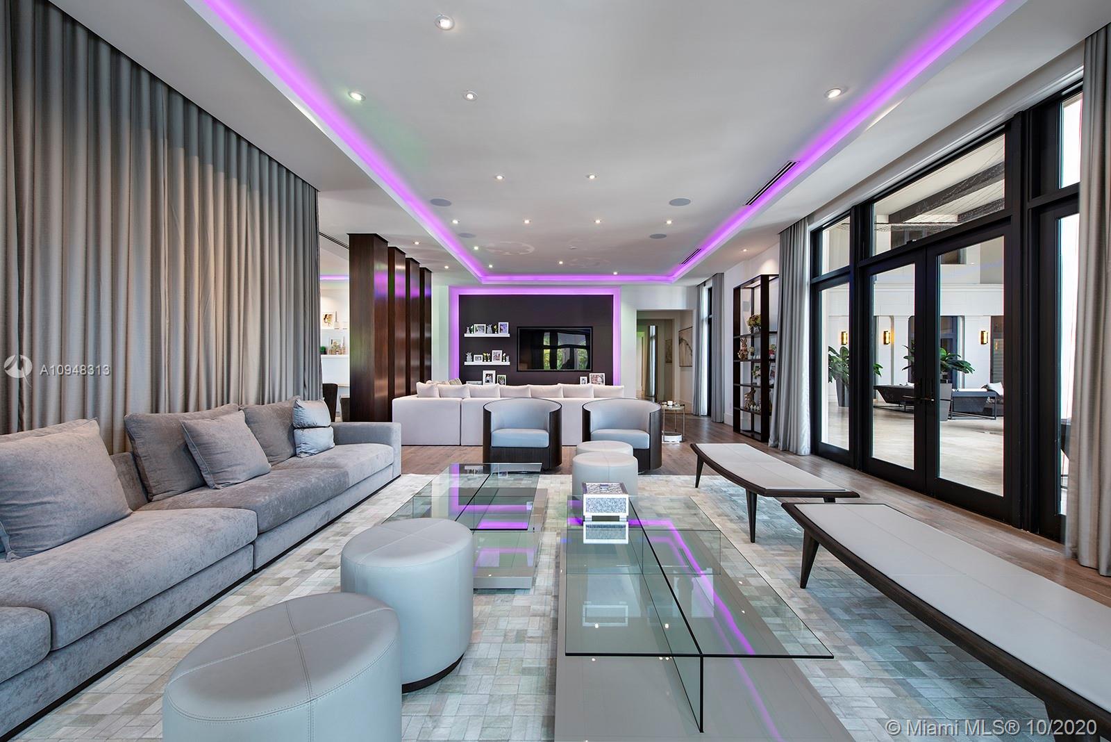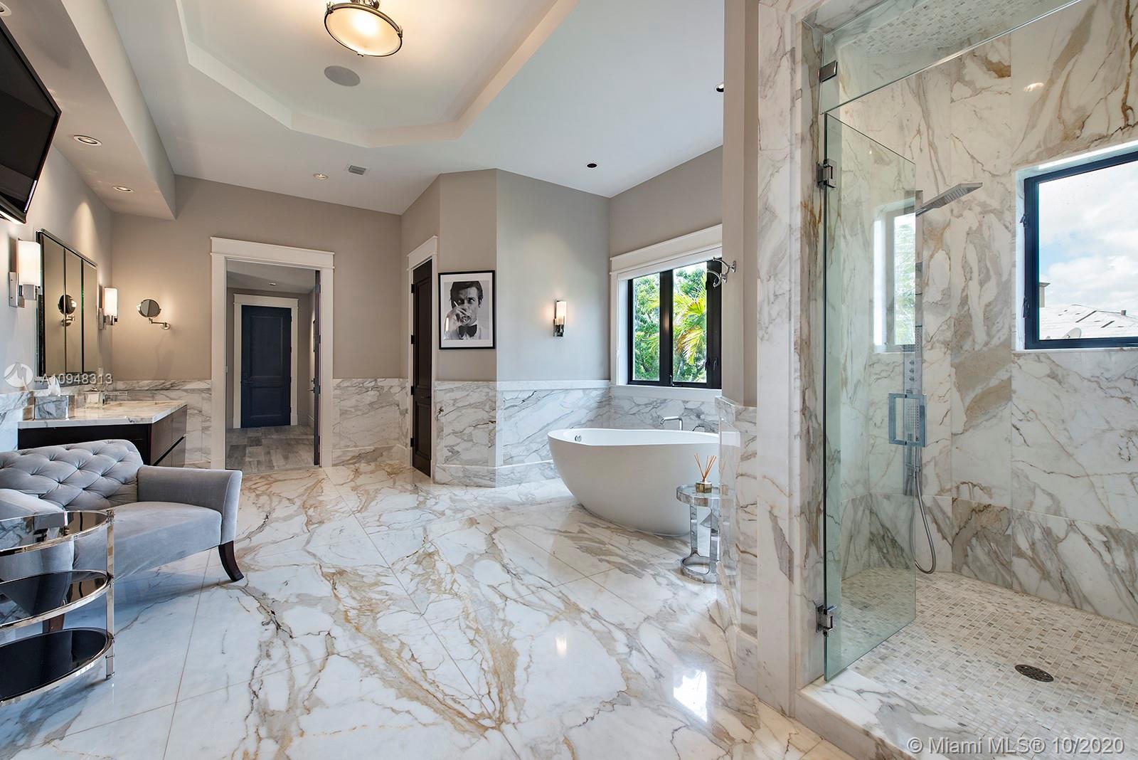 Paradise island estate complete with your very own sandy beach in the most exclusive gated community, Tahiti Beach. Find your secluded luxury lifestyle here. Located on a 1.5 acre peninsula with over 530 feet of open bay views. One of only 26 residences on this private island. Mesmerizing unobstructed views from nearly every corner. Nothing short of grand, the resort style backyard features marble throughout and cathedral inspired covered terraces equipped to entertain. 10 bedrooms, 10.5 bathrooms, designed by architect Ramon Pacheco and completely renovated in 2016. Soaring ceilings, elevator, fully loaded theater, heated pool. Your paradise awaits.