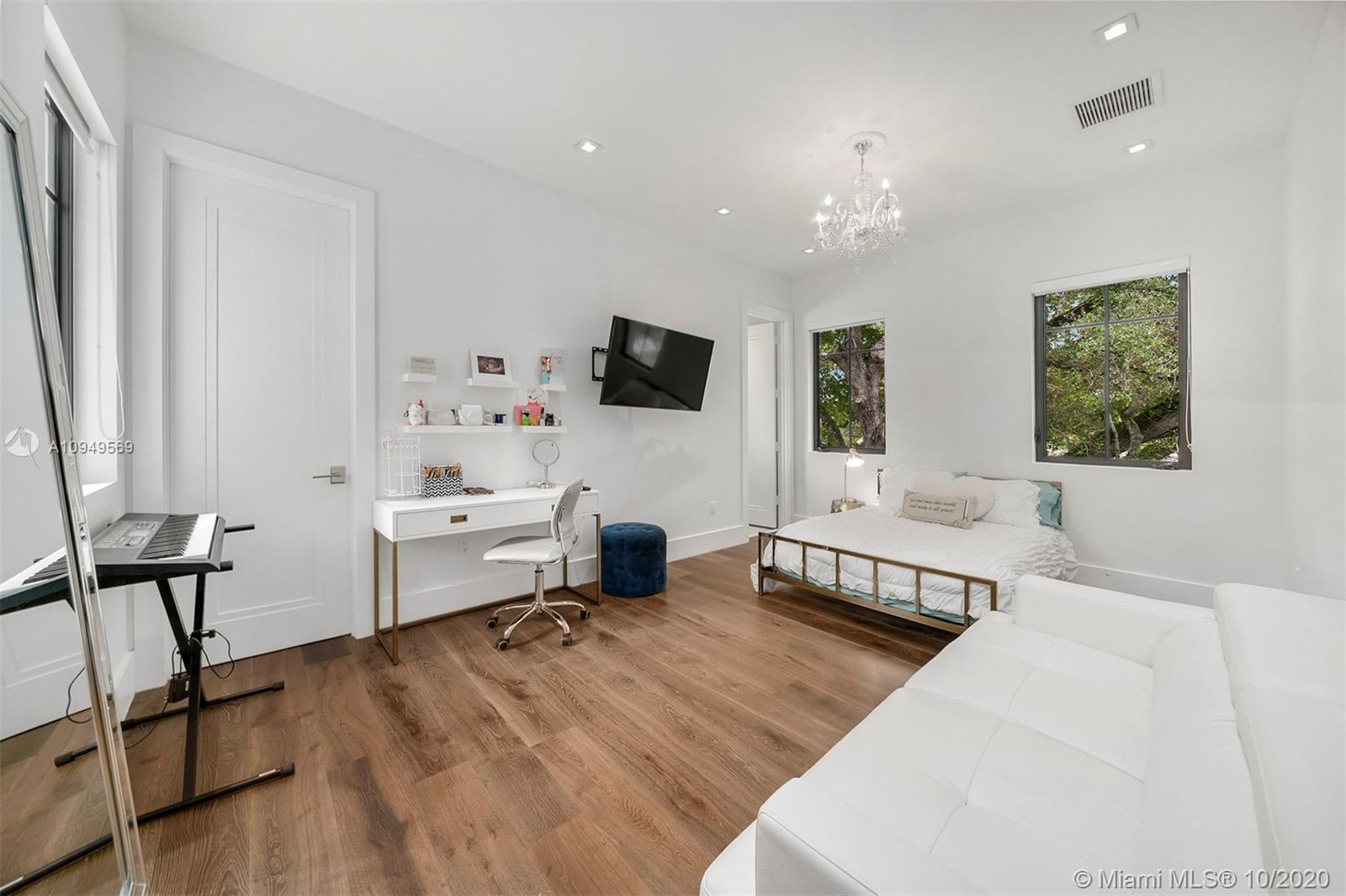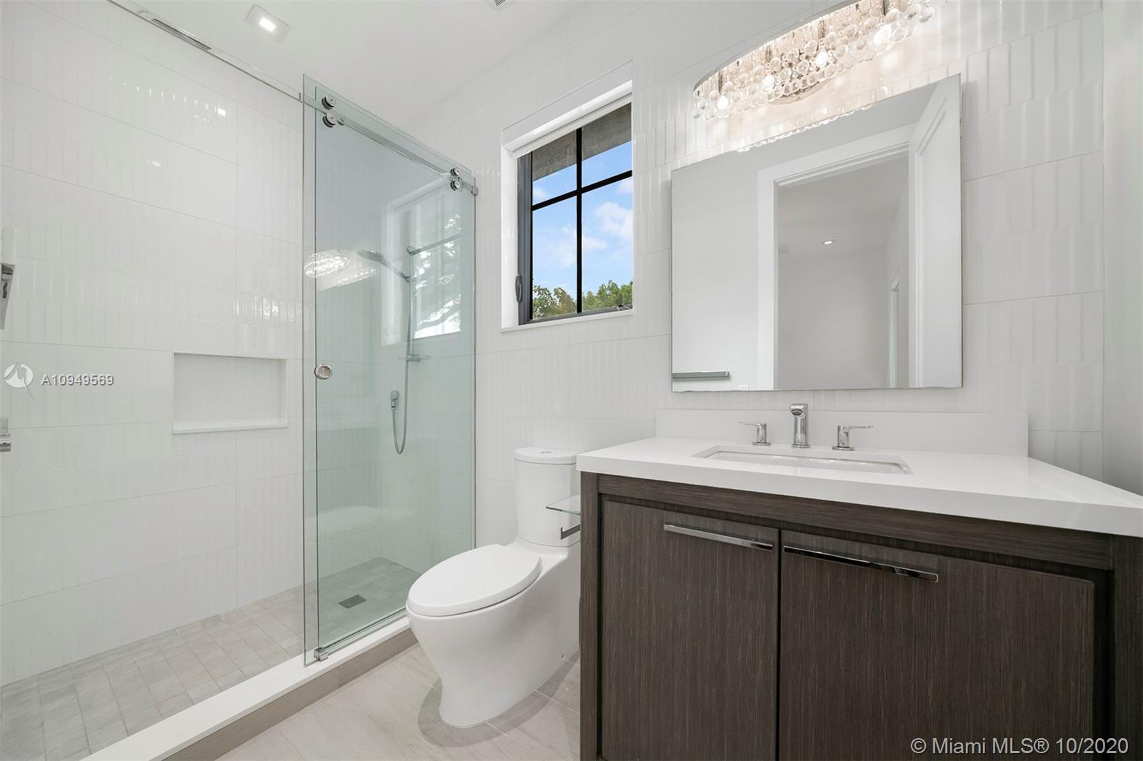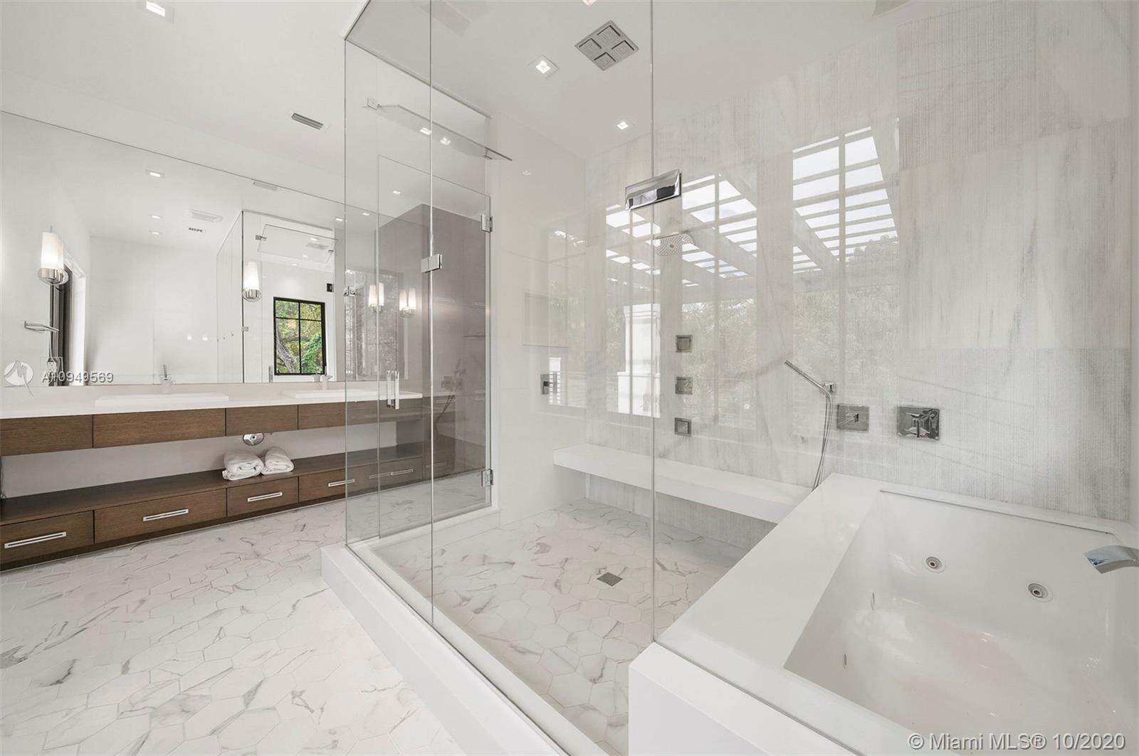 Impeccable and stylish residence with bright, open living space ideally located in beautiful Coral Gables. This 3,745 Sq. Ft. home with five bedrooms and five and a half bathrooms is surrounded by a lush green landscape, and blends the indoors and outdoors with a covered screen patio and summer kitchen. The main suite is a retreat on its own with a marvelous spa bathroom, waterfall shower with jets, and a chromotherapy tub. Additional features include a gourmet kitchen with high-end appliances and white quartz countertops, saltwater pool with a waterfall, terrace with a pergola, and gym. The residence is truly remarkable, inside and out.
