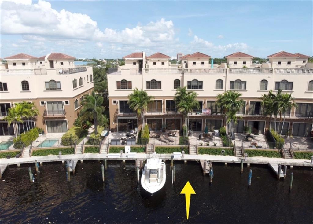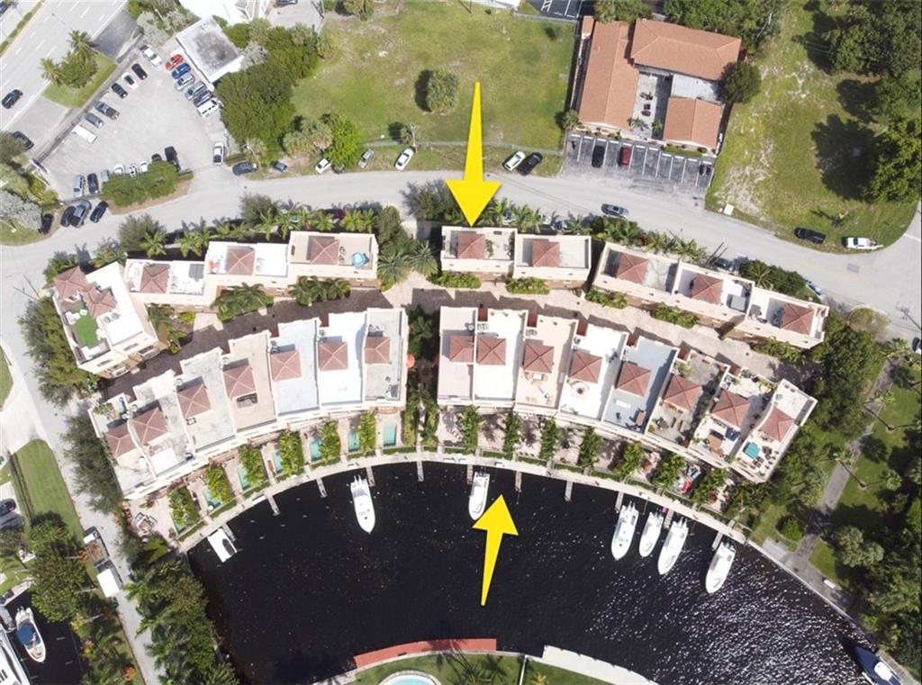 This 4 Story Corner Townhouse is a Boaters Dream with its own Dock for up to a max 35’ boat. Ocean Access with no fixed bridges. As you enter the townhouse from the garage or the front door you have a small foyer that leads to a bedroom with its own bathroom and walk in closet. Next to the stairs in the foyer is also the elevator that stops on all floors as well as the roof top terrace. On the second floor of the townhouse you have the living room, dining area, kitchen, laundry room, pantry and half a bathroom. As you walk up the stairs or take the elevator to the 3rd floor, you will find another bedroom with full bathroom and walk in closet as well as the master bedroom with walk in closet and full bathroom as well. Sprinklers on all 3 floors. No water views. Click on Virtual Tour.