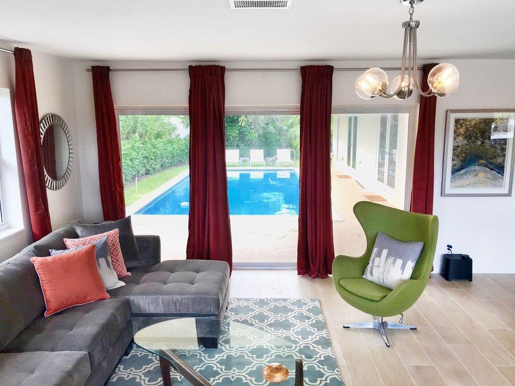 Spectacular down to the studs renovation. Gated Bal Harbor community. Huge Living Room/ Dining Room/ Open Kitchen Plan. 3 Bedrooms all facing extra large pool. Huge private lot with mature trees and expansive lawn. Impact windows and doors, new kitchen cabinets, appliances, counters, wood ceramic floors throughout, 2 full baths, one 1/2 bath. Sleek, modern, and warm. All new systems. Generator. Bonus room can be used as an office. House has permit set to make 5 BR/ 4 Bath one story and is ready to go, should you need to expand. Exceptional value in this perfect neighborhood, east of US1 and close to the beach and all of FTL finest restaurants and shops. Wont last. Property has operated as Airbnb, generates high income, can be sold with all furnisihings at extra cost. Perfect 1031exchange