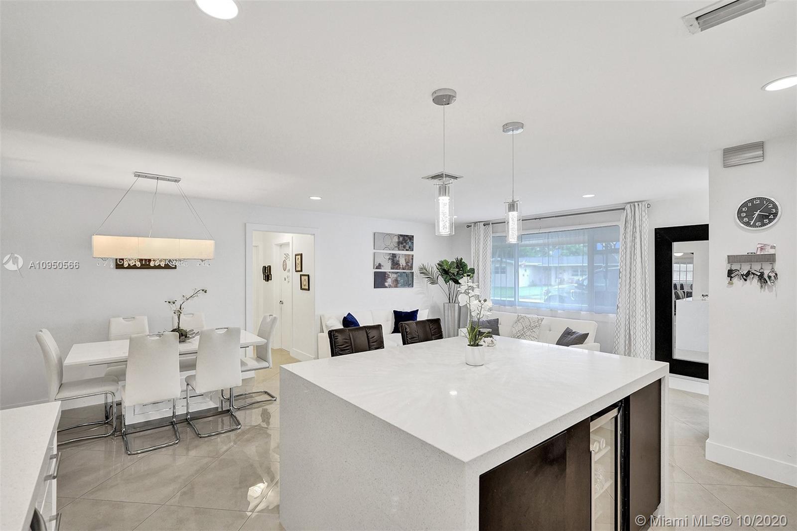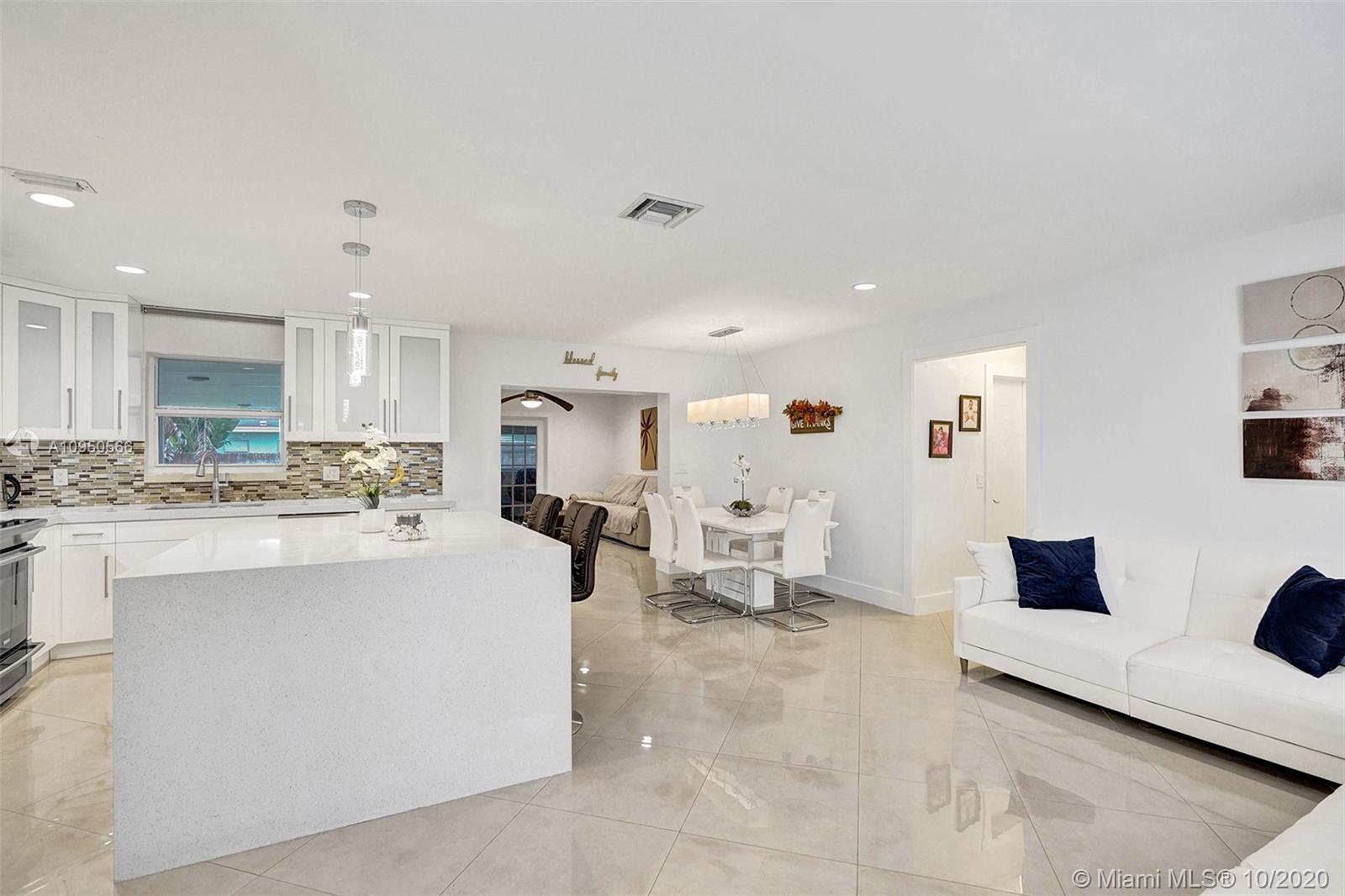 Come fall in love with this Ultra-Modern 3/2 plus built-in Library! This Stunning Home was recently remodeled with over $75,000 in gorgeous custom upgrades! Inside features a bright & spacious floor plan with polished marble floors. The Kitchen is Spectacular w/quartz counter-tops, and a gorgeous Water-Fall Island with an Open Concept layout. The Family Room has a custom built-in wall unit with impressive French doors that open to a Modern Family Library that is perfect for work and play. The Master Bedroom is Dreamy with impressive 36X60 Marble Floors, an Elegant Master Bath, and a walk-in closet. All windows and doors are Impact Resistant, and the house is wired for a back-up generator. A/C is new. The Backyard is oversized with a huge, covered Patio. Large Circular driveway for 6 cars.