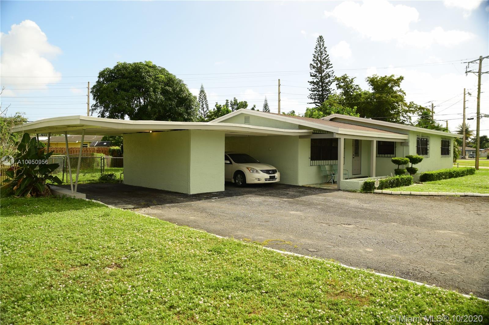 Bring all offers to this oversized corner lot home that includes 3 bedrooms and 2 bathrooms with an eat-in kitchen and dining area. This home is being sold AS IS and is ready for the right buyer to make it their own. The property has 2 covered car ports with ample parking to fit up to 6 cars. The backyard is fenced-in and features a huge fruit tree to provide maximum shade from the Florida heat. You'll also enjoy the open patio area for entertaining guests or just grilling for the family. Great opportunity to update & make it your own and/or to purchase as a rental investment property as there are no HOA or rental restrictions. SELLER IS WILLING TO CONTRIBUTE UP TO $10K TOWARDS ANY NECESSARY REPAIRS/UPGRADES AT CLOSING.