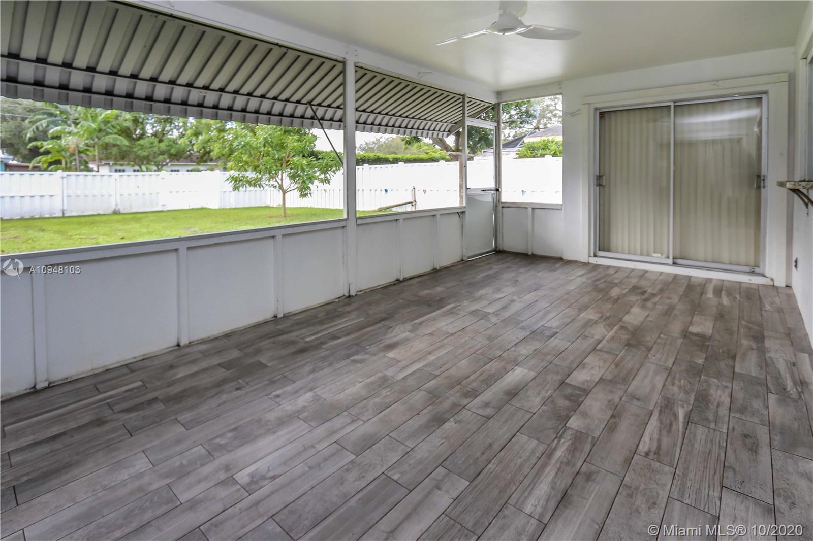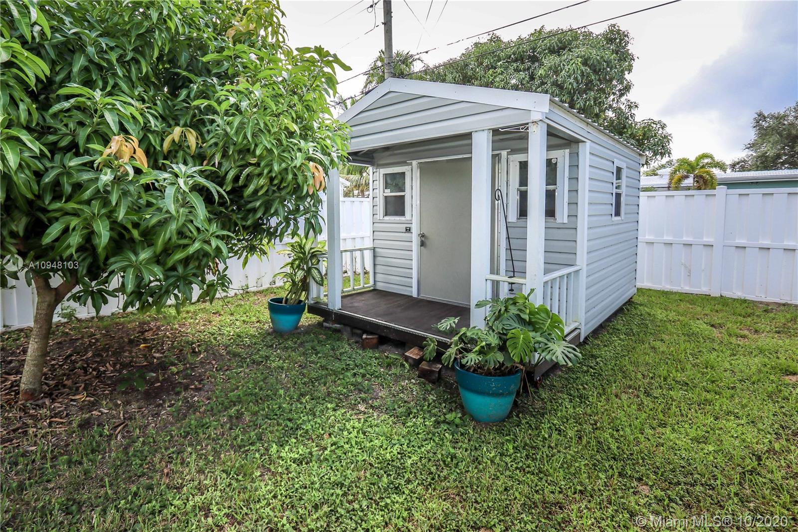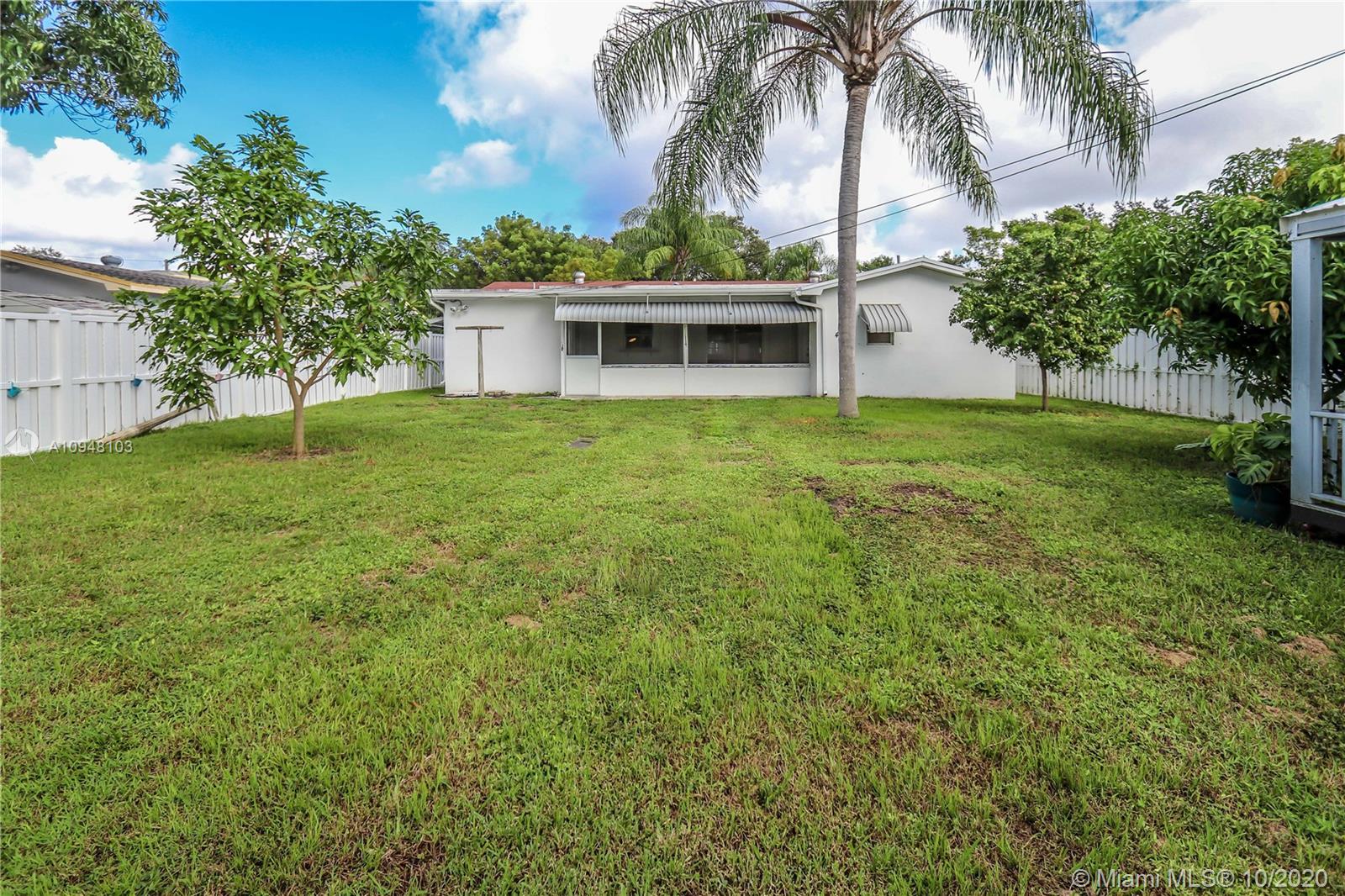 Beautifully totally updated 2 /2 Bath, Den could be a 3rd Bedroom, NEW ROOF COMING SOON, 1 car garage. Fully fenced in Backyard, PVC fence, large shed, ROOM FOR A POOL. Home features a Spacious updated Kitchen, Granite countertops, granite top island, Stainless Steel appliances incl. wine cooler, plenty of cupboards, over the sink window passthrough to patio area. Updated Master BR has walk in closet & access to screened in back patio. Master Bedroom/bath step in shower, Cabana bath back patio. Updated Guest bathroom. Large screened in back patio has new tile flooring & sliding glass door access from 3 areas of home. Laundry in garage. Tile throughout. Impact Front & Garage Door, Hurricane shutters. Roof 2016. No Dishwasher. Carie & Cotton Candy Mango & Starfruit TreeS