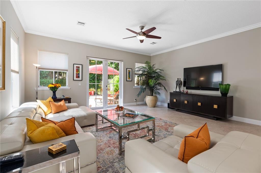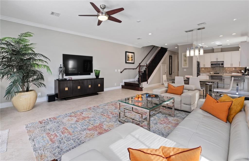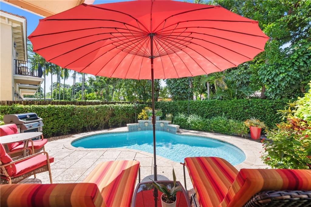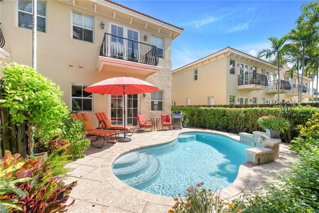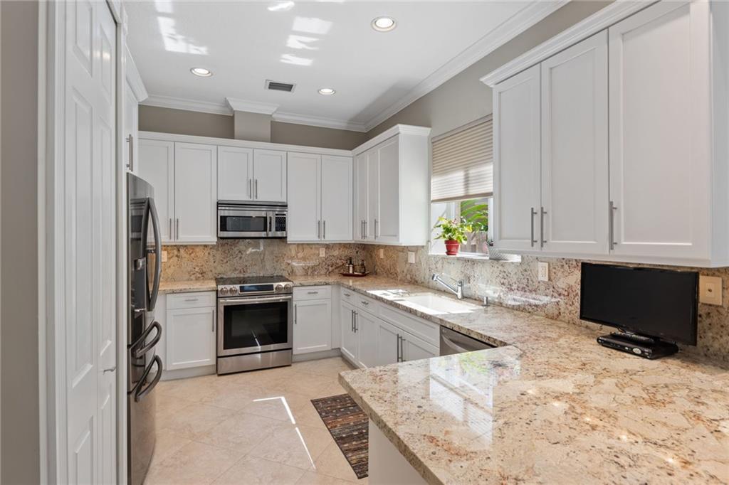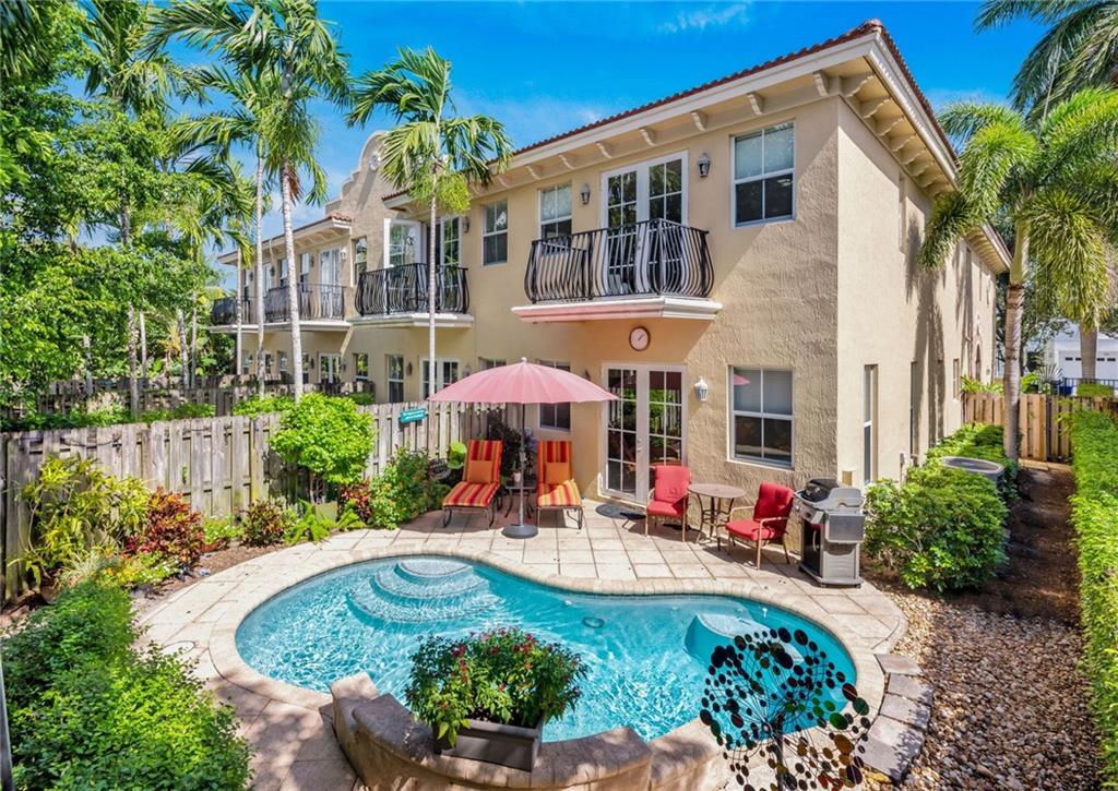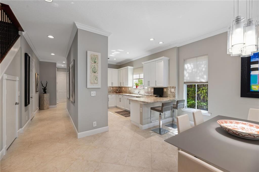 Villa Valentina Townhouse - 3BR/2.5BA contemporary with numerous custom finishes. Townhouse has 10 ft ceilings in an open floor plan boasting a Chef's kitchen, granite throughout, SS appliances, hardwood cabinetry. Living area overlooks private pool and lush landscaping. 2nd floor has oversized master suite with 2 walk in closets and glamor bath. 2 second floor bedrooms are also oversized. A dedicated laundry room is on first floor. Overhead storage professionally installed in garage. Owned home water purification system. Ideal bright corner unit with gated entry. High impact doors and windows. Entire home freshly painted. Close to shopping, beach and Holiday Park.
