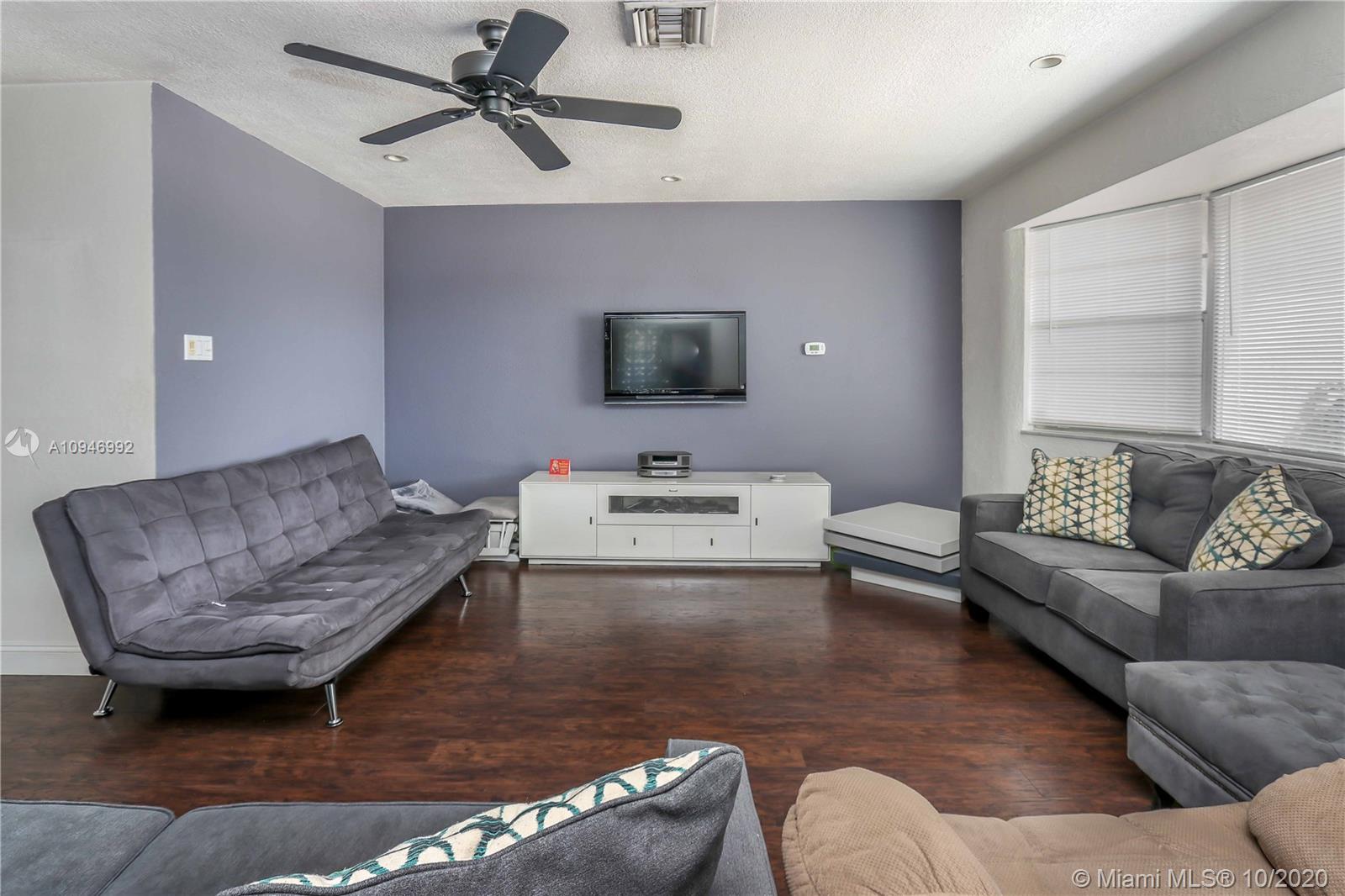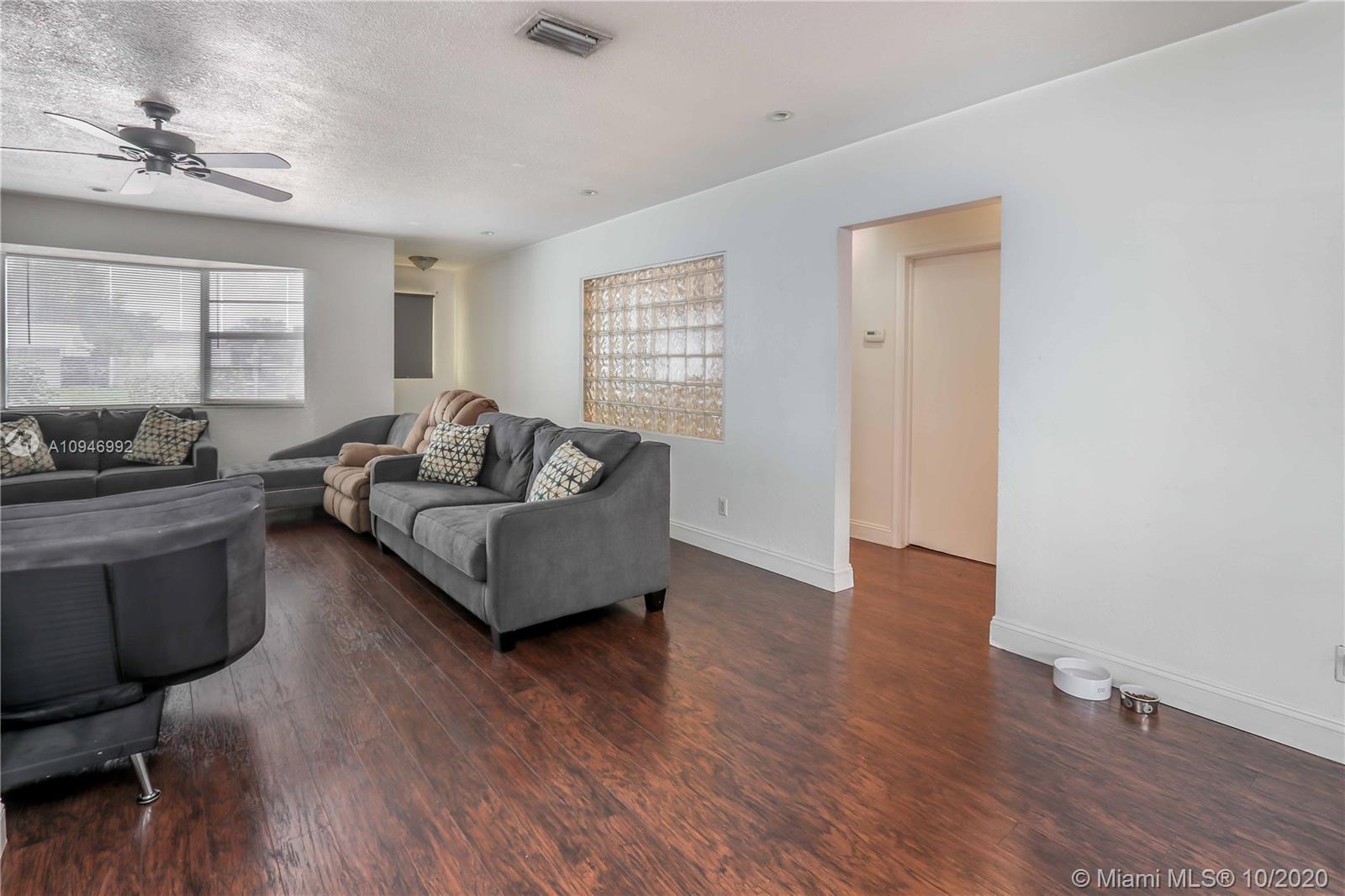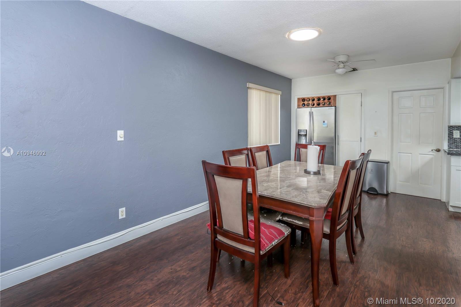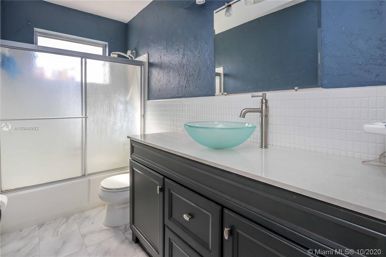 Beautiful 3 BR, 2 BA, 1 car garage, salt water Pool. Home features spacious kitchen w/granite countertops, SS appliances/pass thru window to pool. Large formal dining room & spacious living room w/bay window & sliding glass doors access to pool & patio. Large Master BR has walk in closet, sliding glass door to pool/cabana bathroom access to pool. Large Screened in Heated salt water pool / patio area perfect for entertaining. Updated guest bath. Laundry room has plenty of storage, utility sink & newer washer & new dryer. Circular Brick paver driveway & front porch. Tankless water heater. Hurricane panels. Mango, lemon & banana tree. Completely fenced in backyard w/large large shed. Auto Garage door opener w/ window a/c. Tenant Occupied need notice for showings they will be moving upon sale