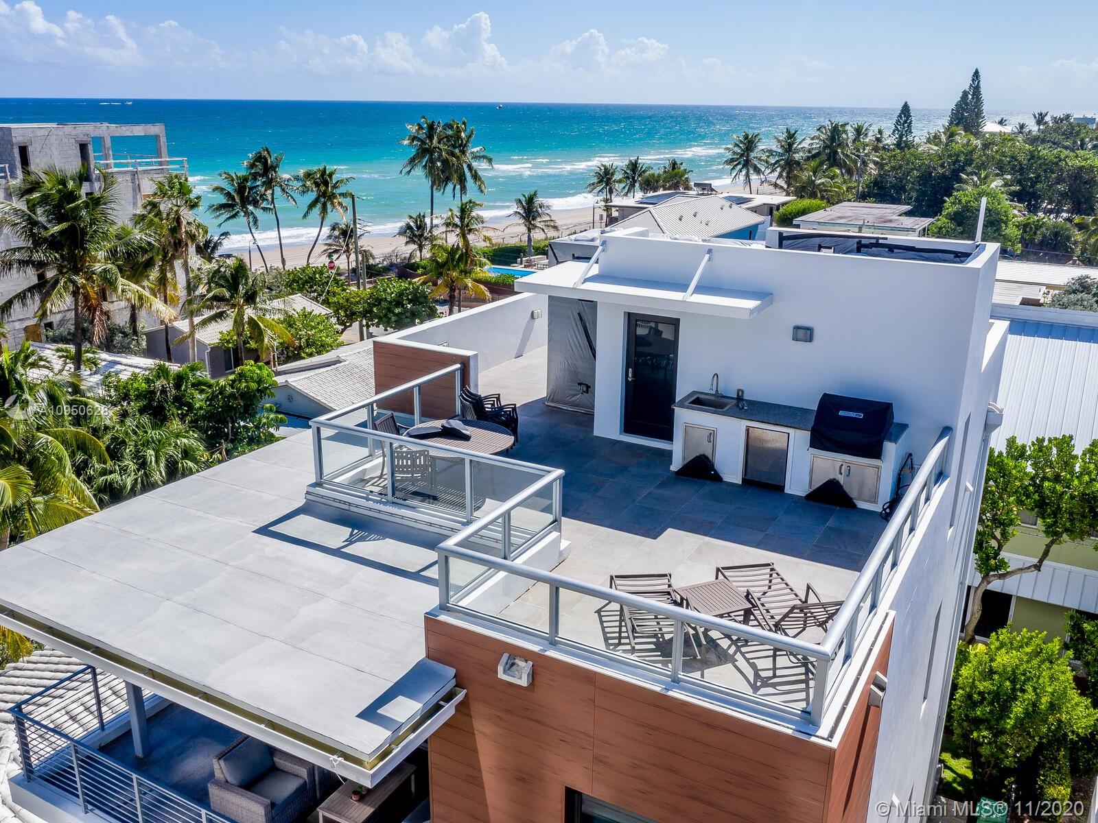 Stunning contemporary 4 Bed 3.5 Bath Tri-Level Beach home with direct ocean views. This 3,000+ sf home w/ elevator and two car garage is just yards away from the ocean. Top of the line features include: Gourmet kitchen showcasing Venetta Cucina cabinetry, Thermador gas range and Sub Zero refrigerator; Integrated smart home w/ full security system, individually zoned temperature controlled bedrooms, Sonos Sound System, Hunter Douglas automated window treatments. Master suite features custom Armadi clad large walk-in closets and luxury en-suite with spa-like jacuzzi tub and shower. Open floor plan living space is highlighted by floor to ceiling sliders that open to lovely wrap around balcony, also accessible from master suite. A rooftop terrace offers stunning beach view and summer kitchen.