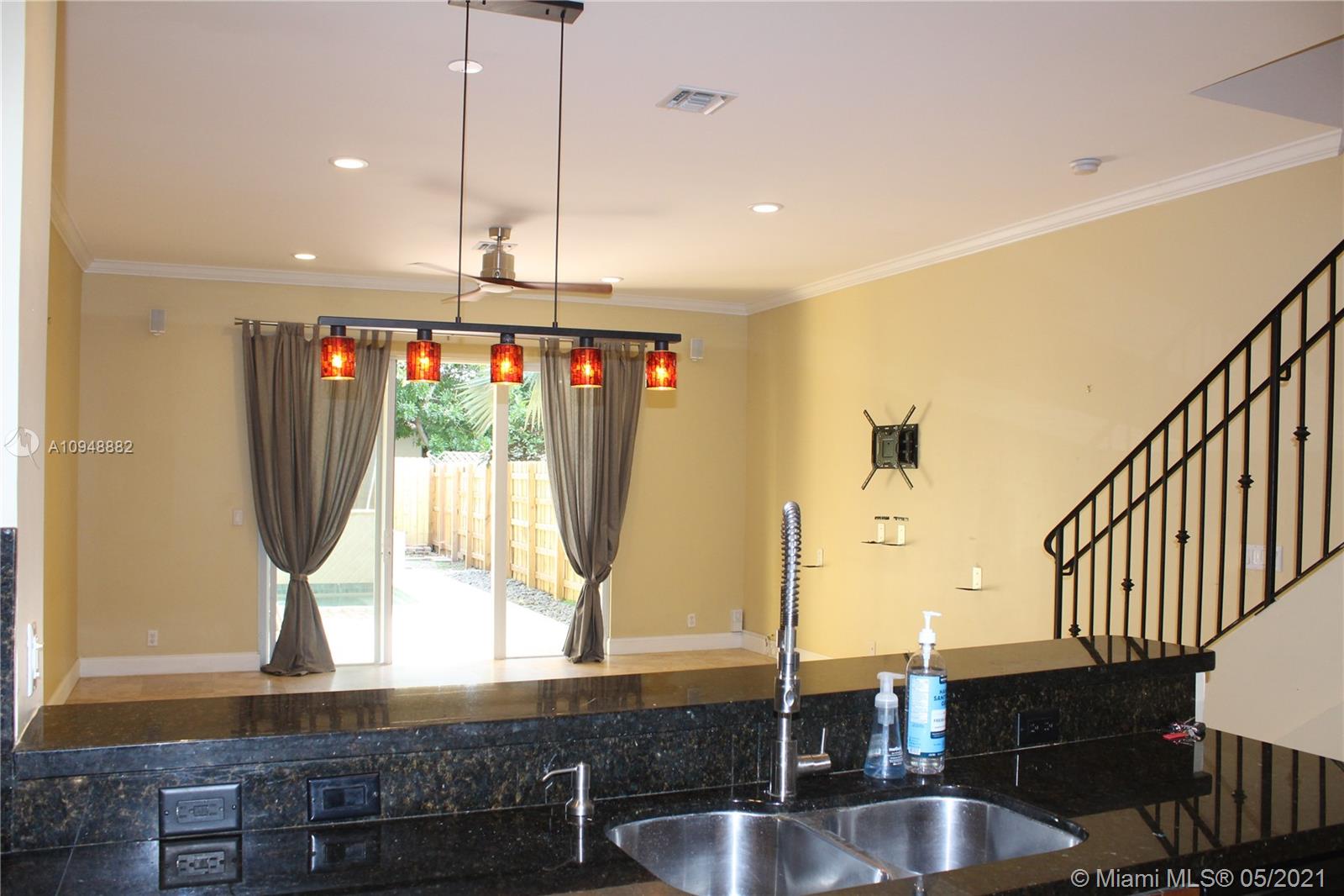 Lake Ridge fee simple 3/2.5 townhome with private pool and 1CG. Minutes from downtown Ft Lauderdale, Wilton Manors, beach and shopping. The home features marble floors throughout living area. Stunning kitchen with granite counters, stainless appliances, and counter seating. Impact windows/doors. Living room overlooks the tropical fenced backyard with HEATED splash pool. The upstairs master bedroom features a walk-in closet and spacious bathroom with dual sinks and separate tub/shower. Pet friendly.