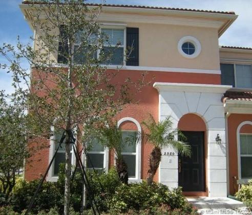 Beautiful Two-story Corner Townhouse for Sale! This spacious 2 car garage home is 1,848 sq. ft. It has 3 perfectly sized bedrooms and 2.5 bathrooms. Walk though the front door into a lovely foyer. The first floor layout consists of the living area, dining, kitchen, and half bath. All Bedrooms are located upstairs, along with the washer and dryer in the hallway. The Master Bedroom (with a walk-in closet) is large with plenty of space for a king size bed and a sitting area. This townhouse is located inside the quiet neighborhood of Mirabella. The community offers a community pool and playground. Enjoy the Lake while taking a stroll outside. Mirabella is in very close proximity to Miramar Pkwy, expressways, stores, and restaurants.