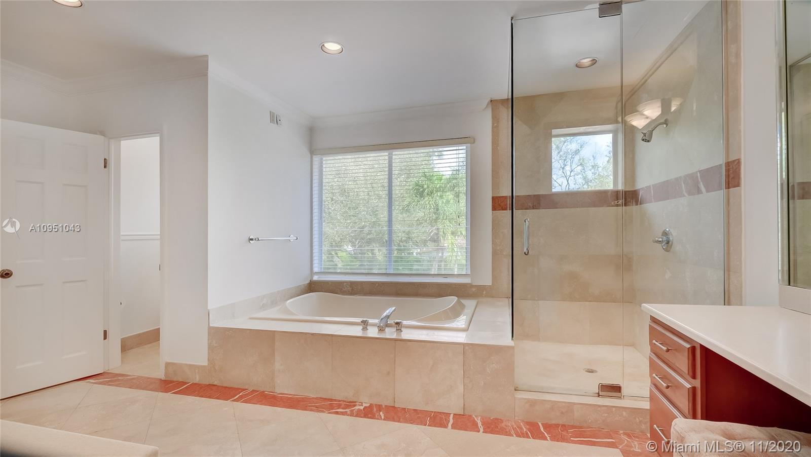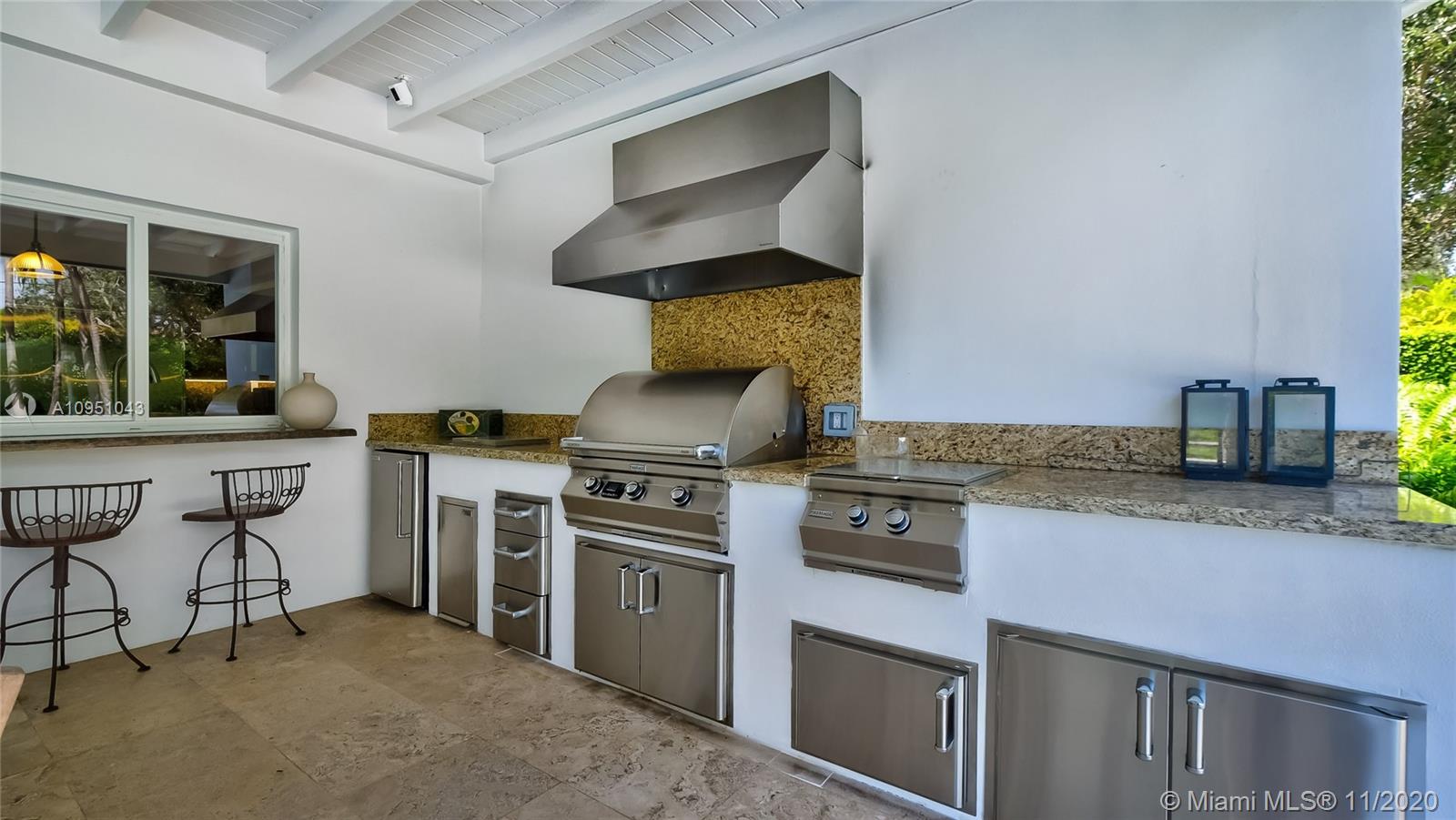 This stunning two-story home sits on a large lot in a family-friendly neighborhood. From the open-concept kitchen, which includes a prep island, completed by high end appliances extending to a great family room area with views of the covered terrace. Featuring a beautiful summer kitchen and multiple seating areas facing the pool and great views of the backyard, perfect for entertaining and children to play. This home has beautiful marble floors throughout the first floor, combined with wood floors on the second level, where the oversized master bedroom is located, along with two other bedrooms, in a split design format. Along the large living areas, you will find a beautiful wine room, library and guest bedroom all to provide comfortable living and entertaining.