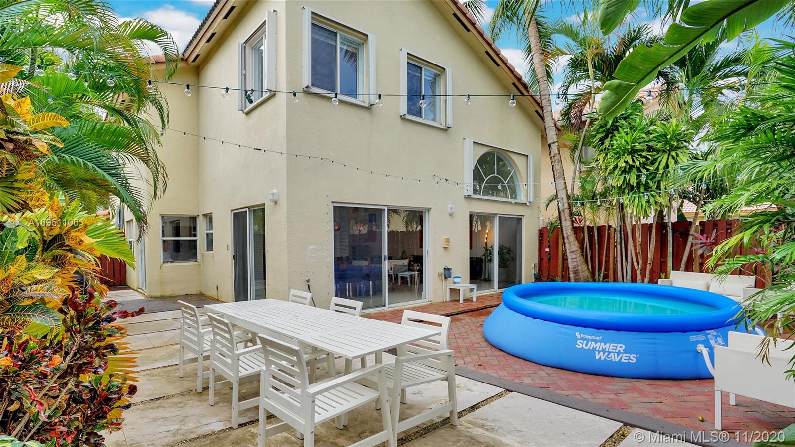 Beautiful and very well maintained 2 story, 3/2.5 Home in the quiet and family oriented community of Doral Landings East. 24 Hrs gated community, exclusive and very well kept. High ceilings house, nice tile-porcelain throughout first floor, laminate on second floor. Big and relaxing patio to enjoy the nice weather of Florida with room for a pool. 2 car garage with split A/C, tile and lot of closets for storage. Laundry inside the house. A/C unit 5 yrs old with Nest thermostat control. Accordion shutters on the second floor. Master bedroom with electric blackout blinds. Other rooms with blackout blinds. Alarm and basic cable included in the HOA fee. Extra refrigerator in the garage.**Big white lamps at the entrance and dining lamps are not part of the sale** Playground and community pool