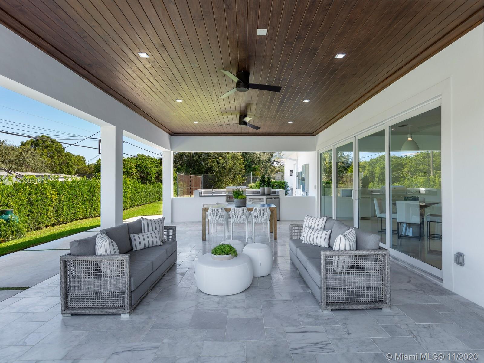 Discover Contemporary Aesthetics and luxury living in the recently built modern estate. This gorgeous property sits on a builder’s acre lot, greeting you with soaring ceilings, majestic windows and doors for endless natural light. Elegant glass and wood stairs case w/ panoramic views of the open floor plan living room and dining. Find an exceptional custom designed Italian kitchen by MiaCucina complete w/ Wolf & Subzero appliances. Ground level offers separate family room, & master suite w/ spa-like bath & walk-in closet. Upstairs discover a large den w/ balcony & two secondary bedrooms. The inviting outdoor awaits w/ an oversized LED pool, covered terrace, ample lounging area, summer kitchen & tennis court w/ North South orientation, easy conversion to 5th bedrm. Elite Pinecrest Schools.