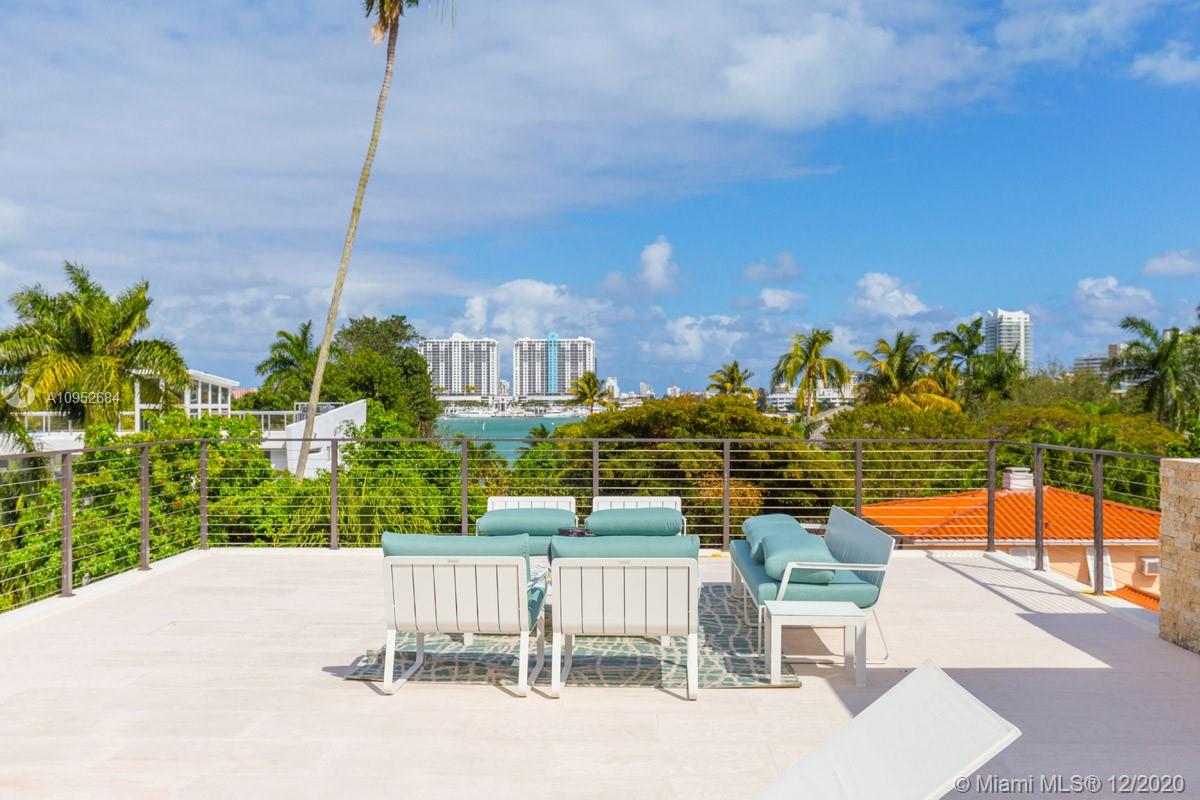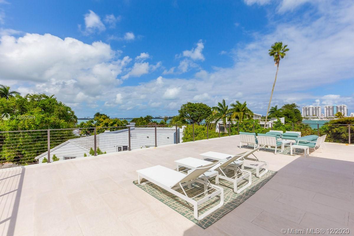 This contemporary, new construction (2015) home by Architect Ralph Choeff features 5 bedrooms and 5,038 SF of adjusted living space. This designer home offers high ceilings, lots of natural light, a modern gas fireplace and top-of-the-line finishes & appliances such as a smart Lutron system, motorized window treatment and a sound system. Large bedrooms with generous built-in closets and private terraces. The state-of the-art kitchen comes with Italian cabinetry and Miele appliances. The 11.250 SF lot includes a large pool deck with a heated pool, waterfall feature, jacuzzi and shower. Additionally, a cabana with built-in summer kitchen and soft lighting ideal for relaxation and 'al fresco’ dining, A +1,000 SF of roof top terrace with stunning views of the water and the Miami skyline.